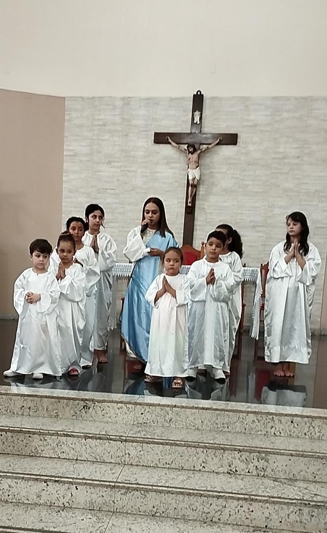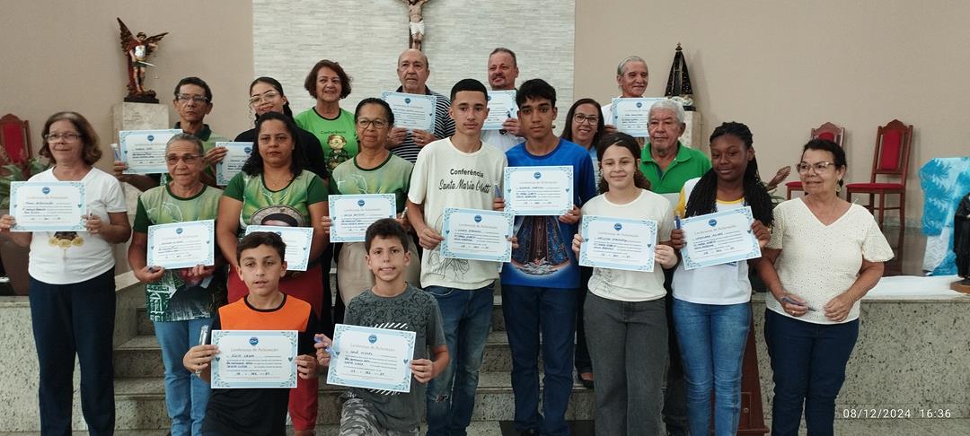 Após a fala de César Custódio da Silva houve uma linda homenagem das crianças a Nossa Senhora e a seguir foram aclamados os novos integrantes da SSVP. Entre eles vários adolescentes.
