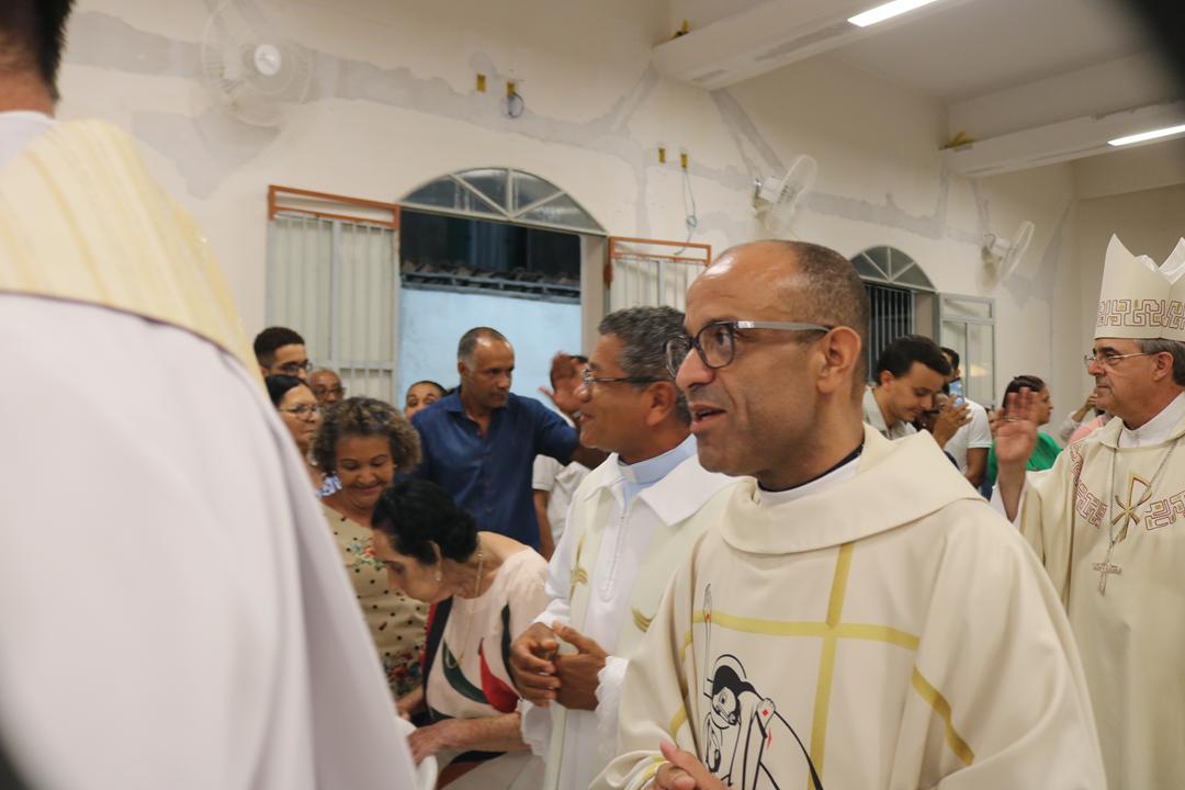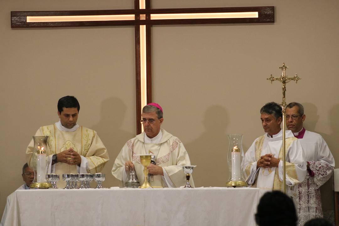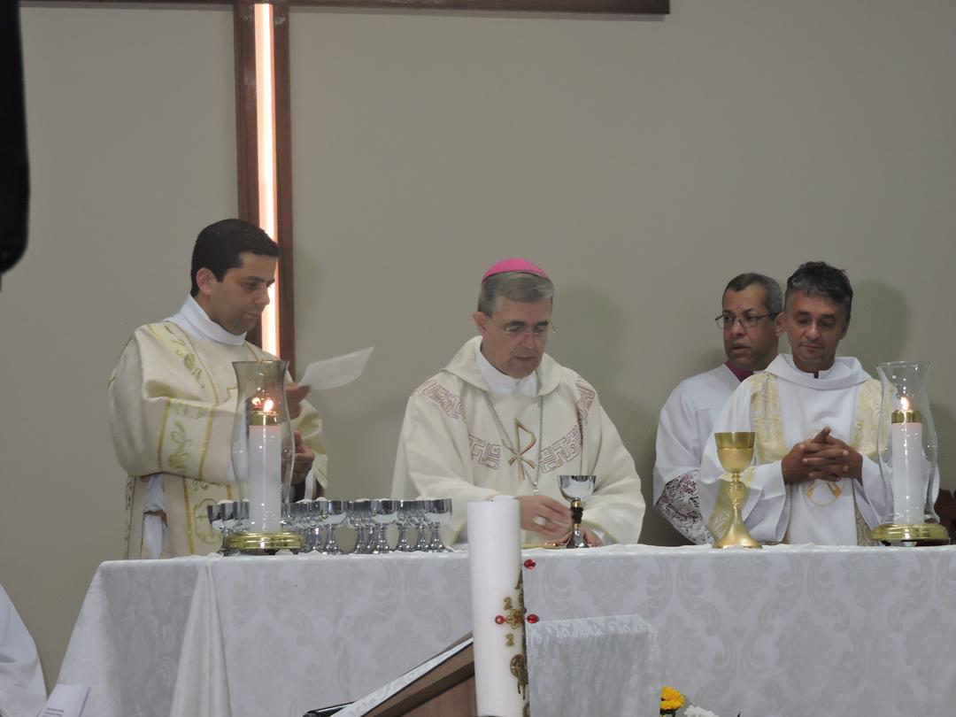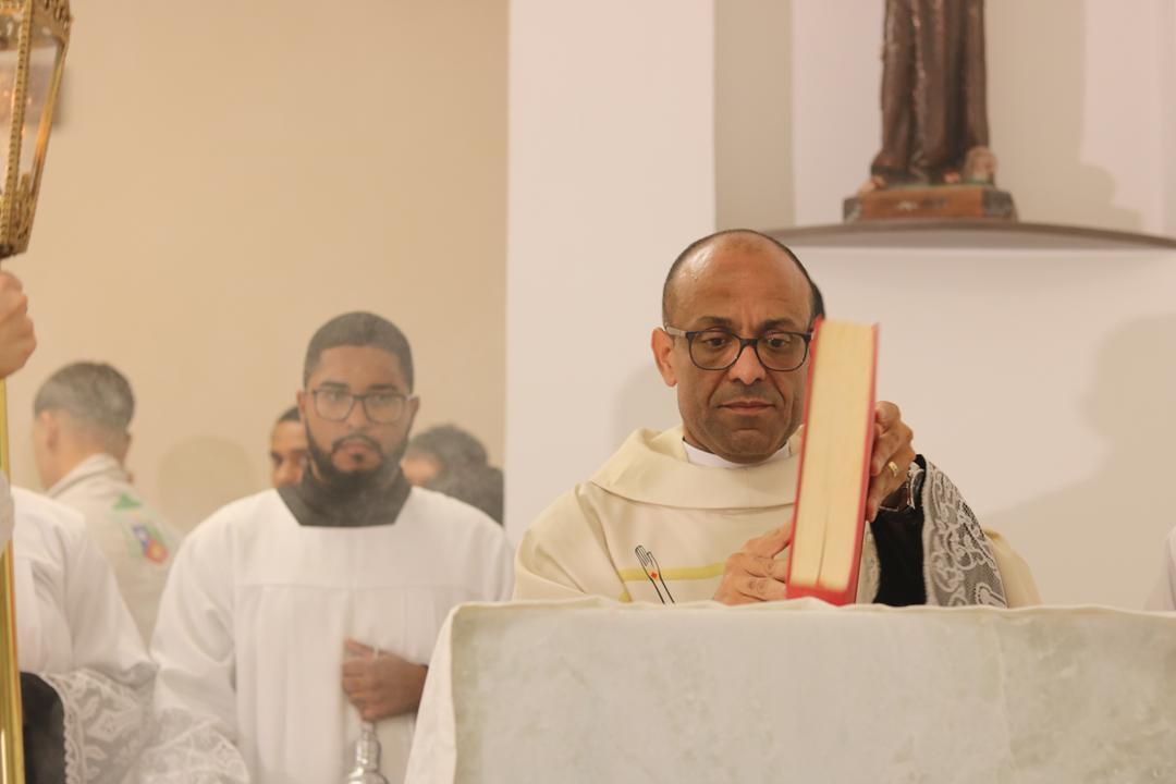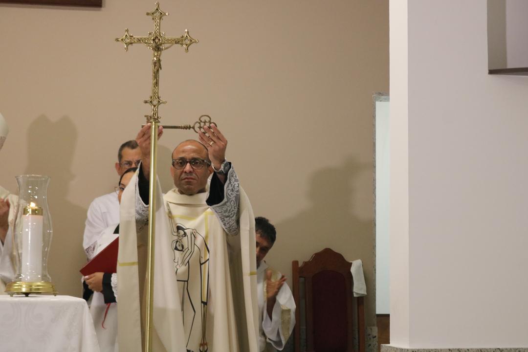 A instalação da nova paróquia e a posse de seu primeiro pároco ocorreram durante uma solene celebração eucarística, presidida pelo Exmo. e Revmo. Dom Marco Aurélio Gubiotti, bispo diocesano de Itabira-Coronel Fabriciano, e concelebrada por diversos presbíteros das três regiões pastorais da diocese, além de presbíteros vindos de outras dioceses. A celebração contou ainda com a assistência de vários diáconos permanentes e a presença dos seminaristas que estão vivenciando a Síntese Pastoral em preparação para a ordenação diaconal. Também estiveram presentes autoridades municipais das cidades de Timóteo e Antônio Dias. A celebração contou com um grande número de fiéis de diversas paróquias da diocese, incluindo leigos e leigas das comunidades de Timóteo e de outras localidades onde o padre Elinei exerceu seu ministério pastoral.