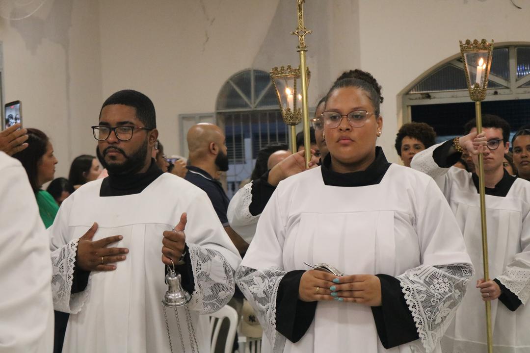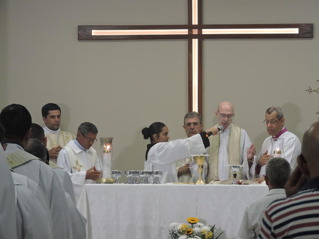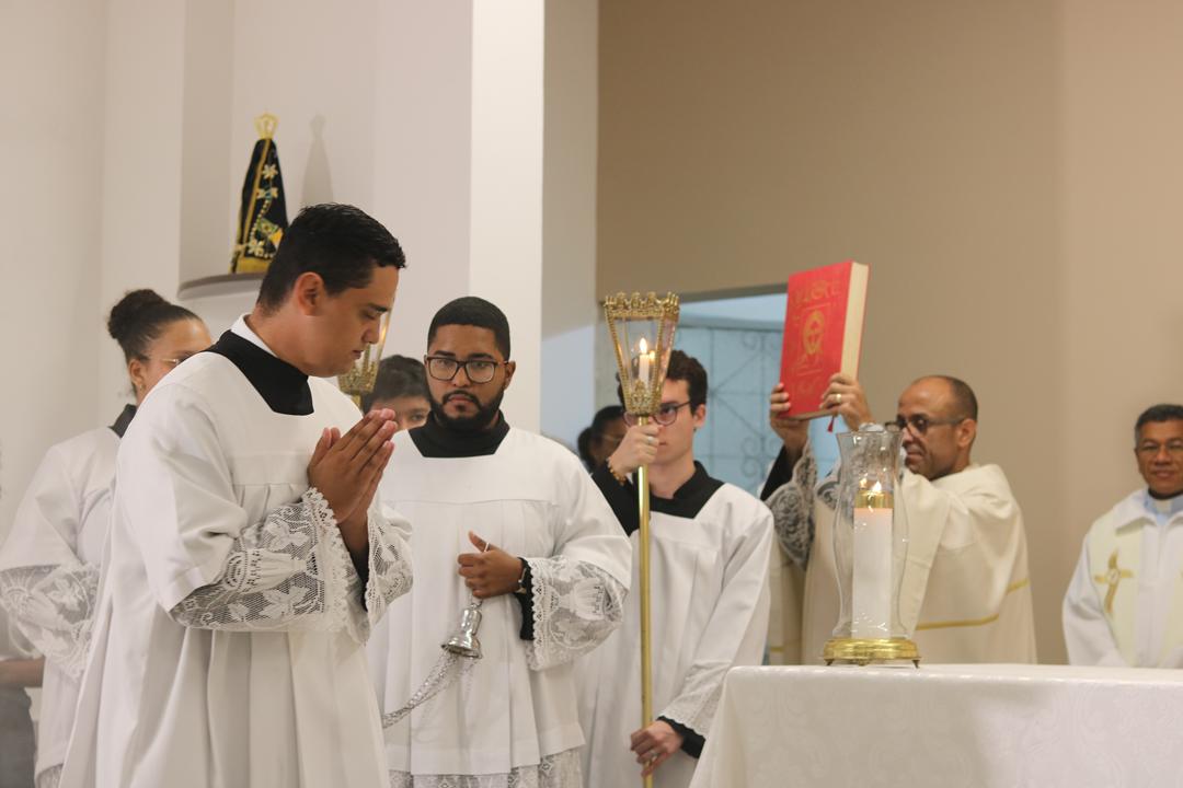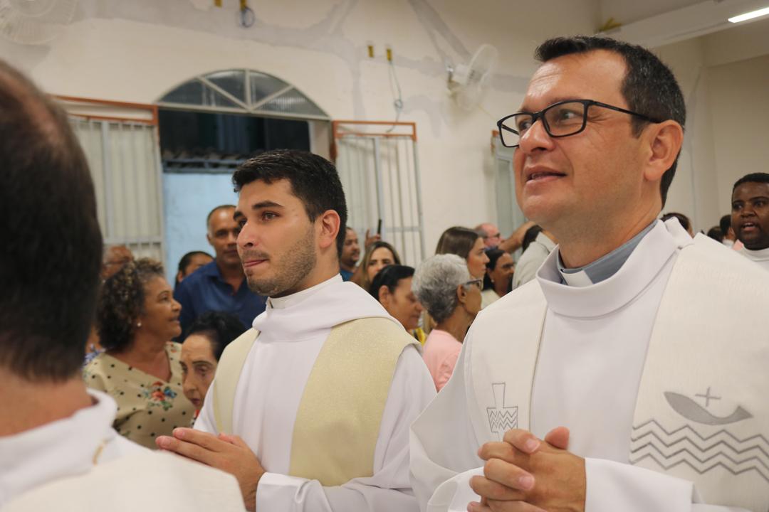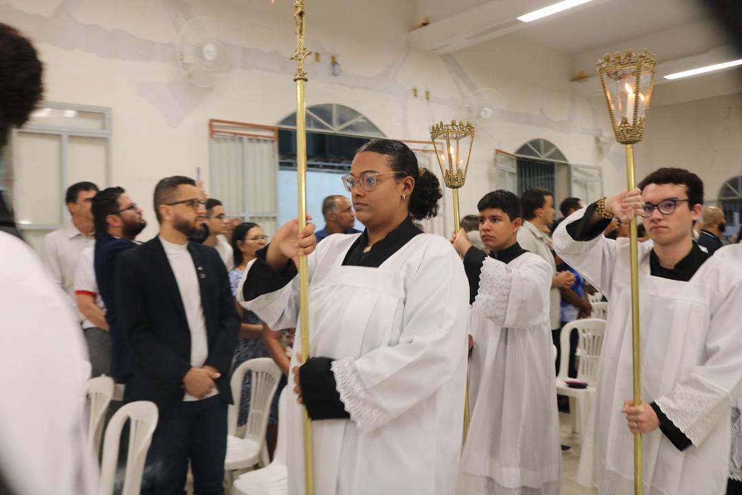 A instalação da nova paróquia e a posse de seu primeiro pároco ocorreram durante uma solene celebração eucarística, presidida pelo Exmo. e Revmo. Dom Marco Aurélio Gubiotti, bispo diocesano de Itabira-Coronel Fabriciano, e concelebrada por diversos presbíteros das três regiões pastorais da diocese, além de presbíteros vindos de outras dioceses. A celebração contou ainda com a assistência de vários diáconos permanentes e a presença dos seminaristas que estão vivenciando a Síntese Pastoral em preparação para a ordenação diaconal. Também estiveram presentes autoridades municipais das cidades de Timóteo e Antônio Dias. A celebração contou com um grande número de fiéis de diversas paróquias da diocese, incluindo leigos e leigas das comunidades de Timóteo e de outras localidades onde o padre Elinei exerceu seu ministério pastoral.