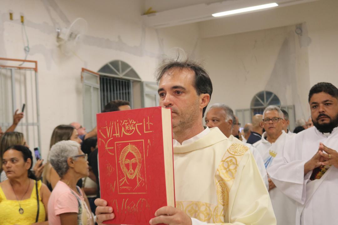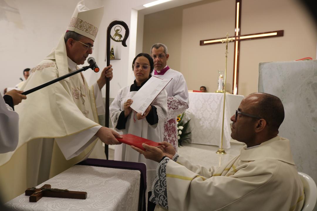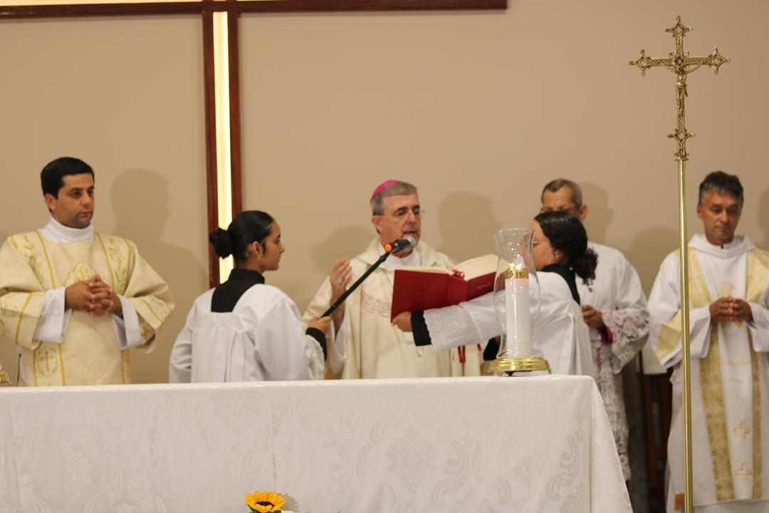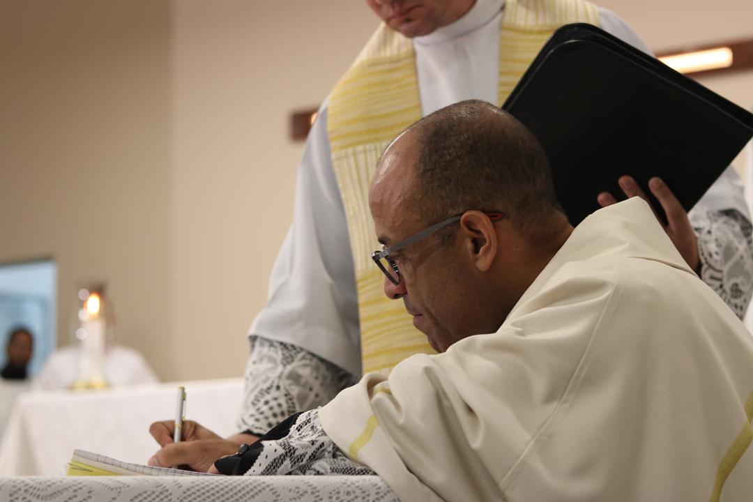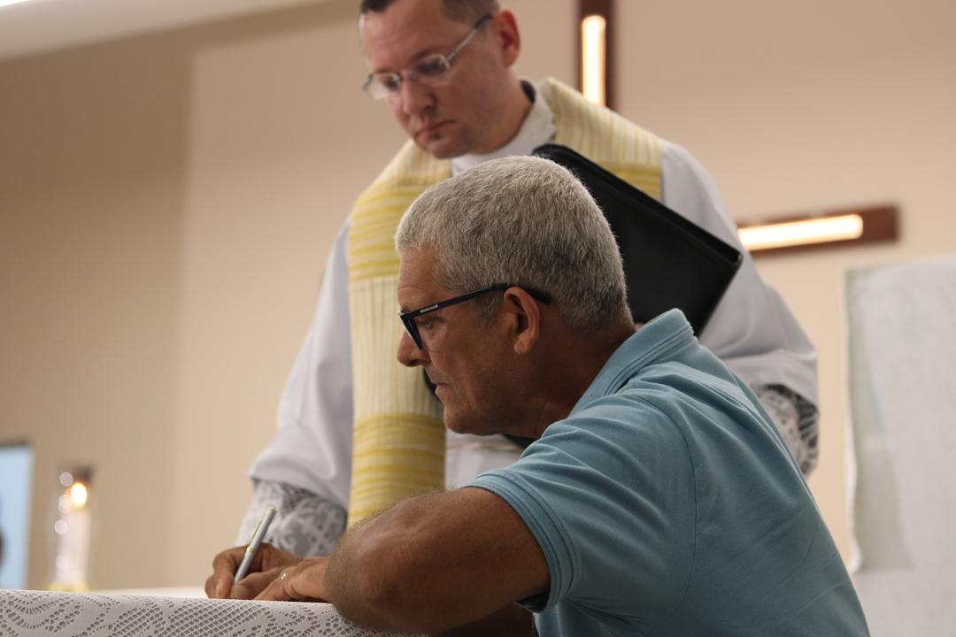 Ao final da celebração, foram lidas duas atas: primeiramente, a ata de instalação da nova paróquia, seguida da ata de posse do padre Elinei Eustáquio Gomes, ambas proferidas pelo Chanceler do Bispado, padre Ueliton Neves da Silva, e devidamente assinadas conforme as normas canônicas.