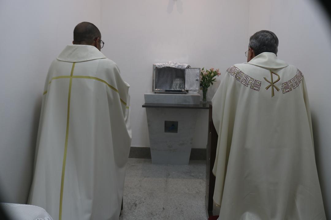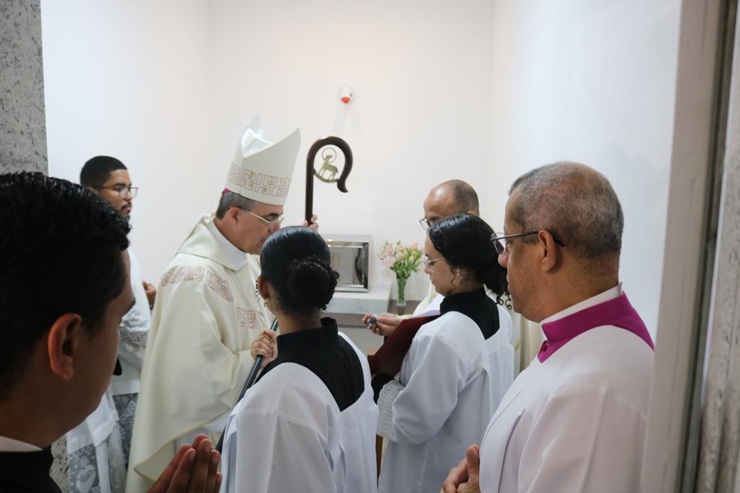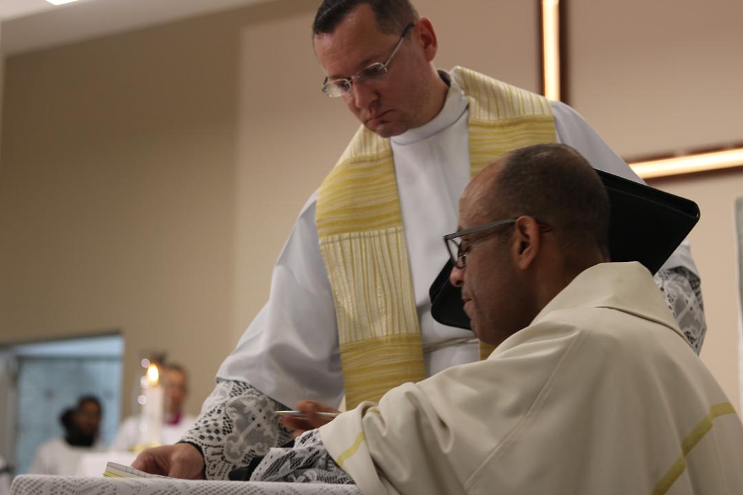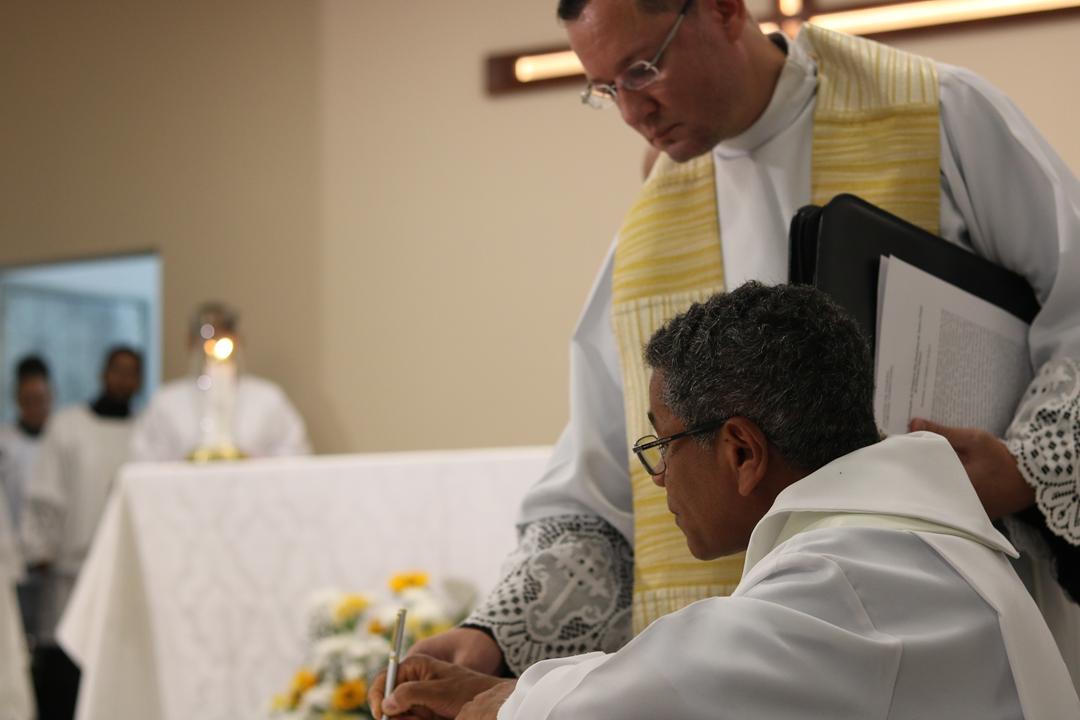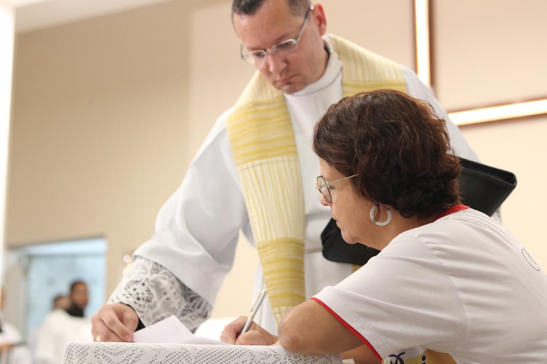 Ao final da celebração, foram lidas duas atas: primeiramente, a ata de instalação da nova paróquia, seguida da ata de posse do padre Elinei Eustáquio Gomes, ambas proferidas pelo Chanceler do Bispado, padre Ueliton Neves da Silva, e devidamente assinadas conforme as normas canônicas.