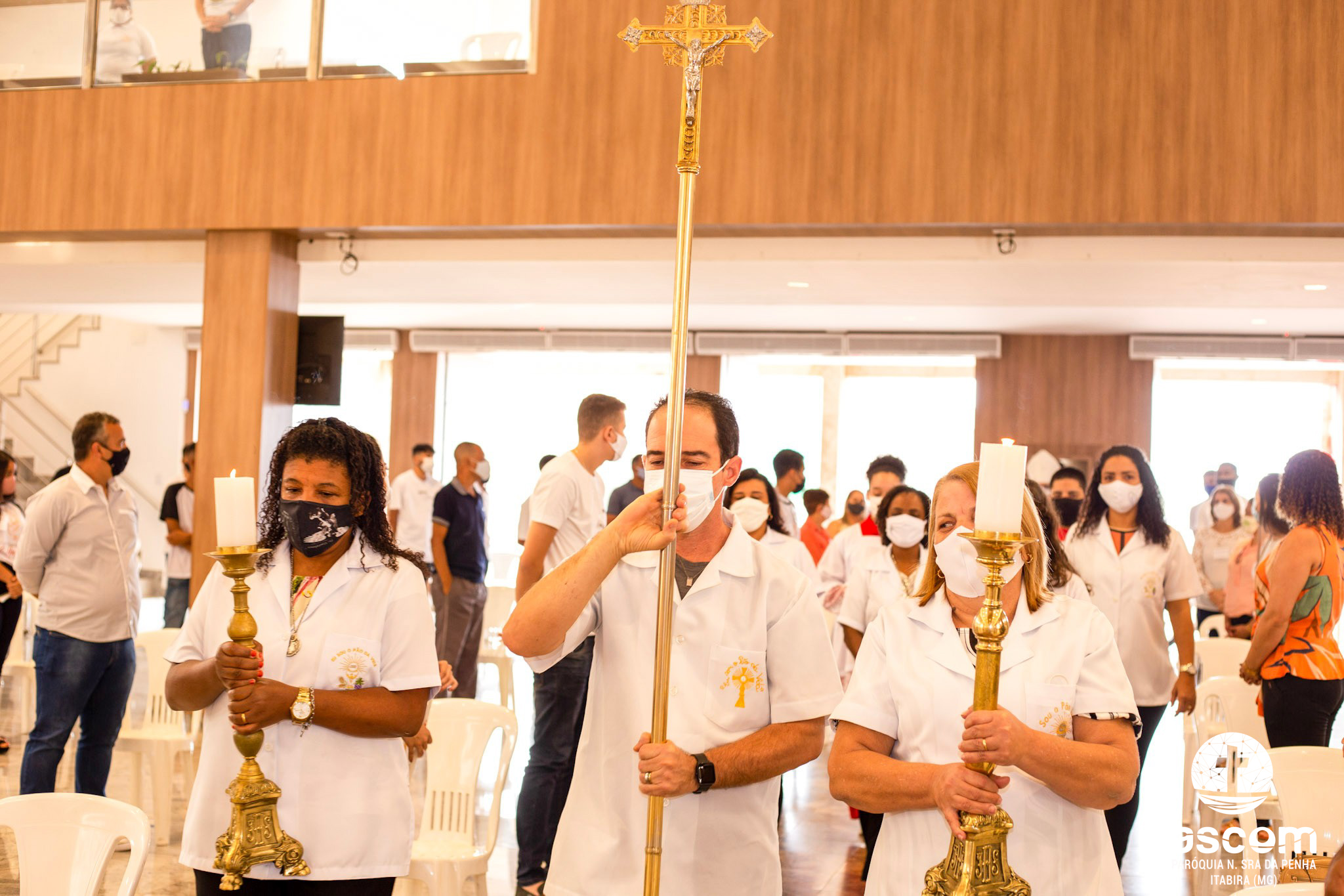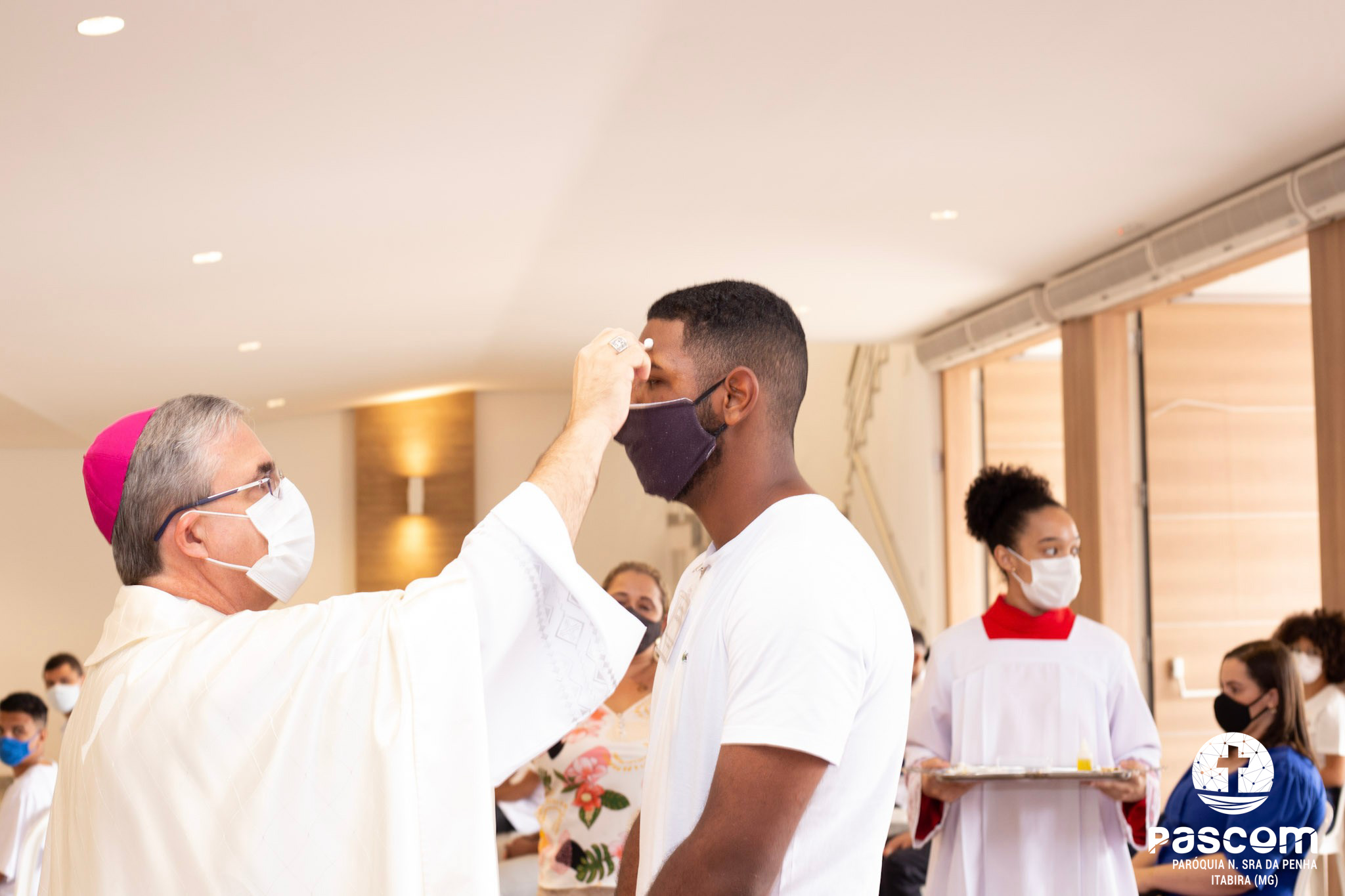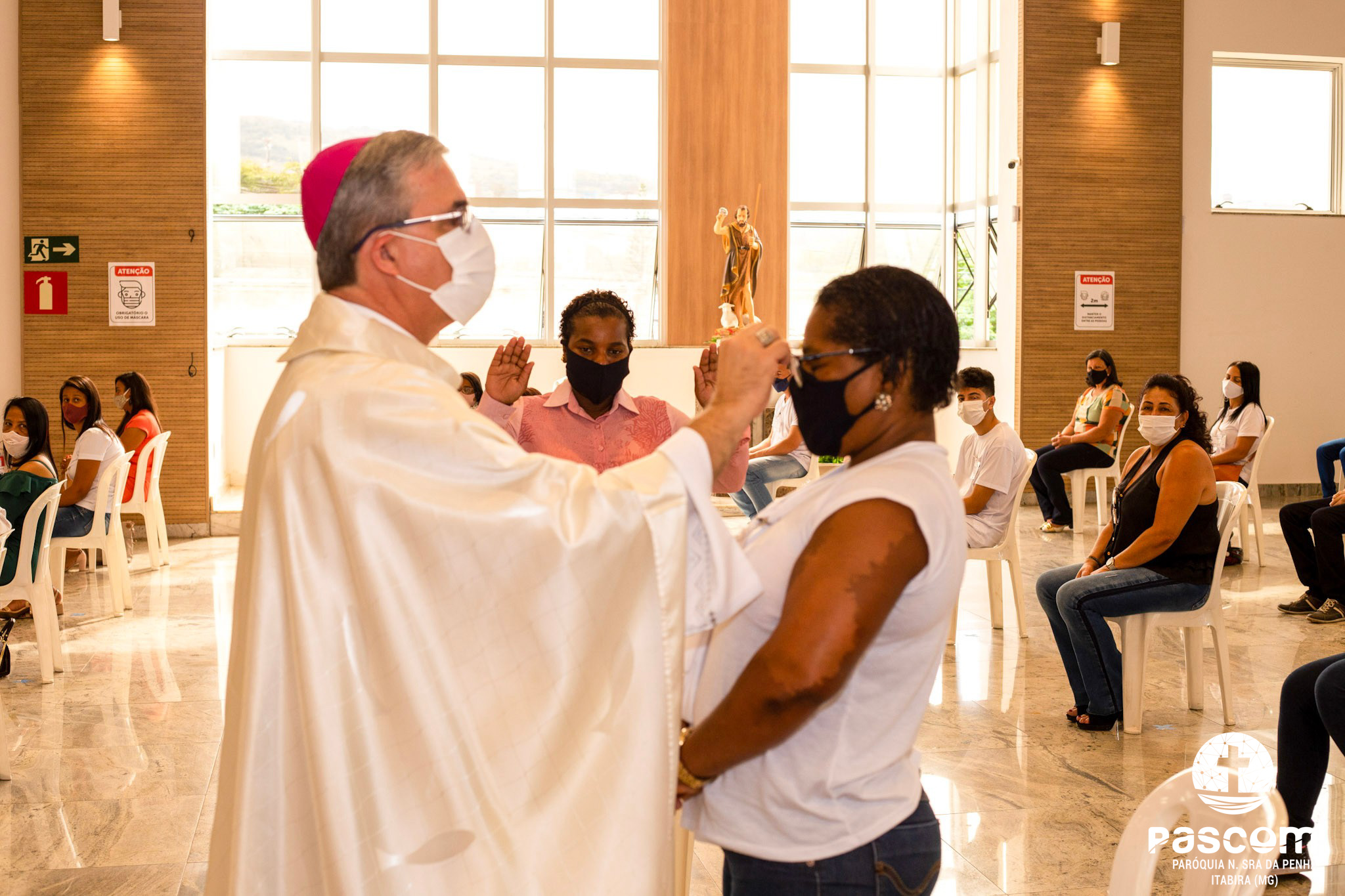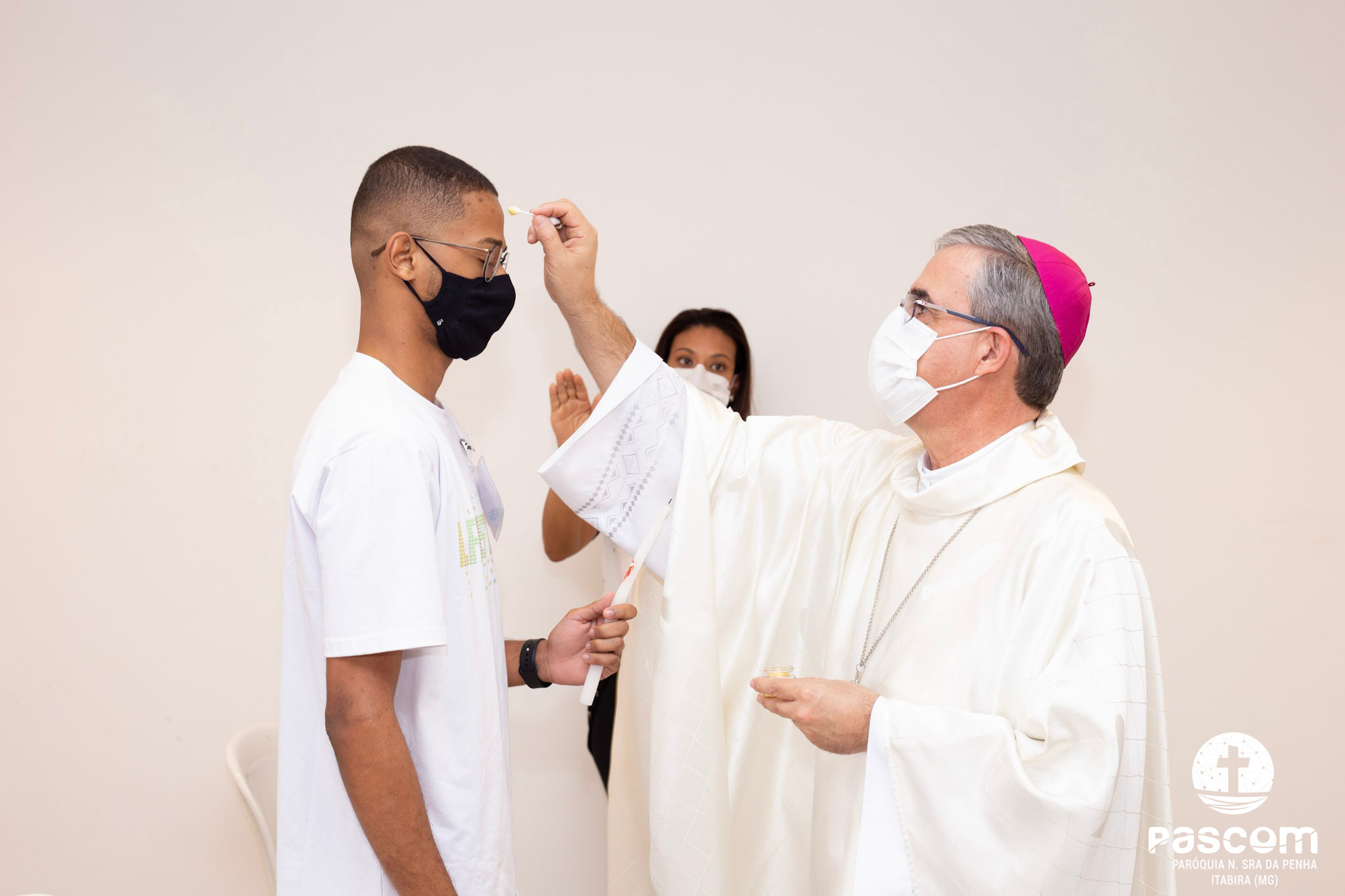 Após a homilia, Dom Marco seguiu a cerimônia com o rito da crisma com a renovação das promessas batismais e, auxiliado pelo Pe. Ueliton, cada qual em seu devido lugar, foi ungido na fronte com o óleo do Crisma.
