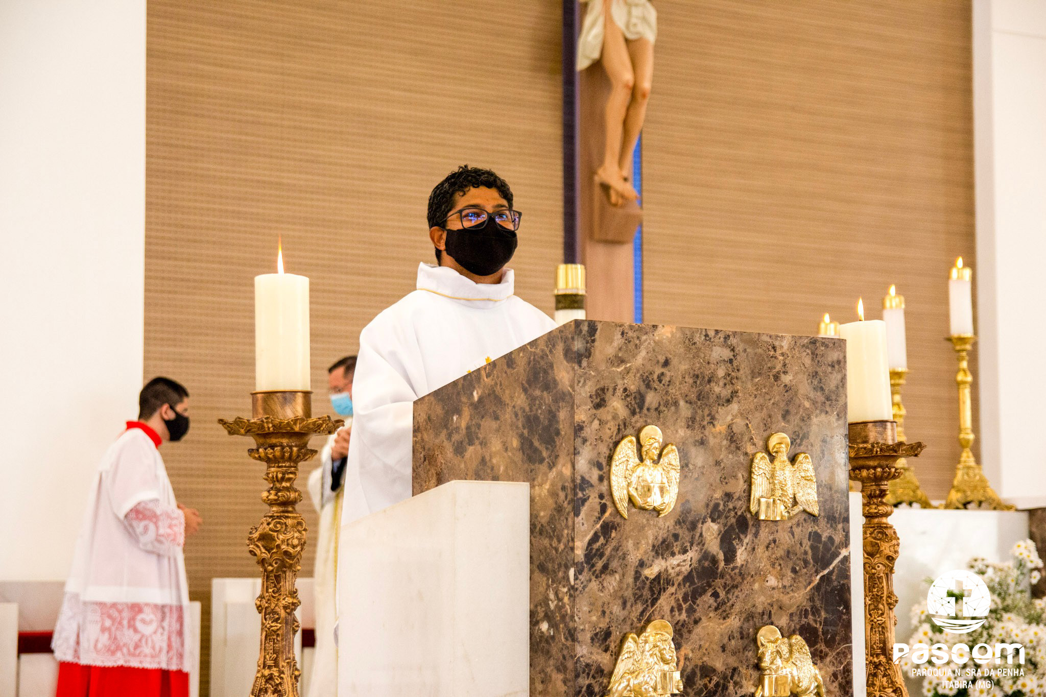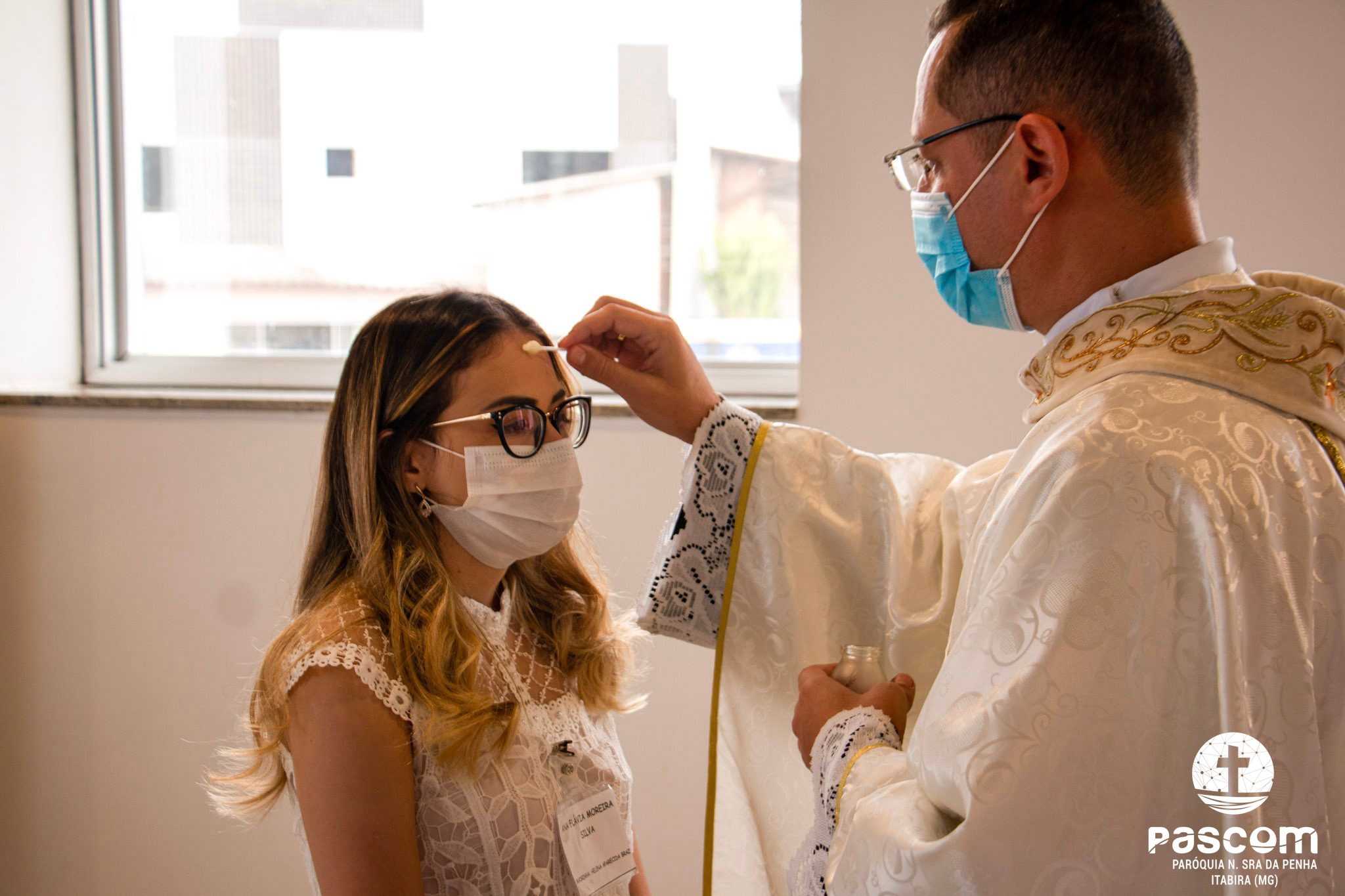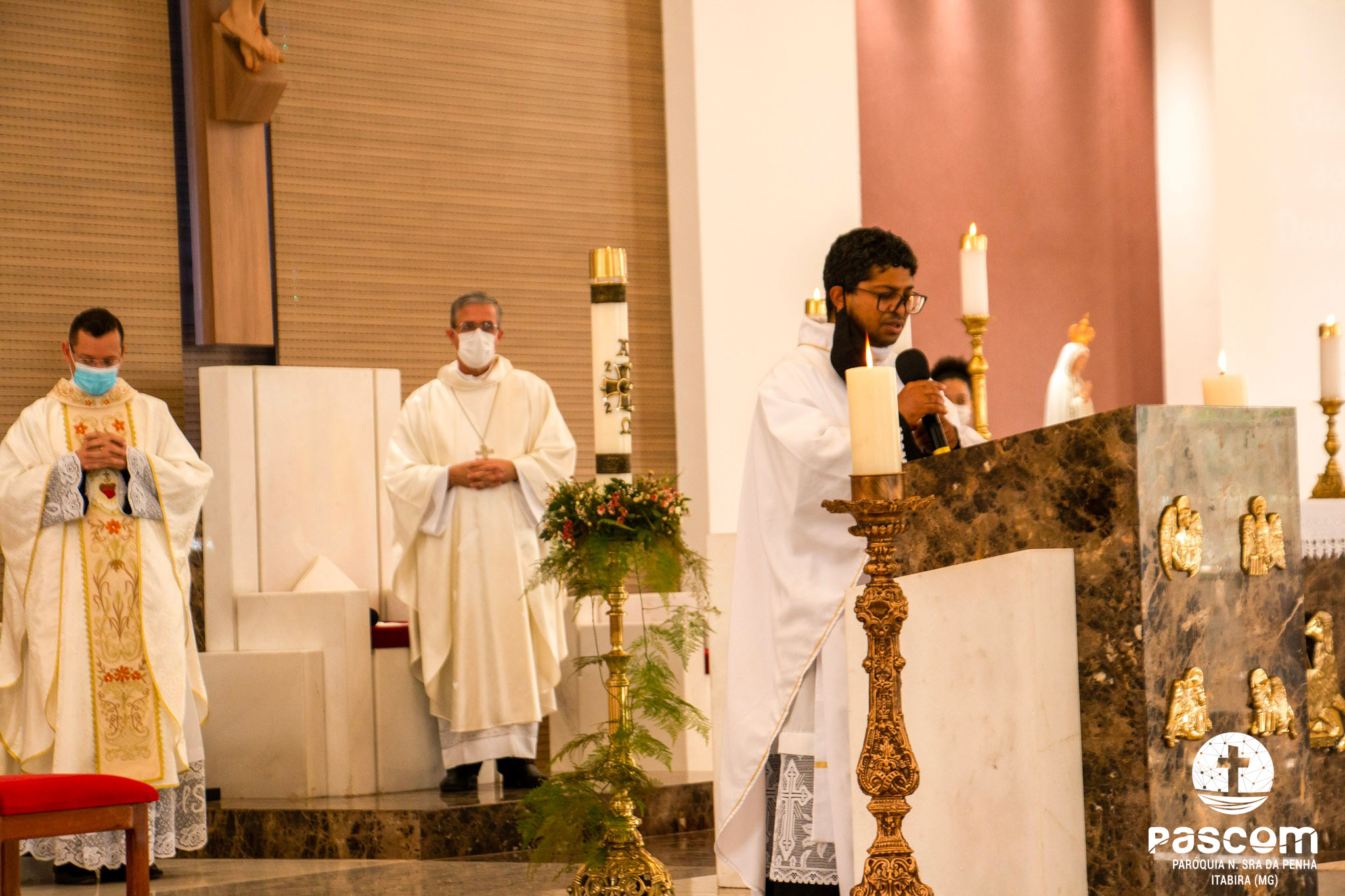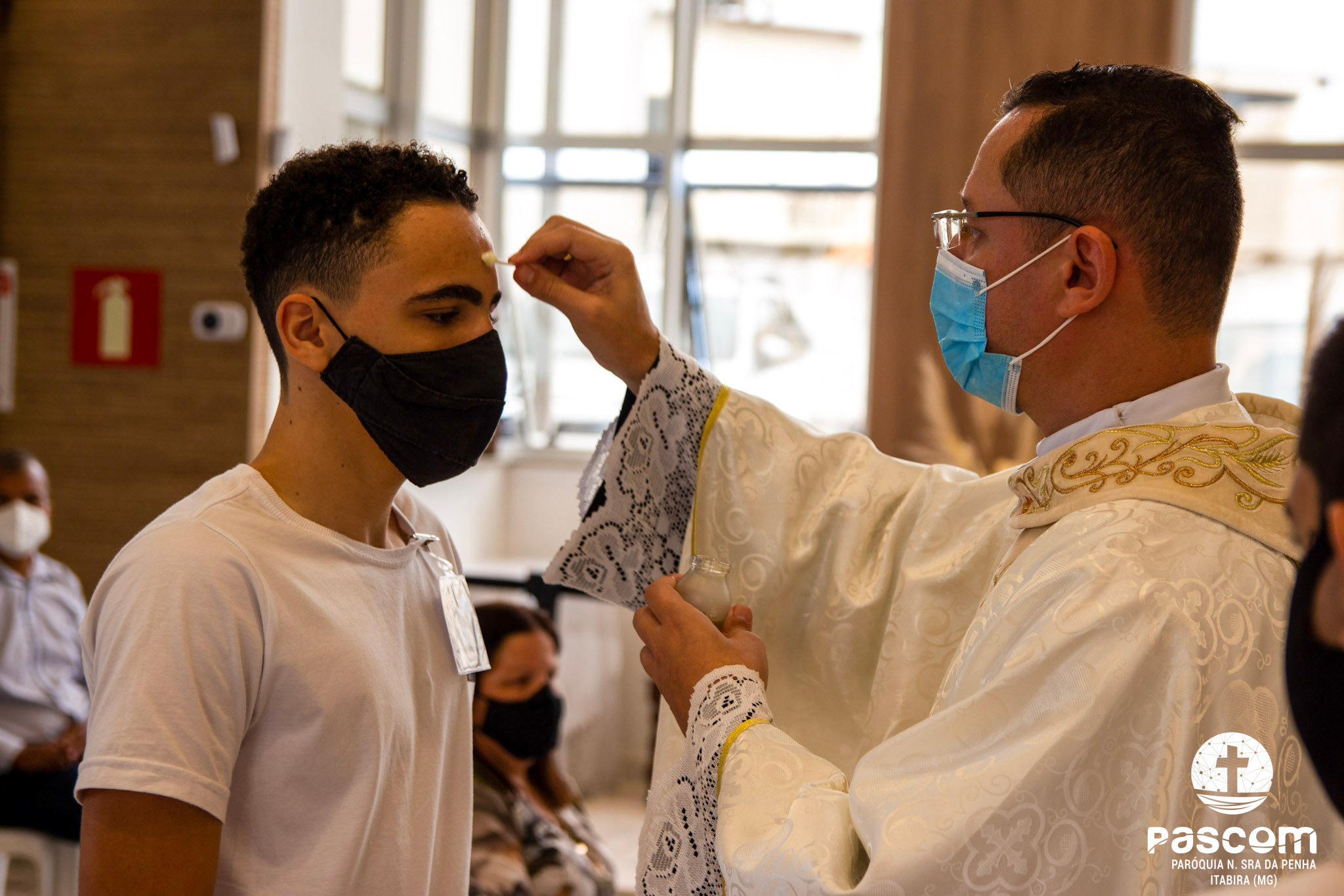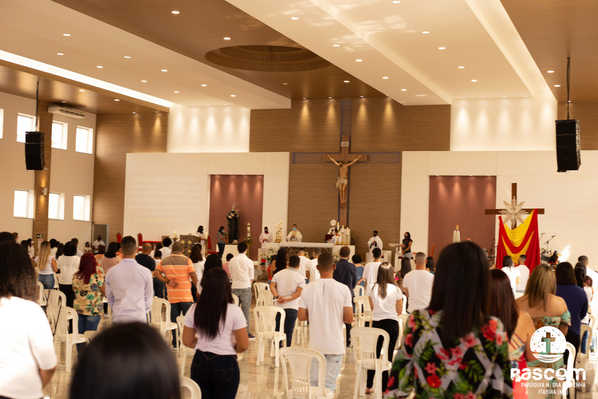 Após a homilia, Dom Marco seguiu a cerimônia com o rito da crisma com a renovação das promessas batismais e, auxiliado pelo Pe. Ueliton, cada qual em seu devido lugar, foi ungido na fronte com o óleo do Crisma.