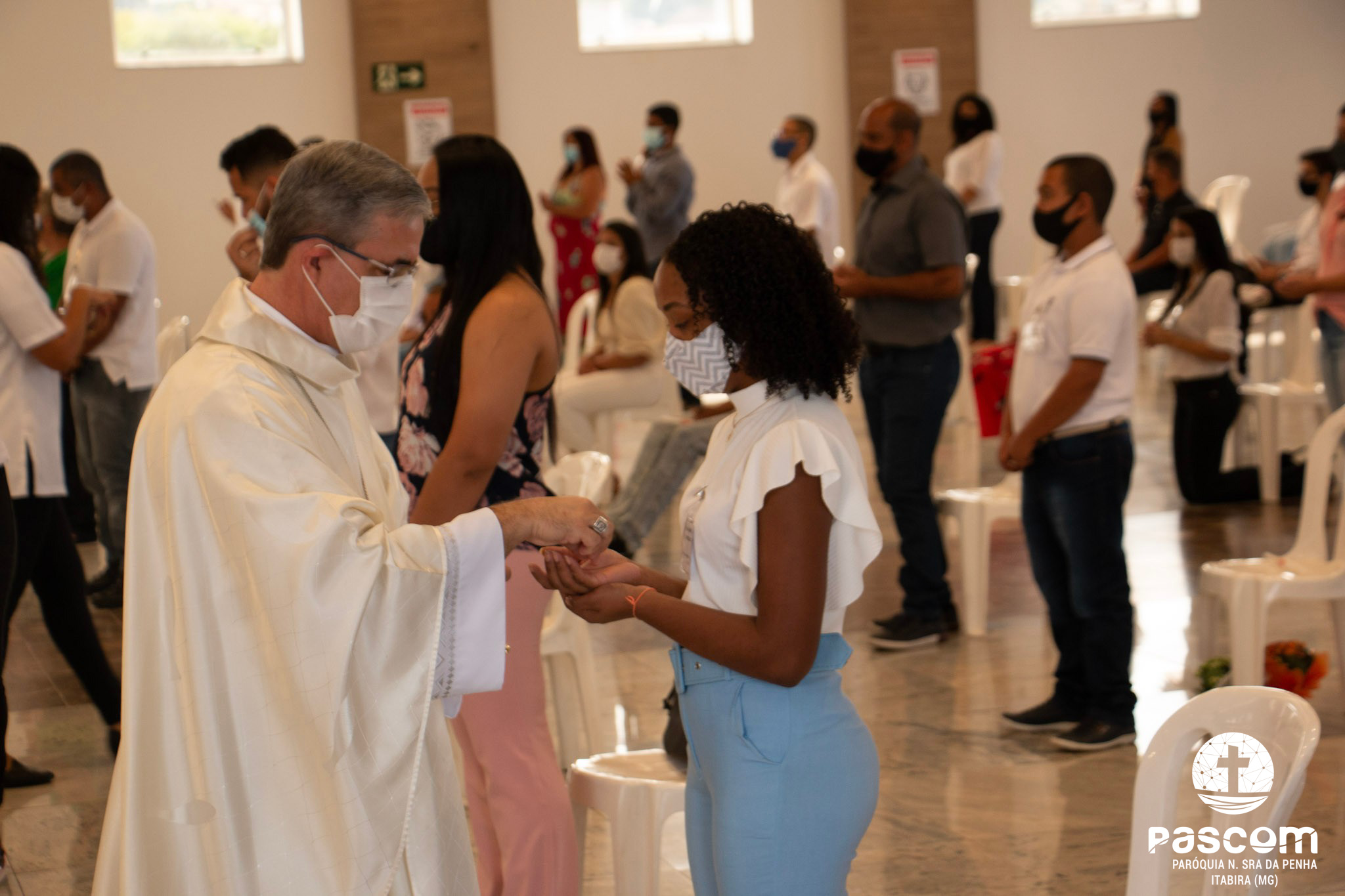 Na manhã do último domingo, dia 30 de maio, Solenidade da Santíssima Trindade, Dom Marco Aurélio Gubiotti, bispo diocesano, conferiu o Sacramento da Crisma a 108 jovens da Paróquia Nossa Senhora da Penha. A Santa Missa, que teve início às 10h, teve por concelebrantes Pe. Ueliton Neves, pároco e vigário episcopal, e do Pe. Edson, vigário paroquial. Devido a situação de pandemia que nos encontramos e com a participação limitada dos fiéis na assembleia, a Missa contou com a presença somente dos crismandos(as) e dos seus respectivos padrinhos e madrinhas, tendo sido transmitida pelas redes sociais para os impossibilitados de estarem presencialmente.