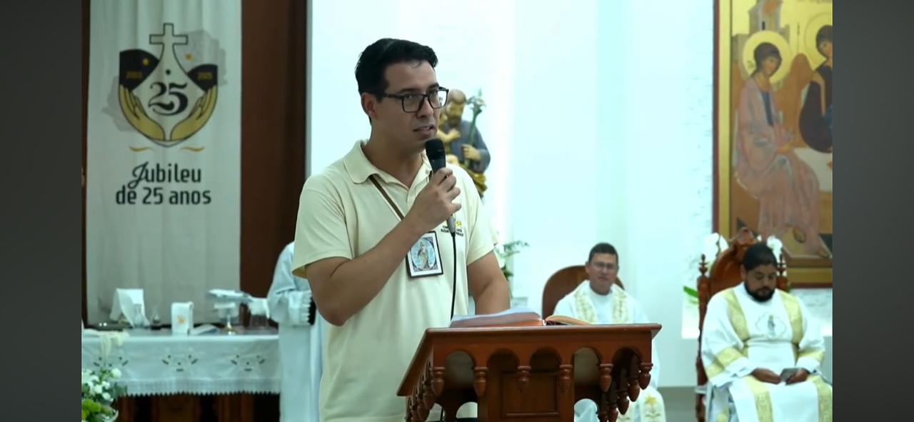 Um dos momentos marcantes da celebração foi a entoação do hino oficial do Jubileu, enquanto a Comunidade Carmelita Secular distribuía à assembleia o Cordão de São José, confeccionado pelas próprias irmãs com zelo e devoção, especialmente para ser ofertado nesta ocasião festiva.