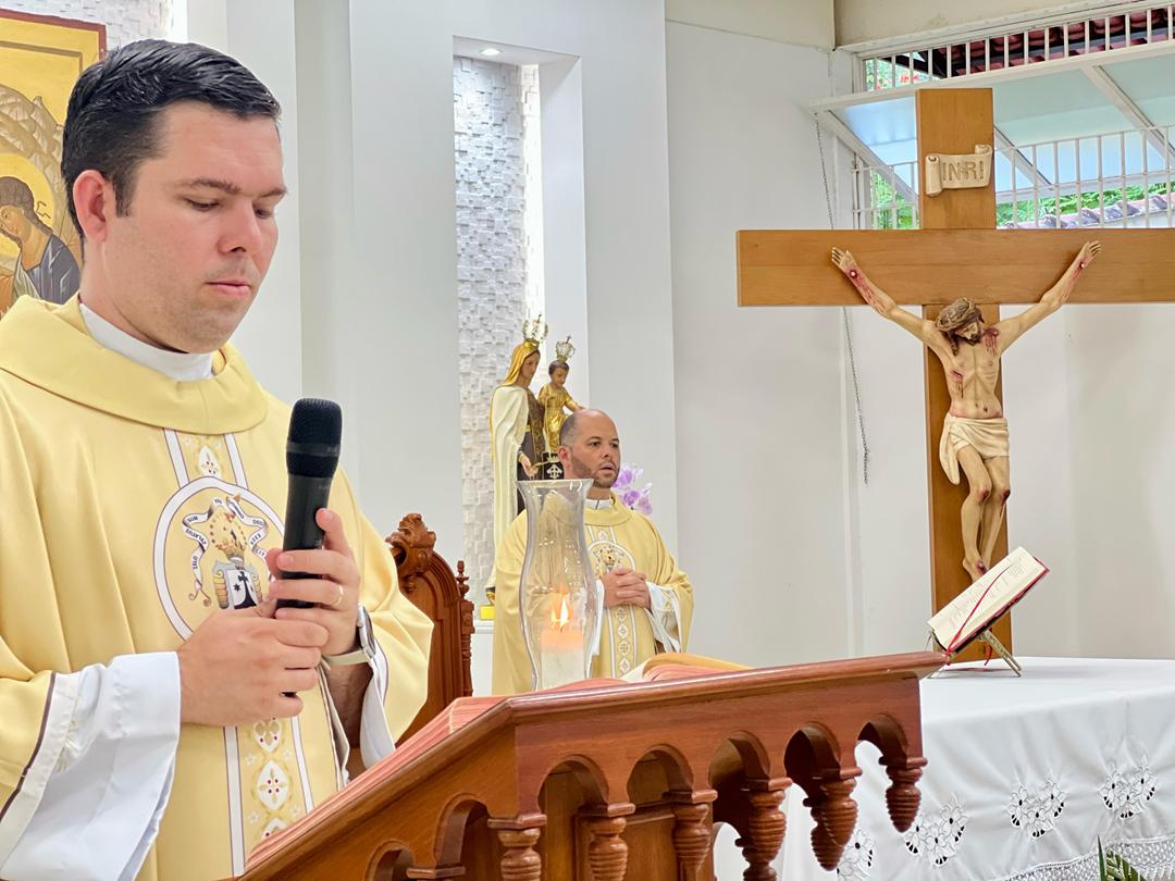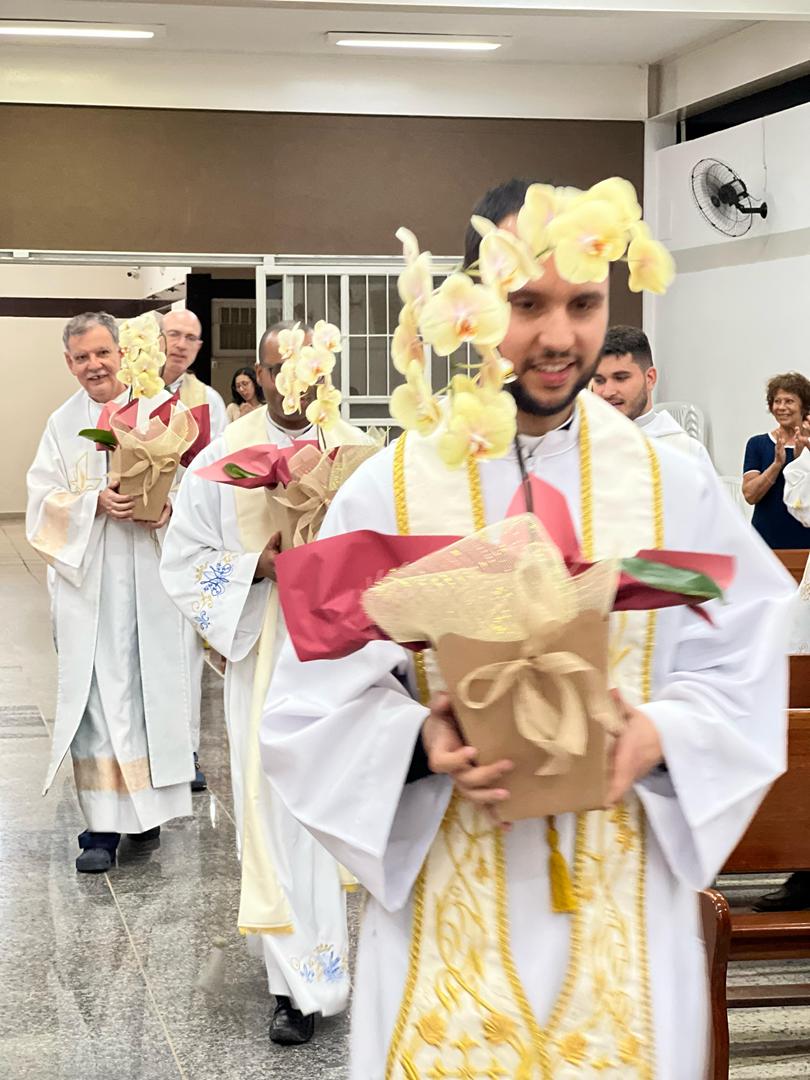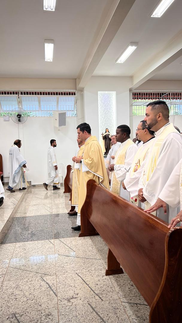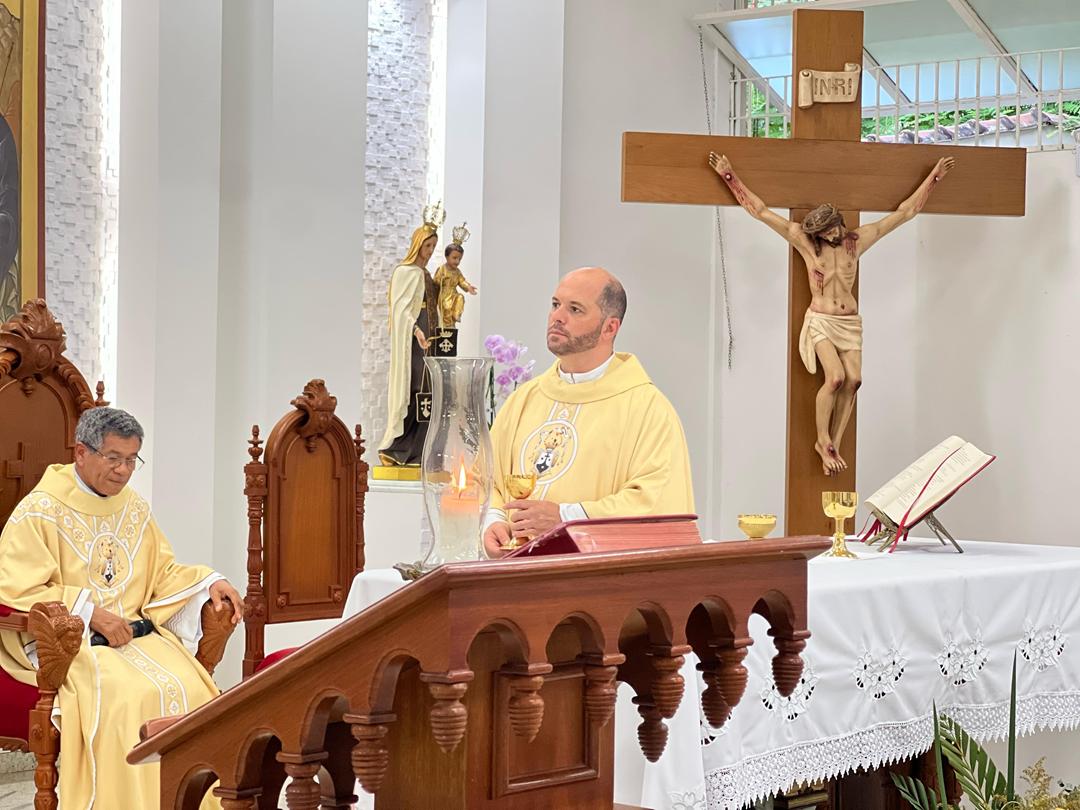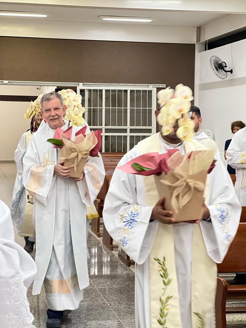 A Santa Missa foi presidida pelo Vigário Geral de nossa Diocese e pároco da Paróquia São José, em Timóteo, Pe. Pascifal José do Nascimento, e concelebrada por diversos padres da Diocese. Estiveram presentes também os seminaristas que estão realizando a Síntese Vocacional, além de alguns irmãos da Ordem Terceira do Carmelo Descalço.