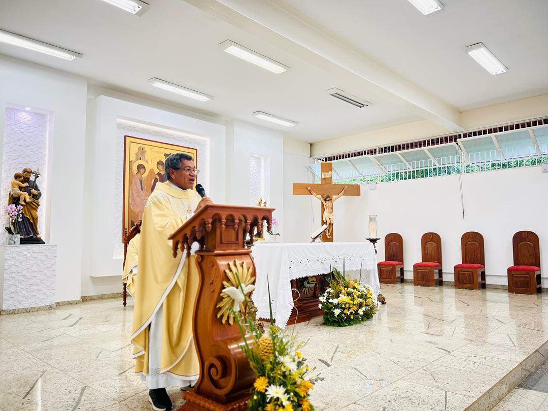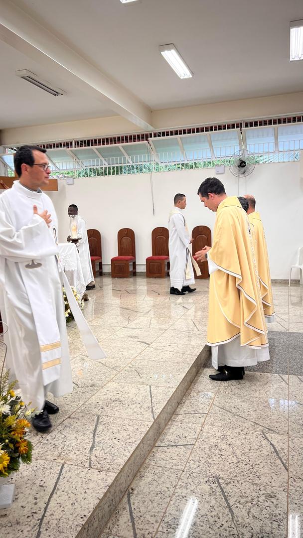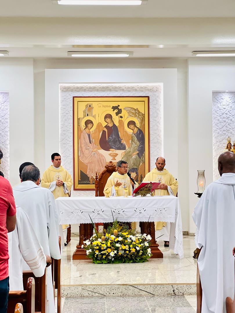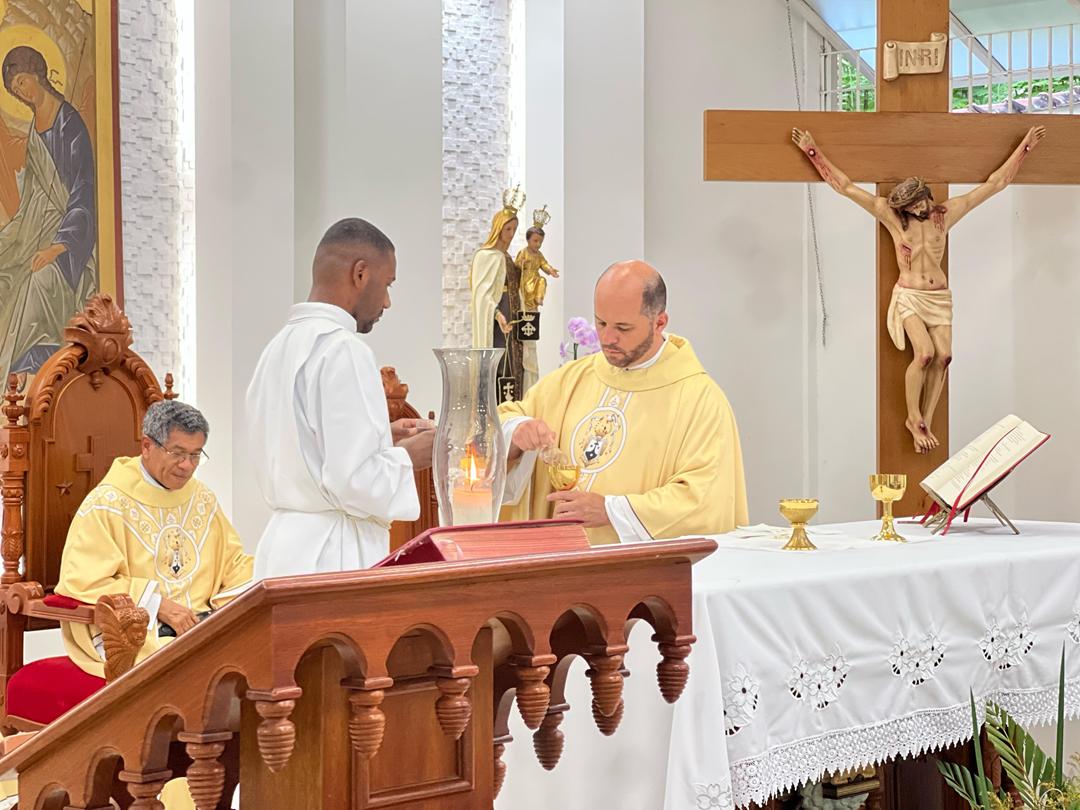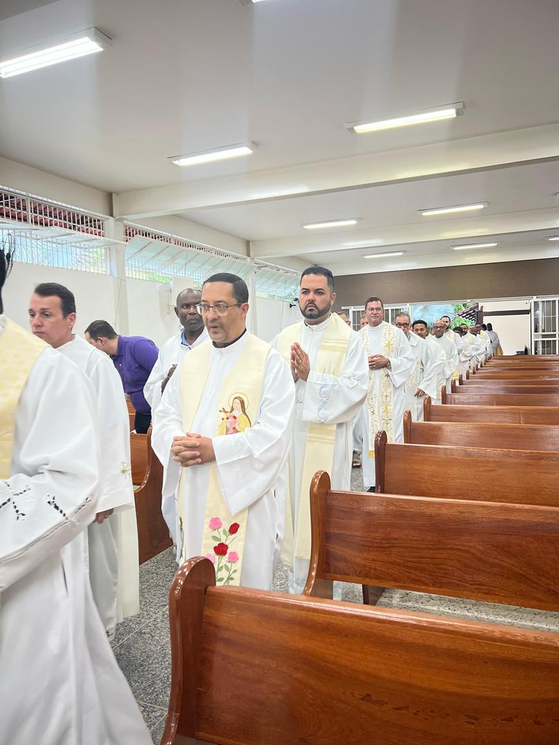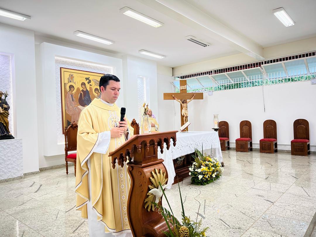 A Santa Missa foi presidida pelo Vigário Geral de nossa Diocese e pároco da Paróquia São José, em Timóteo, Pe. Pascifal José do Nascimento, e concelebrada por diversos padres da Diocese. Estiveram presentes também os seminaristas que estão realizando a Síntese Vocacional, além de alguns irmãos da Ordem Terceira do Carmelo Descalço.