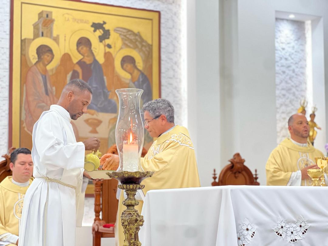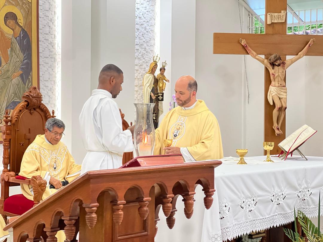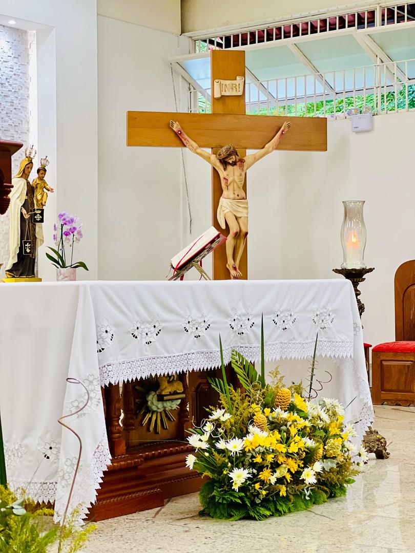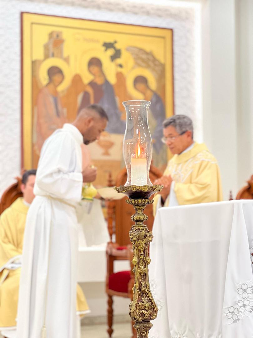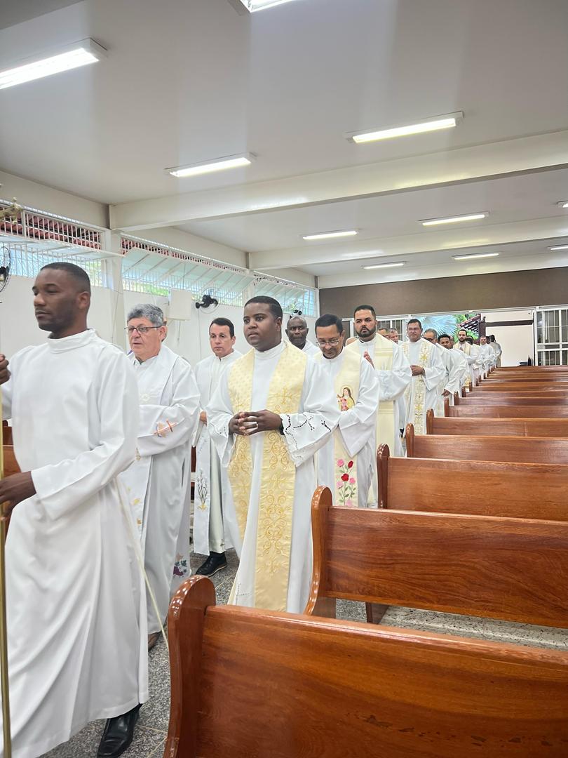 A Santa Missa foi presidida pelo Vigário Geral de nossa Diocese e pároco da Paróquia São José, em Timóteo, Pe. Pascifal José do Nascimento, e concelebrada por diversos padres da Diocese. Estiveram presentes também os seminaristas que estão realizando a Síntese Vocacional, além de alguns irmãos da Ordem Terceira do Carmelo Descalço.
