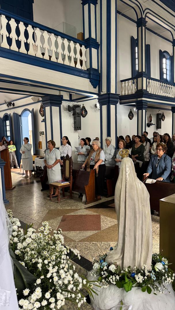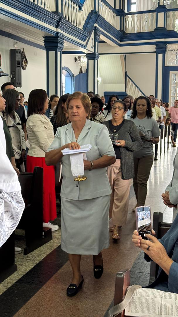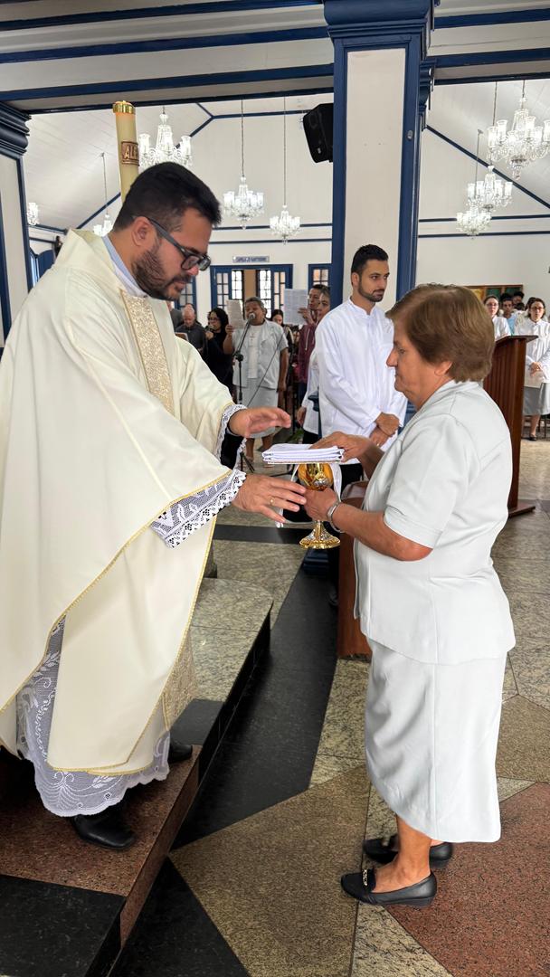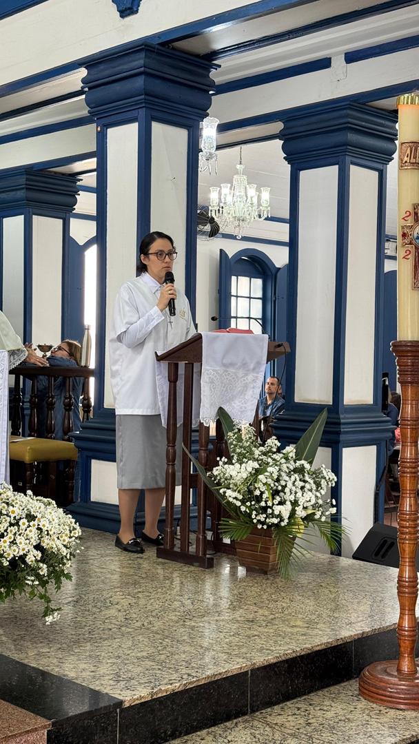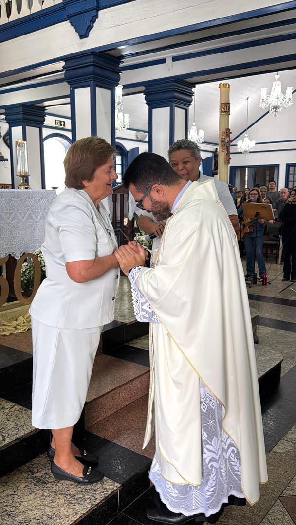 “Tudo posso naquele que me fortalece” (Fl 4,13). Com esse versículo inspirador e um coração cheio de gratidão, celebramos no dia 18 de maio de 2025 o Jubileu de Ouro da Vida Religiosa Consagrada de Irmã Marinez Missio, das Filhas do Sagrado Coração de Jesus. A celebração aconteceu na comunidade Matriz Nossa Senhora da Saúde, em Itabira/MG, reunindo irmãs, familiares, amigos e lideranças pastorais em um momento de fé, louvor e ação de graças.