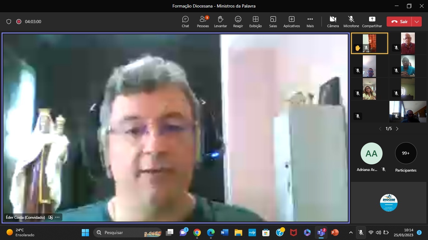 A formação foi conduzida por Éder Costa, Coordenador Diocesano do Ministério da Palavra. O encontro contou também com o apoio fundamental das Secretarias de todas as regionais e a participação especial da Irmã Sílvia, secretária da Regional 1. A religiosa organizou toda a reunião, permitindo o bom andamento da formação on-line.