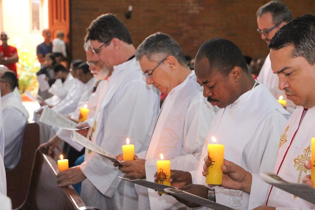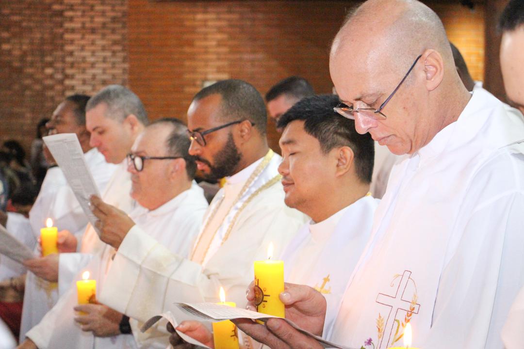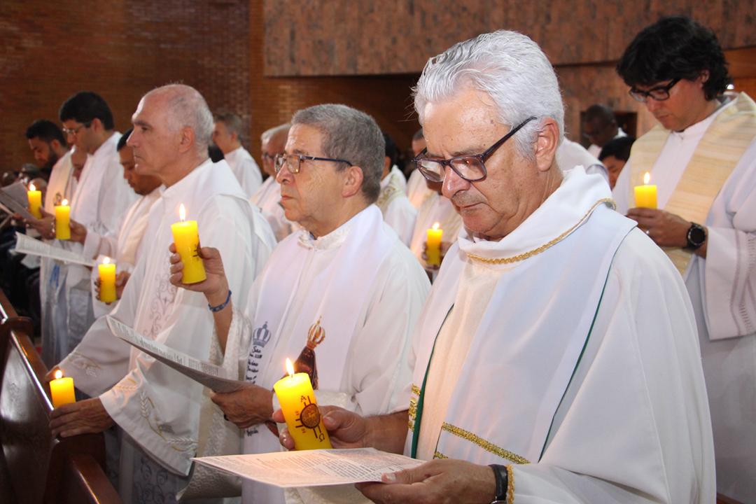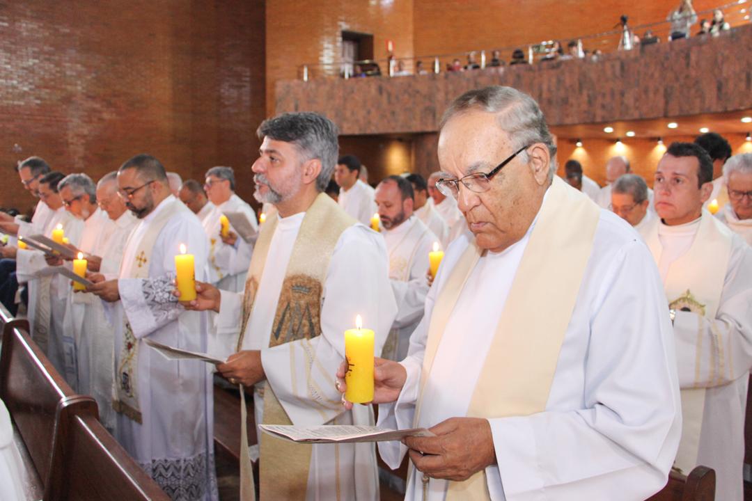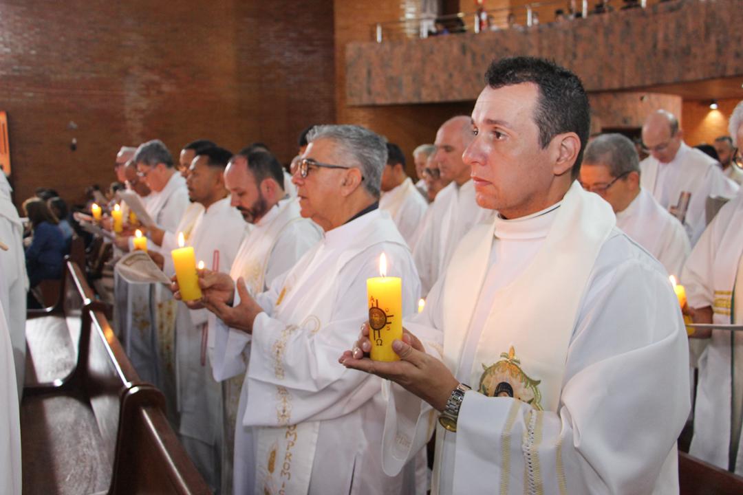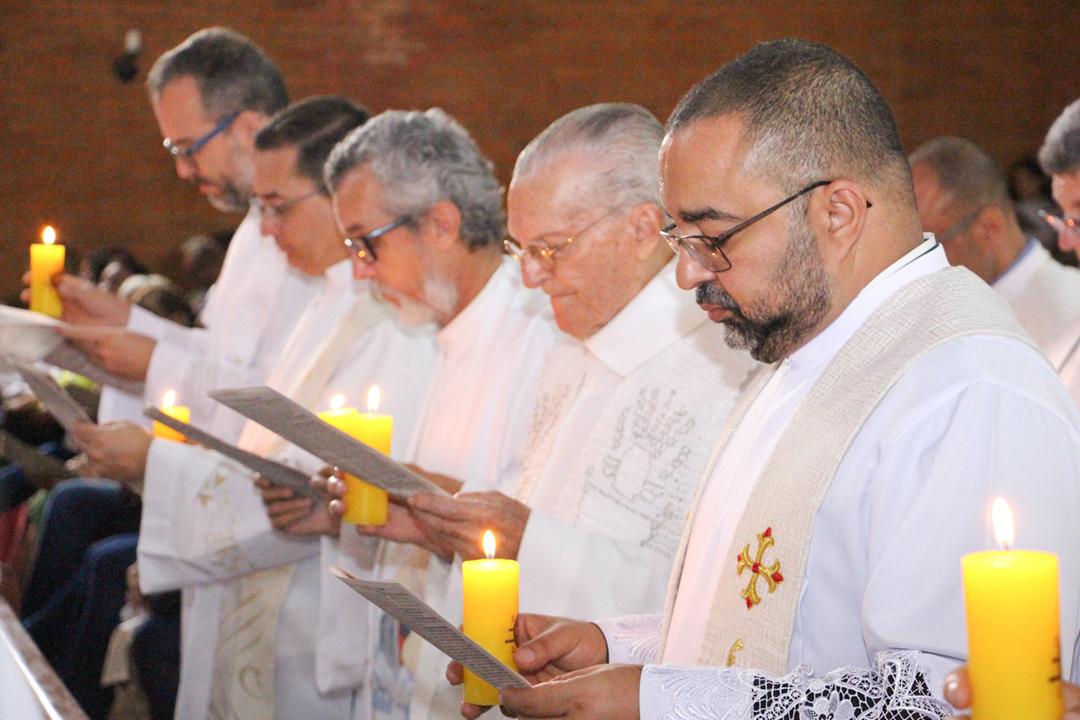 Após a homilia, os padres renovaram as promessas que foram feitas no dia da Ordenação Presbiteral. Esse gesto não é um simples rito, mas tem um significado profundo, pois cada padre renova as suas promessas sacerdotais com os seus irmãos no sacerdócio, diante do e bispo e do altar, fonte e sustento do sacerdócio. Para reavivar o dom de Deus recebido na Ordenação, o presbítero precisa sempre de olhar para o altar, para o presbitério e para o pode de Deus.