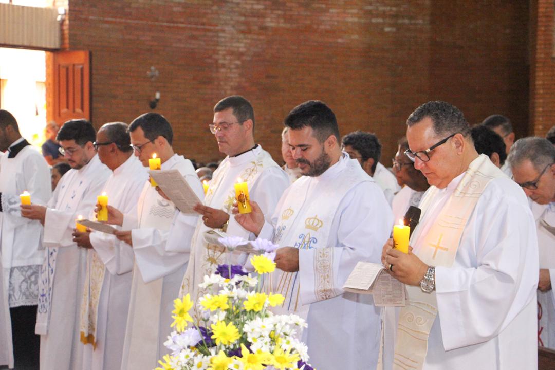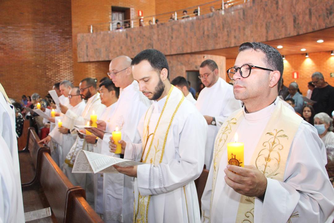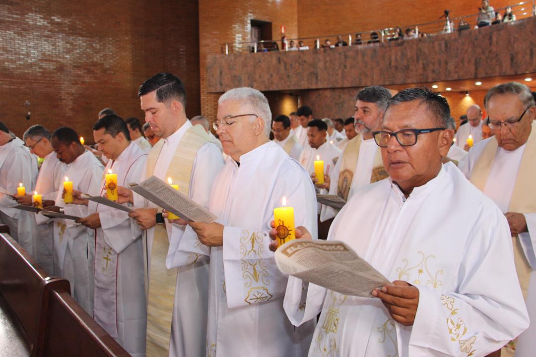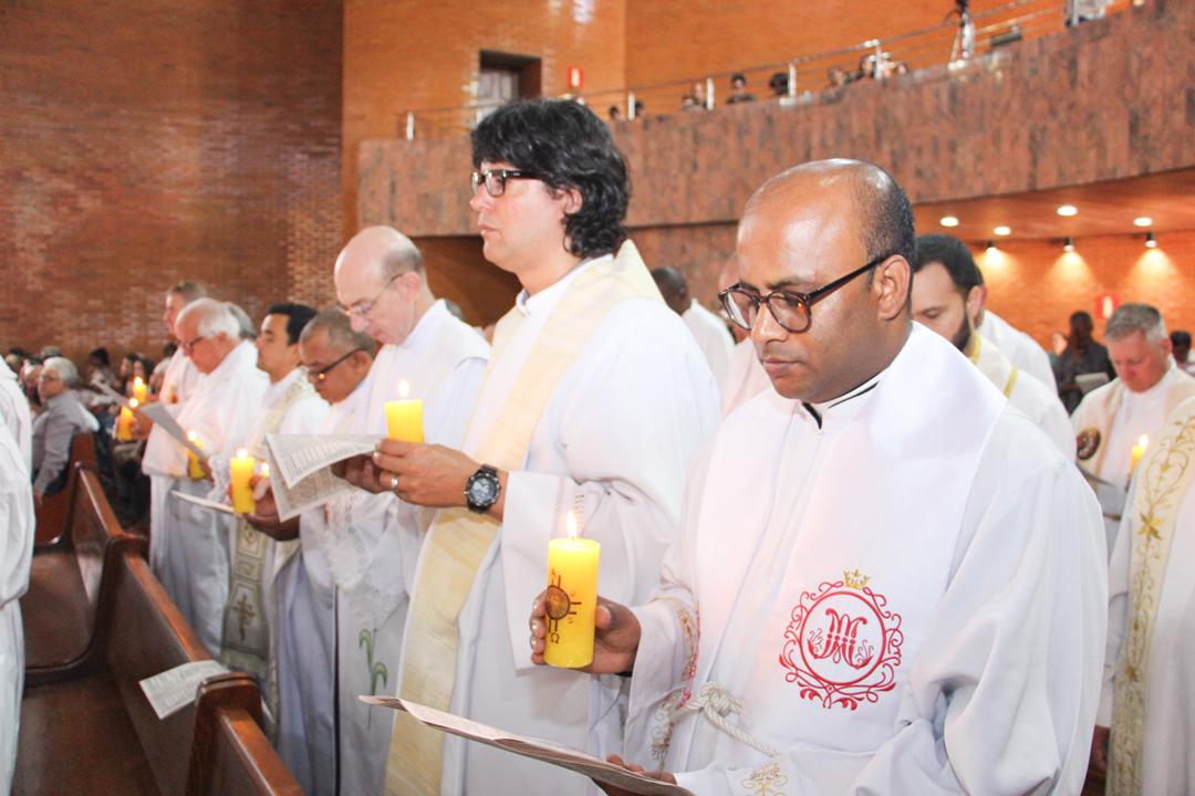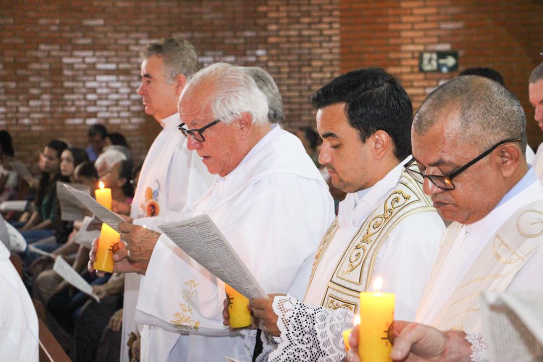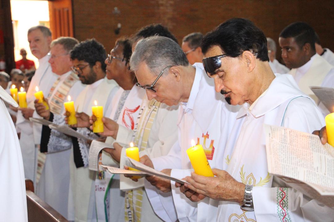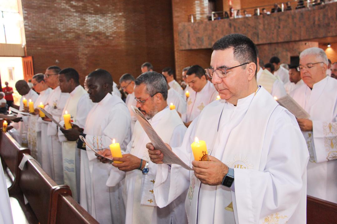 Após a homilia, os padres renovaram as promessas que foram feitas no dia da Ordenação Presbiteral. Esse gesto não é um simples rito, mas tem um significado profundo, pois cada padre renova as suas promessas sacerdotais com os seus irmãos no sacerdócio, diante do e bispo e do altar, fonte e sustento do sacerdócio. Para reavivar o dom de Deus recebido na Ordenação, o presbítero precisa sempre de olhar para o altar, para o presbitério e para o pode de Deus.