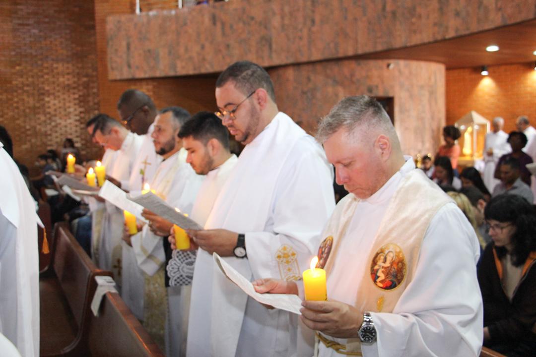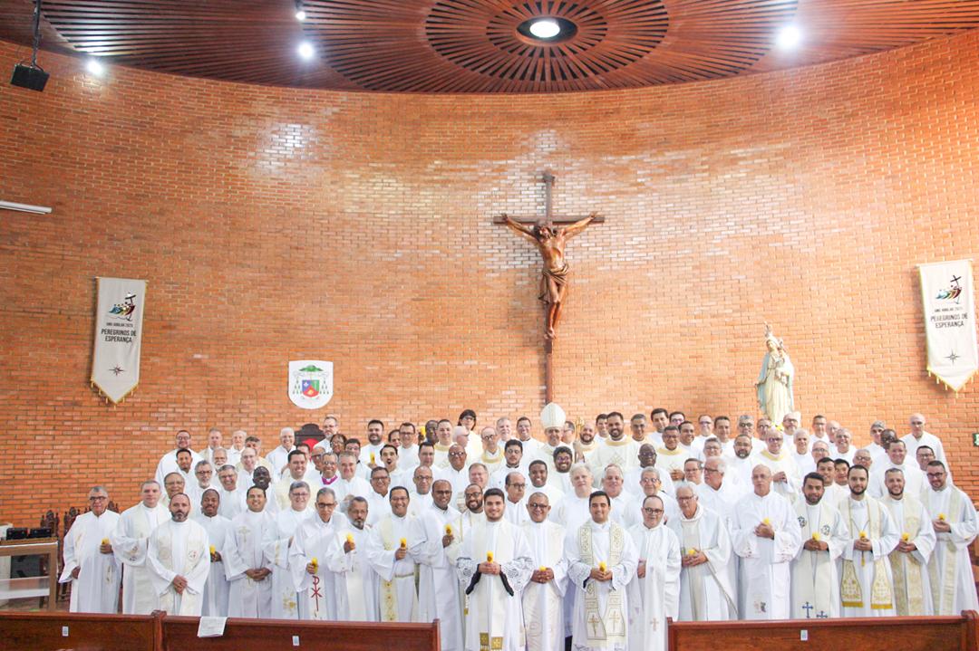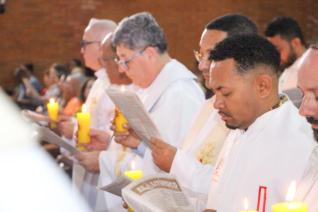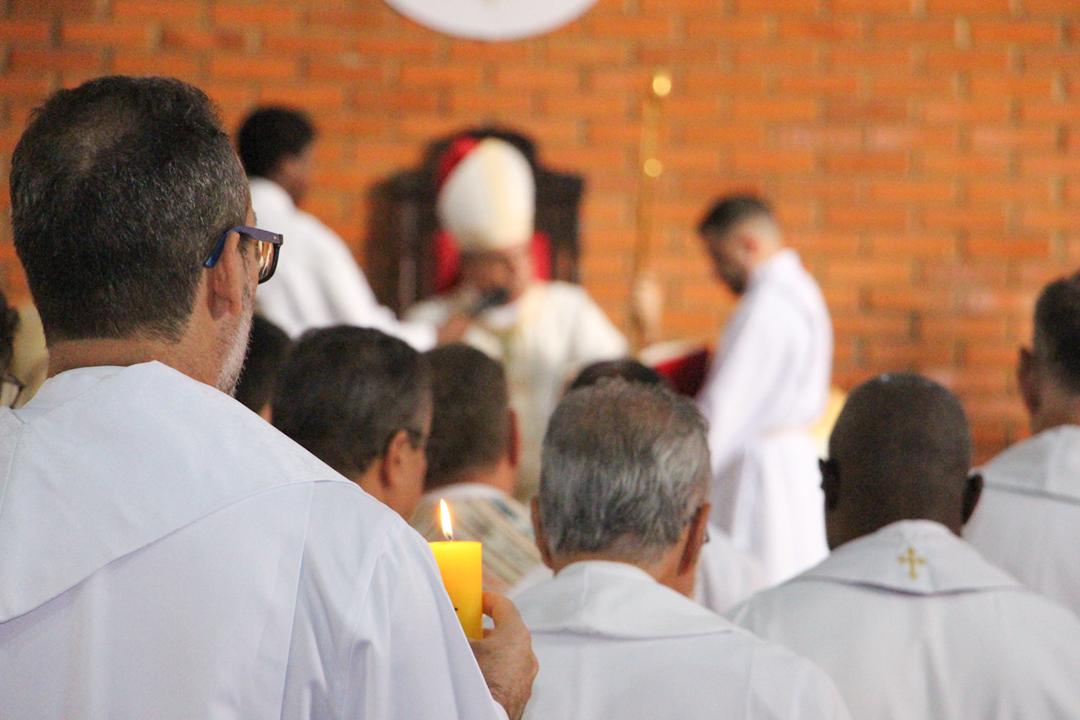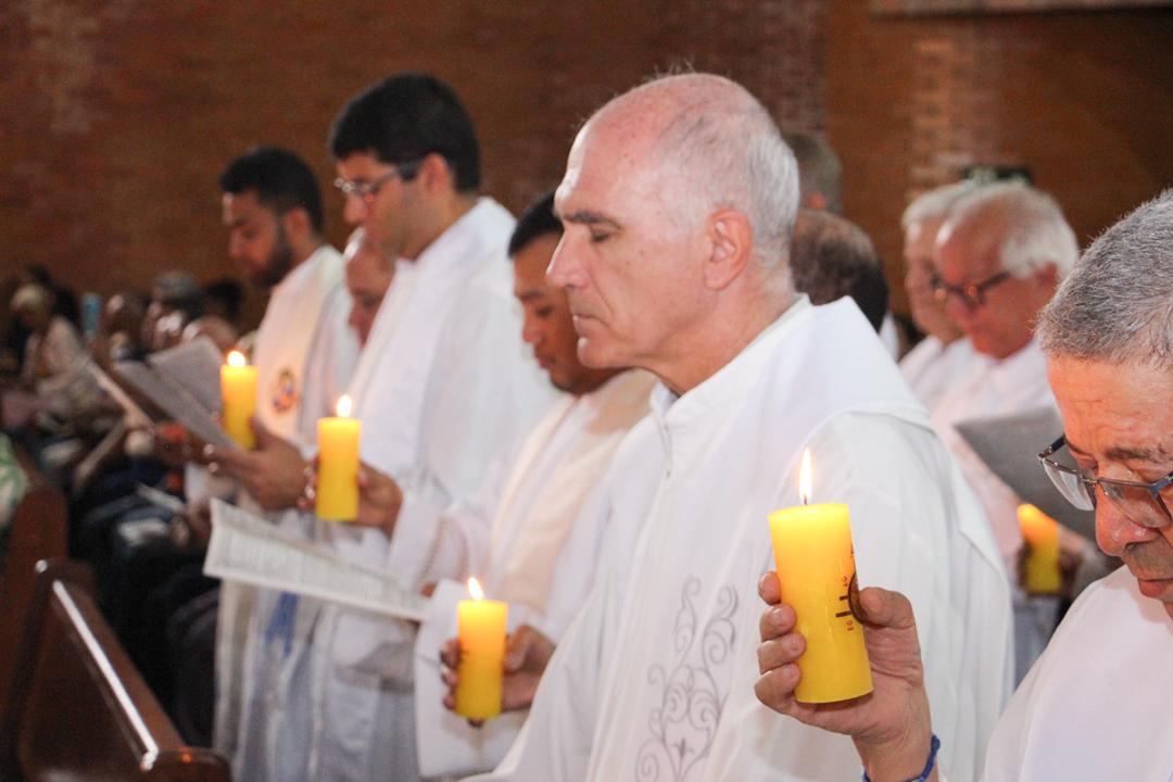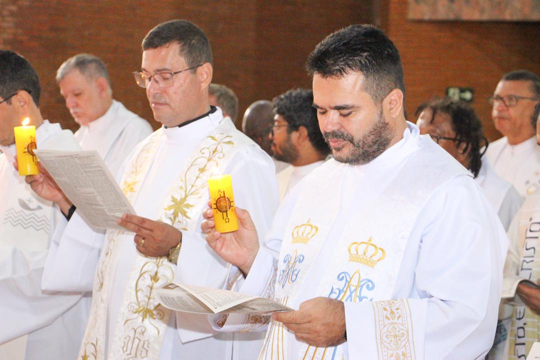 Após a homilia, os padres renovaram as promessas que foram feitas no dia da Ordenação Presbiteral. Esse gesto não é um simples rito, mas tem um significado profundo, pois cada padre renova as suas promessas sacerdotais com os seus irmãos no sacerdócio, diante do e bispo e do altar, fonte e sustento do sacerdócio. Para reavivar o dom de Deus recebido na Ordenação, o presbítero precisa sempre de olhar para o altar, para o presbitério e para o pode de Deus.