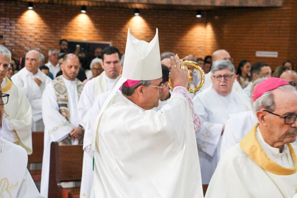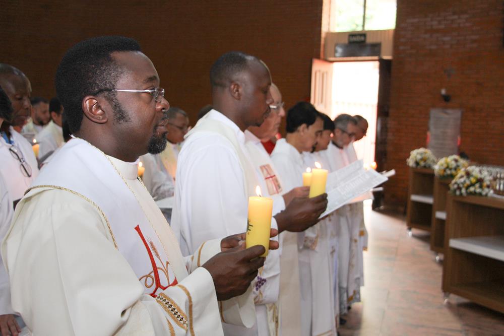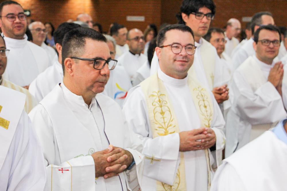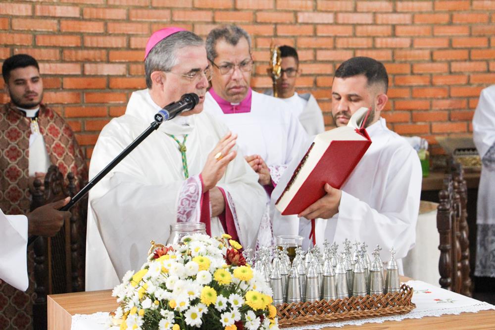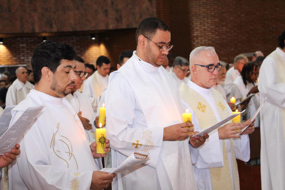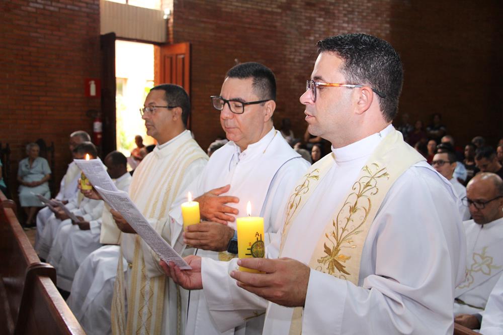 Após a homilia, os padres renovaram as promessas que foram feitas no dia da Ordenação Presbiteral. A renovação da vida sacerdotal, a renovação das Promessas Sacerdotais, embora de cunho pessoal, acontece de forma comunitária, com o clero reunido com o bispo ao redor do altar. Esse gesto que acontece a cada ano não é um simples rito, tem um significado profundo, cada padre renova as suas promessas sacerdotais com os seus irmãos no sacerdócio e com o bispo. Renova os compromissos sacerdotais diante do altar, que é a fonte, o sustento do sacerdócio; renova as Promessas Sacerdotais contando com os fiéis, reunidos e unidos em oração, com os cristãos leigos e leigas que tem um papel tão importante na Igreja. Portanto, para reavivar o dom de Deus recebido na Ordenação, precisam sempre desse olhar: para o altar, para o presbitério e para o povo, a comunidade. E este olhar deve se repetir a cada dia, para que todos possam experimentar, sempre mais, a alegria de ser discípulo do Senhor, de ser sacerdote do Senhor na sua Igreja.