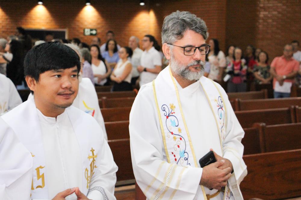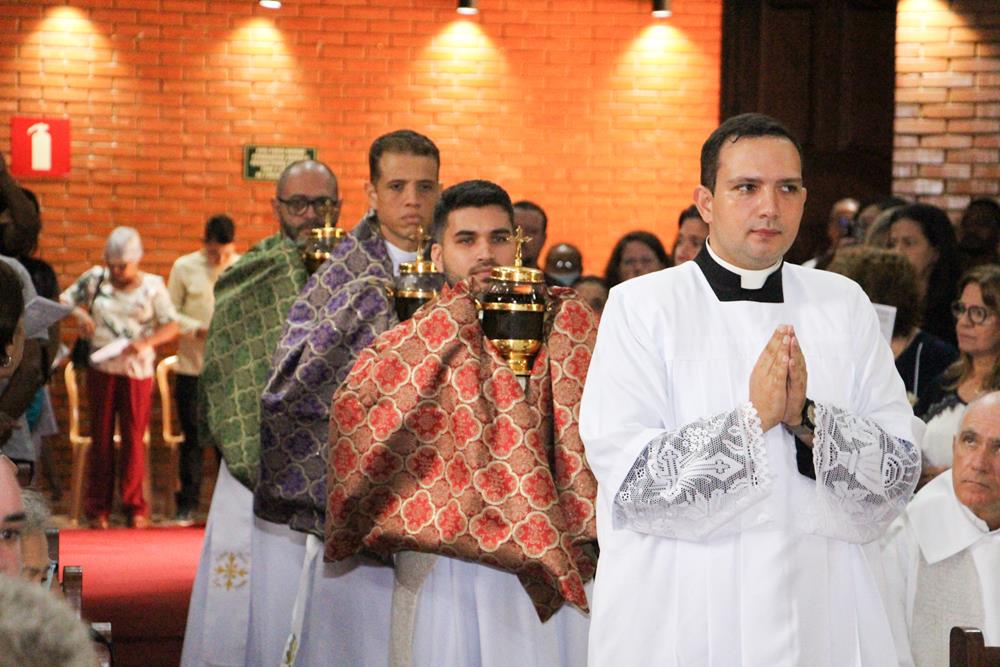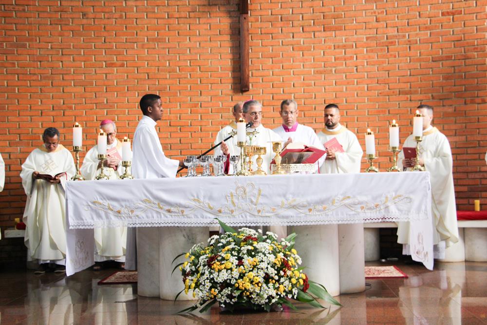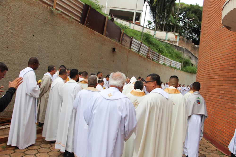Na manhã desta quinta-feira santa, 28 de março, padres e diáconos da Diocese de Itabira-Coronel Fabriciano participaram da Missa da Unidade e por ser o dia da instituição do sacerdócio ministerial, os presbíteros renovaram as Promessas Sacerdotais que fizeram no dia de sua ordenação. Realizada na Catedral Diocesana Nossa Senhora do Rosário, em Itabira, a missa foi presidida pelo bispo diocesano, Dom Marco Aurélio Gubiotti e contou com a presença de Dom Odilon Guimarães Moreira, bispo emérito.