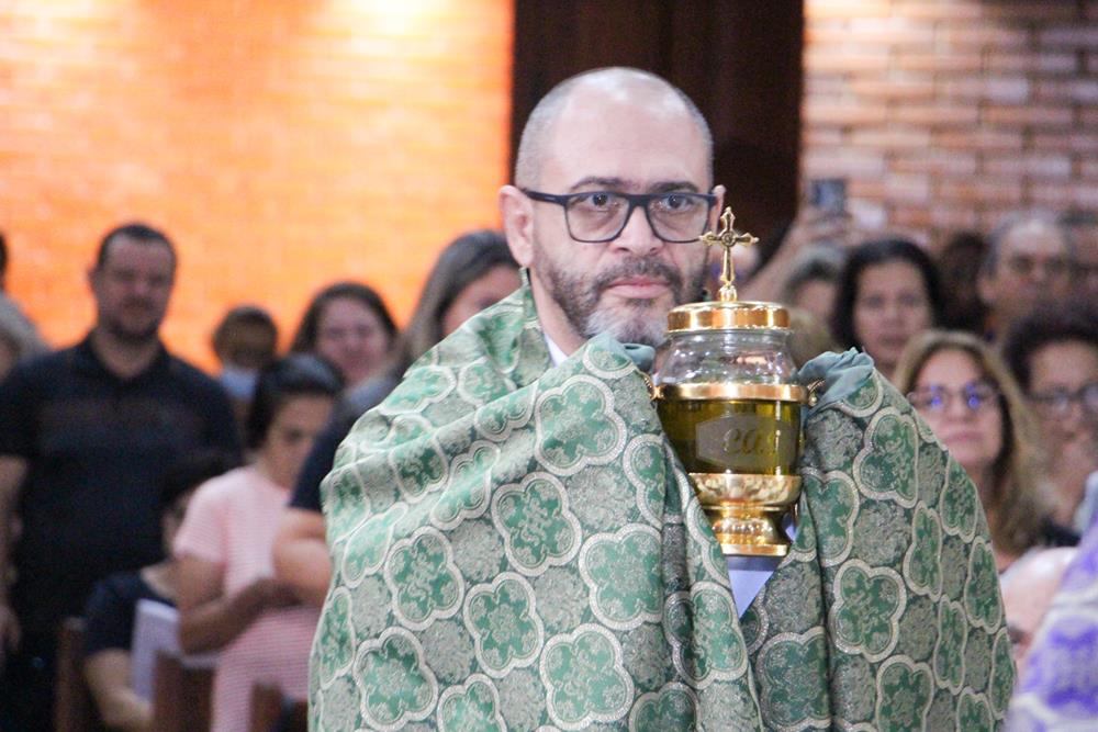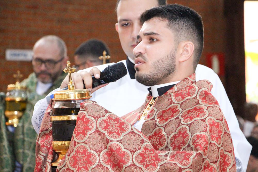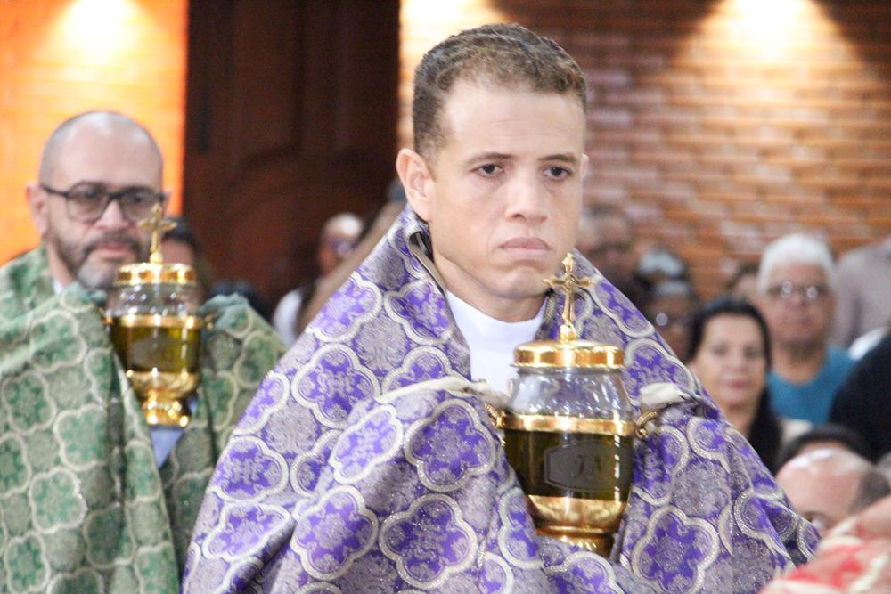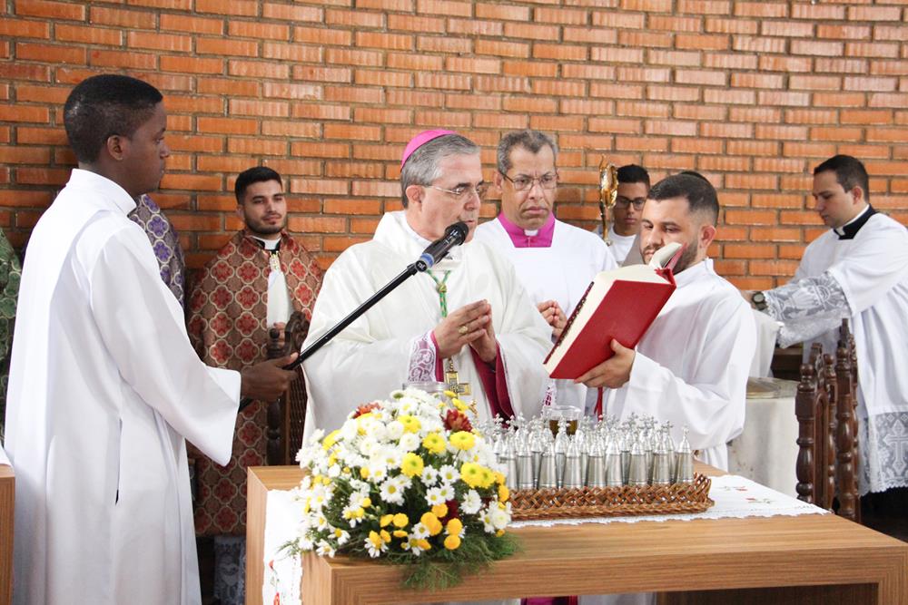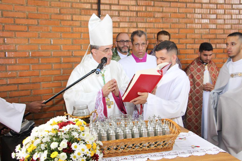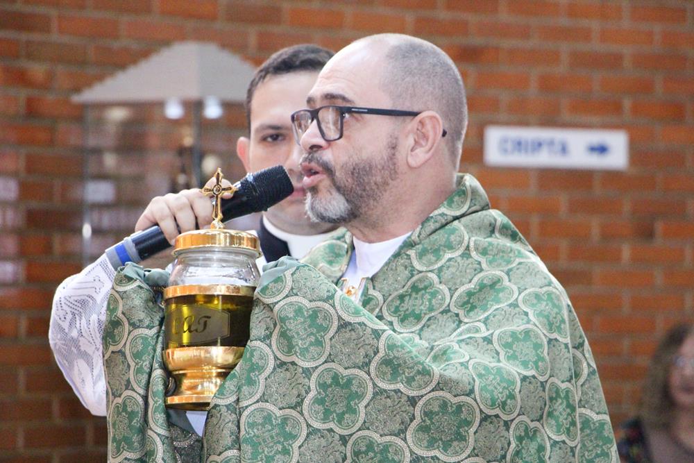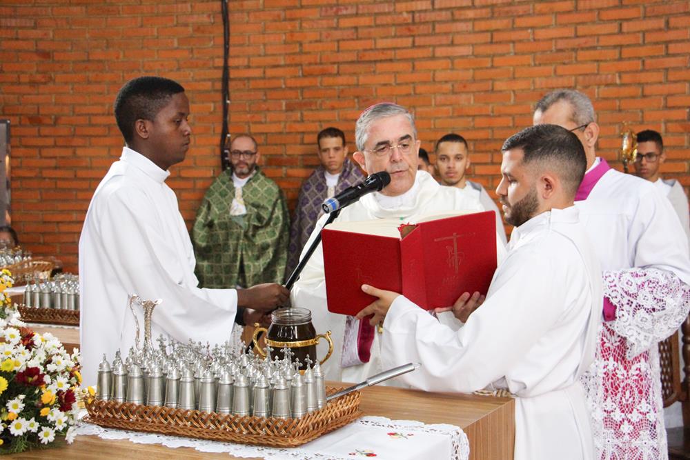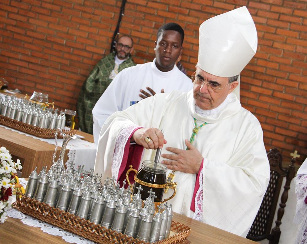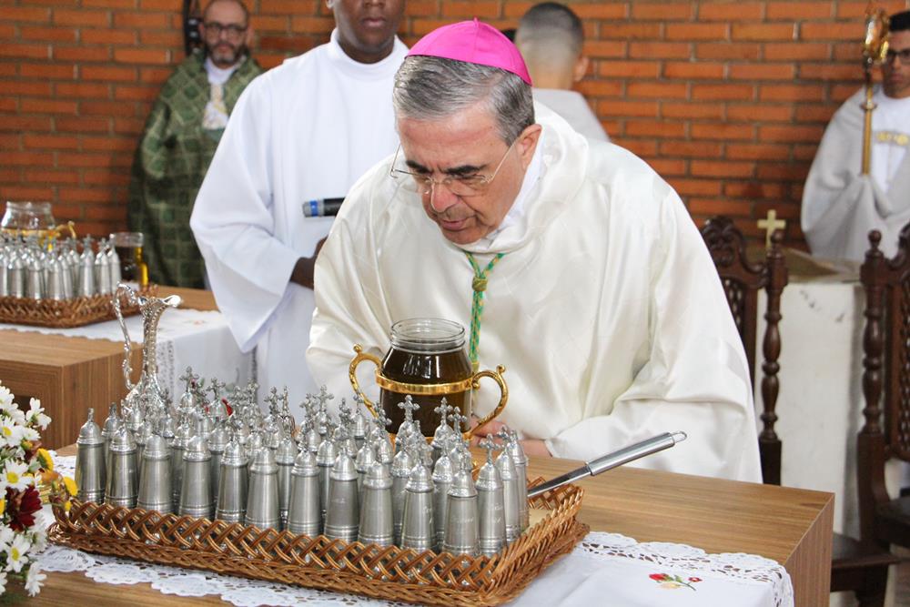 Em seguida, três ânforas contendo azeite de oliva foram conduzidas por diáconos até o altar. O óleo dos catecúmenos – usado no Batismo – e o da Unção dos Enfermos foram abençoados. O óleo do Crisma foi consagrado e recebeu uma porção de bálsamo, um perfume delicado. Esses óleos são utilizados nas unções consacratórias do Batismo (o batizado é ungido no peito), da Confirmação (na fronte), da Ordenação Episcopal (sobre a cabeça do novo bispo) e da Ordenação Sacerdotal (na palma das mãos do neo-sacerdote). Também é utilizado em outros ritos, como na dedicação de uma Igreja e na consagração de um altar.