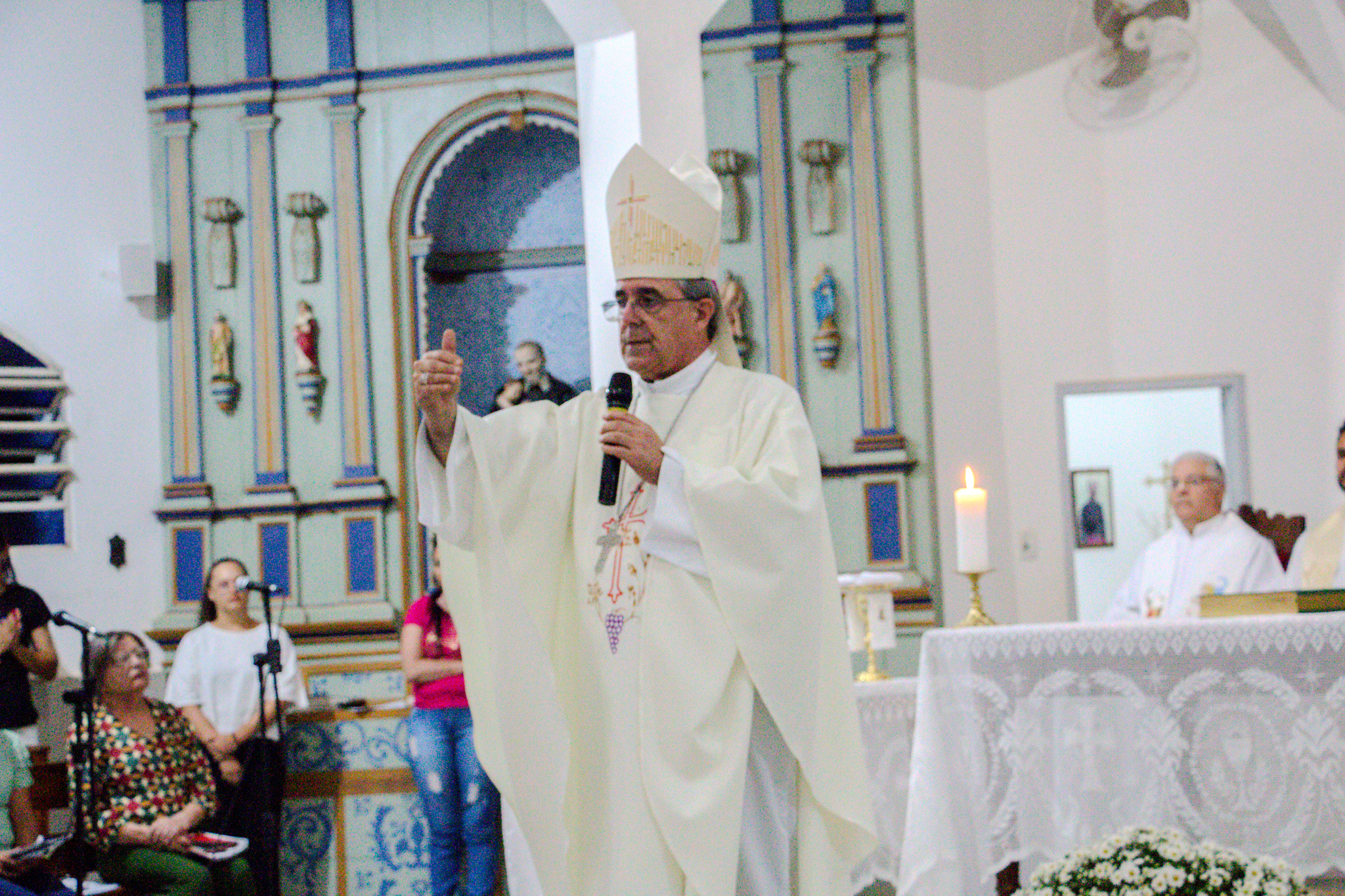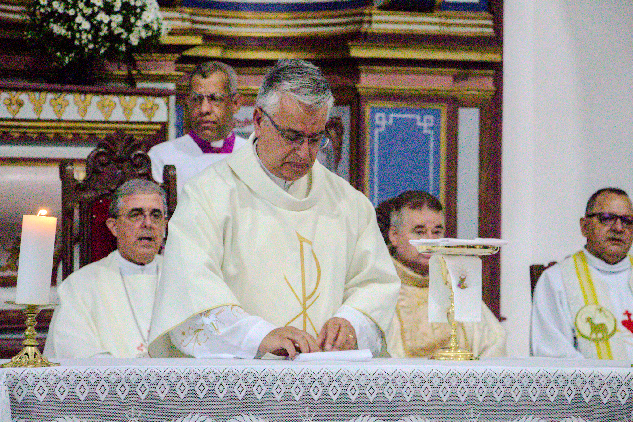 A celebração foi presidida por Dom Marco Aurélio Gubiotti, que conduziu a comunidade neste importante momento da vida paroquial. No início da Santa Missa, foi realizada a leitura da provisão que nomeia o Pe. Dirceu para a nova missão, oficializando sua designação como Administrador Paroquial. Ao final da celebração, foi lida e assinada a ata de posse, confirmando formalmente o início de seu ministério à frente da paróquia.