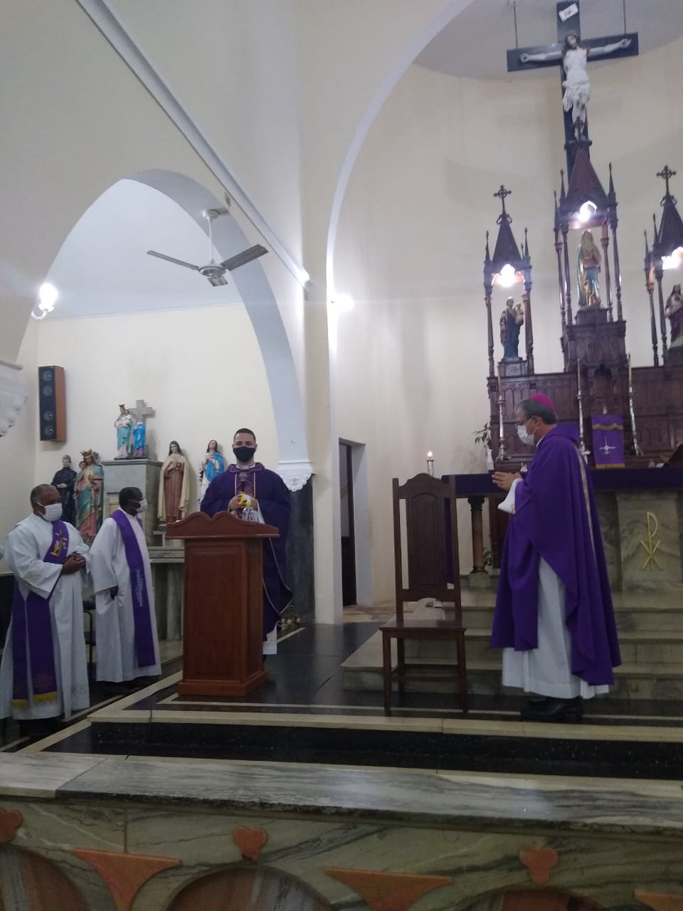 Na última quinta-feira, 18 de fevereiro, foi realizada a Missa de Posse do Pe. Márcio Rodrigo Mota como Administrador Paroquial da Paróquia Nossa Senhora das Dores em Marliéria (MG). A celebração foi presidida pelo nosso bispo diocesano, Dom Marco Aurélio Gubiotti, concelebrada pelos padres Efferson Dionisio Andrade, Fernando dos Santos Andrade, Alex Banza Ilunga, Josimar Nunes da Silva e assistida pelos diácono permanentes Vicente Moreira da Silva, Luiz Sales Luzia e Luiz Carlos de Paiva.
