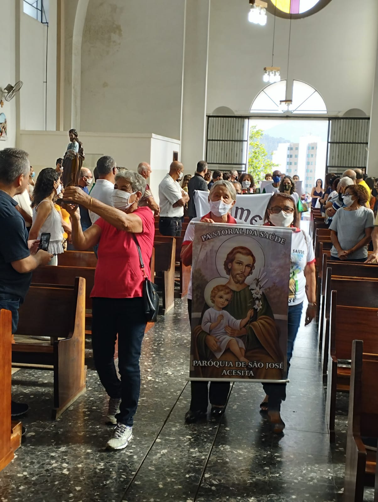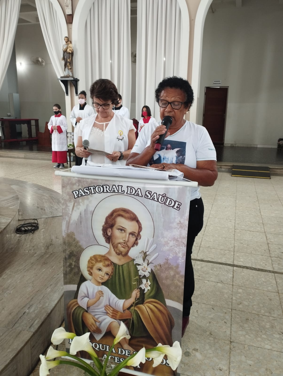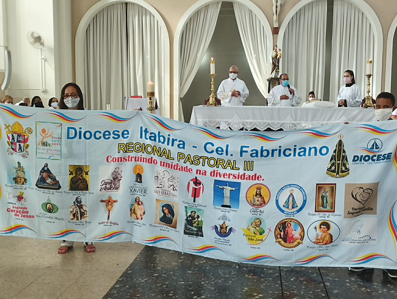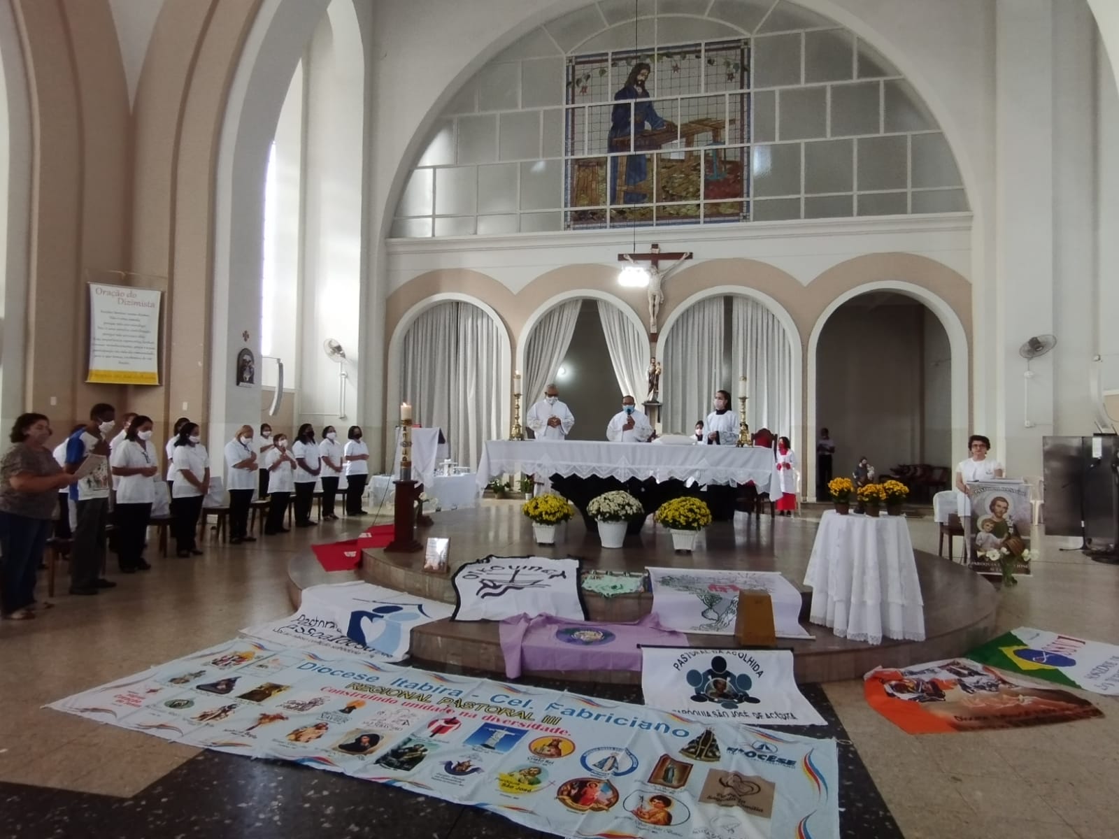 Presidida pelo Pe. Nailson e assistida pelo Diácono Marcelo, a celebração contou com a participação de representantes das Pastorais Sociais da Região Pastoral de nossa Diocese de Itabira – Coronel Fabriciano, que munidos de suas bandeiras, uniram-se em oração diante do altar de Deus e do querido padroeiro de todos os operários, o glorioso São José.