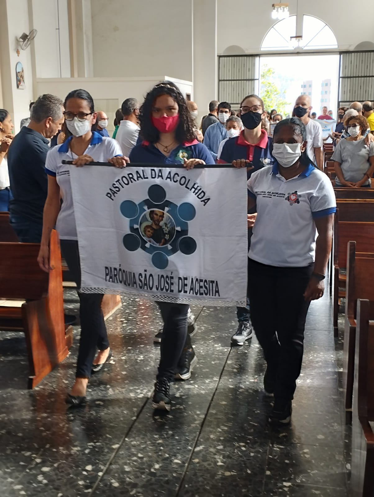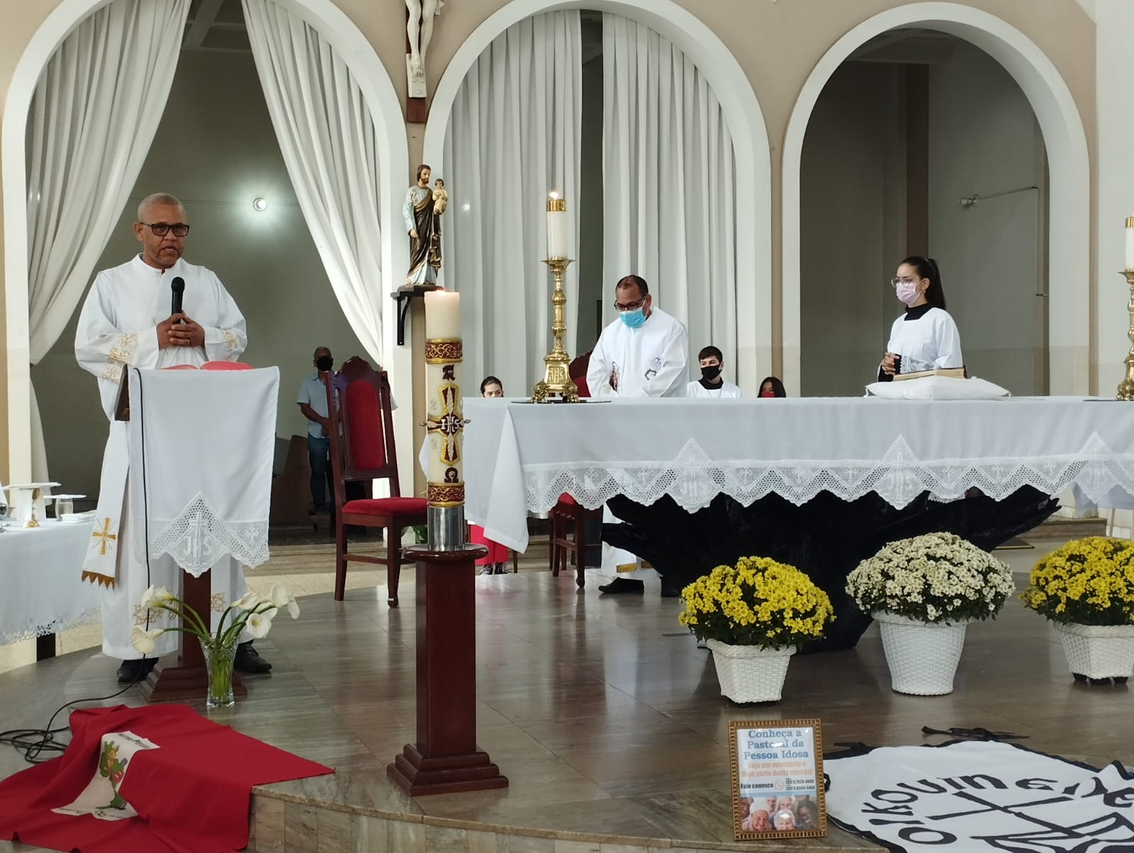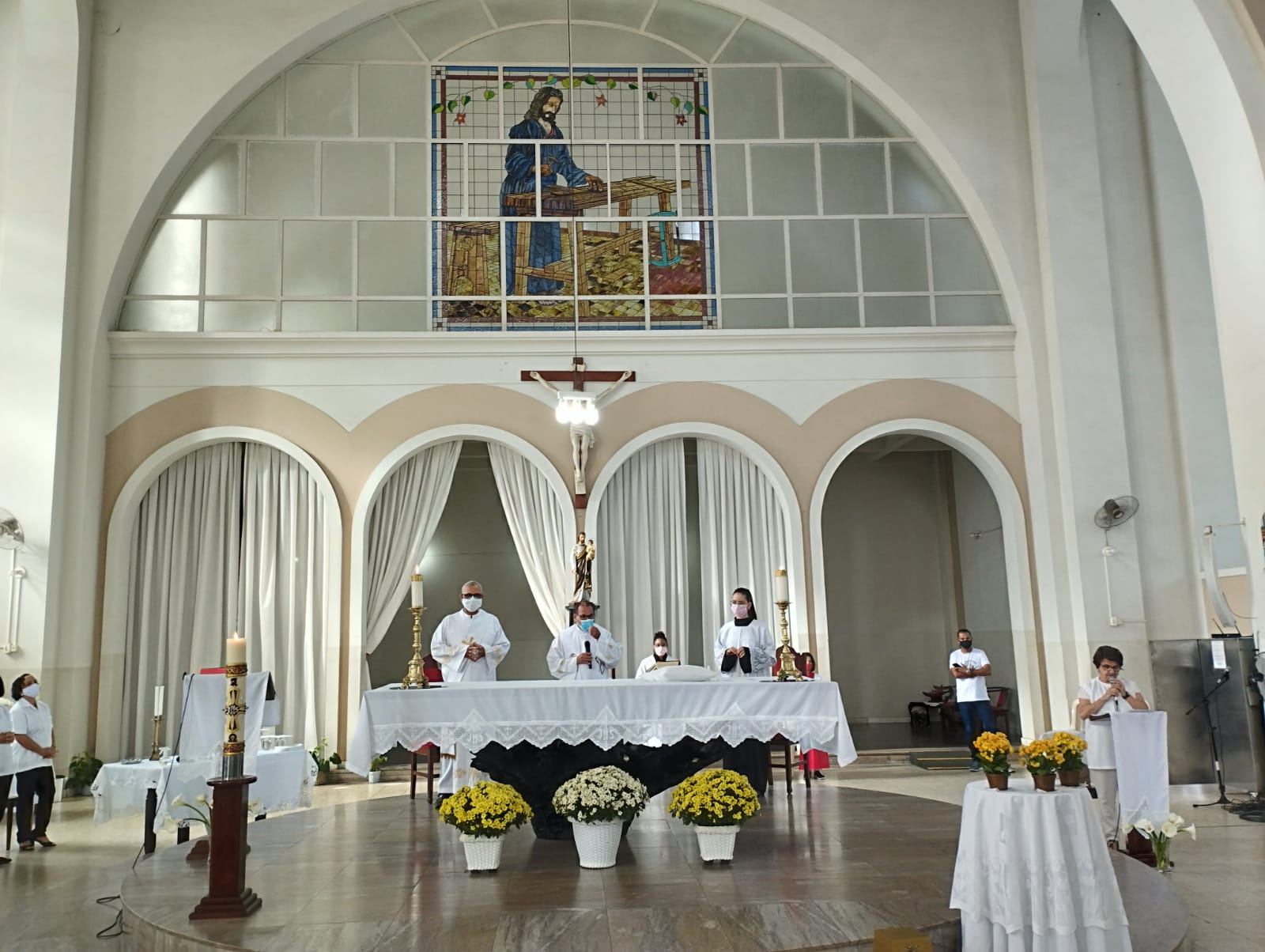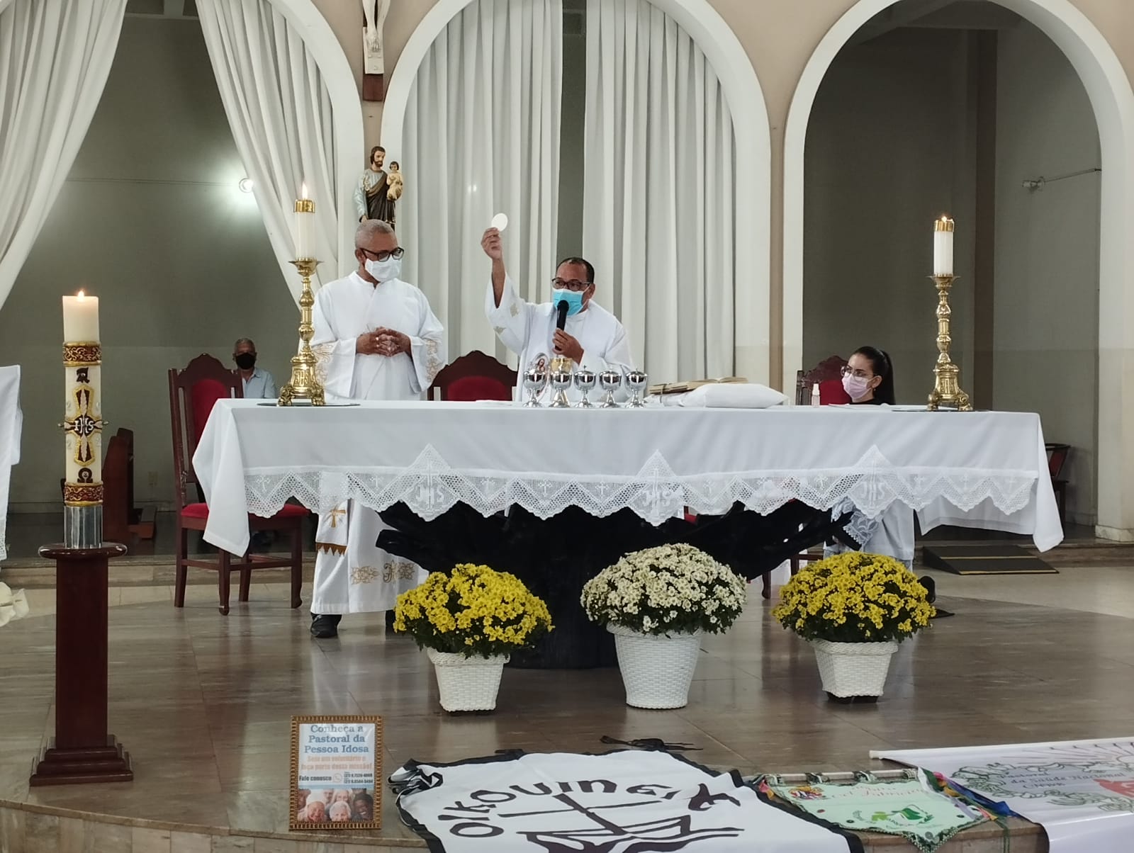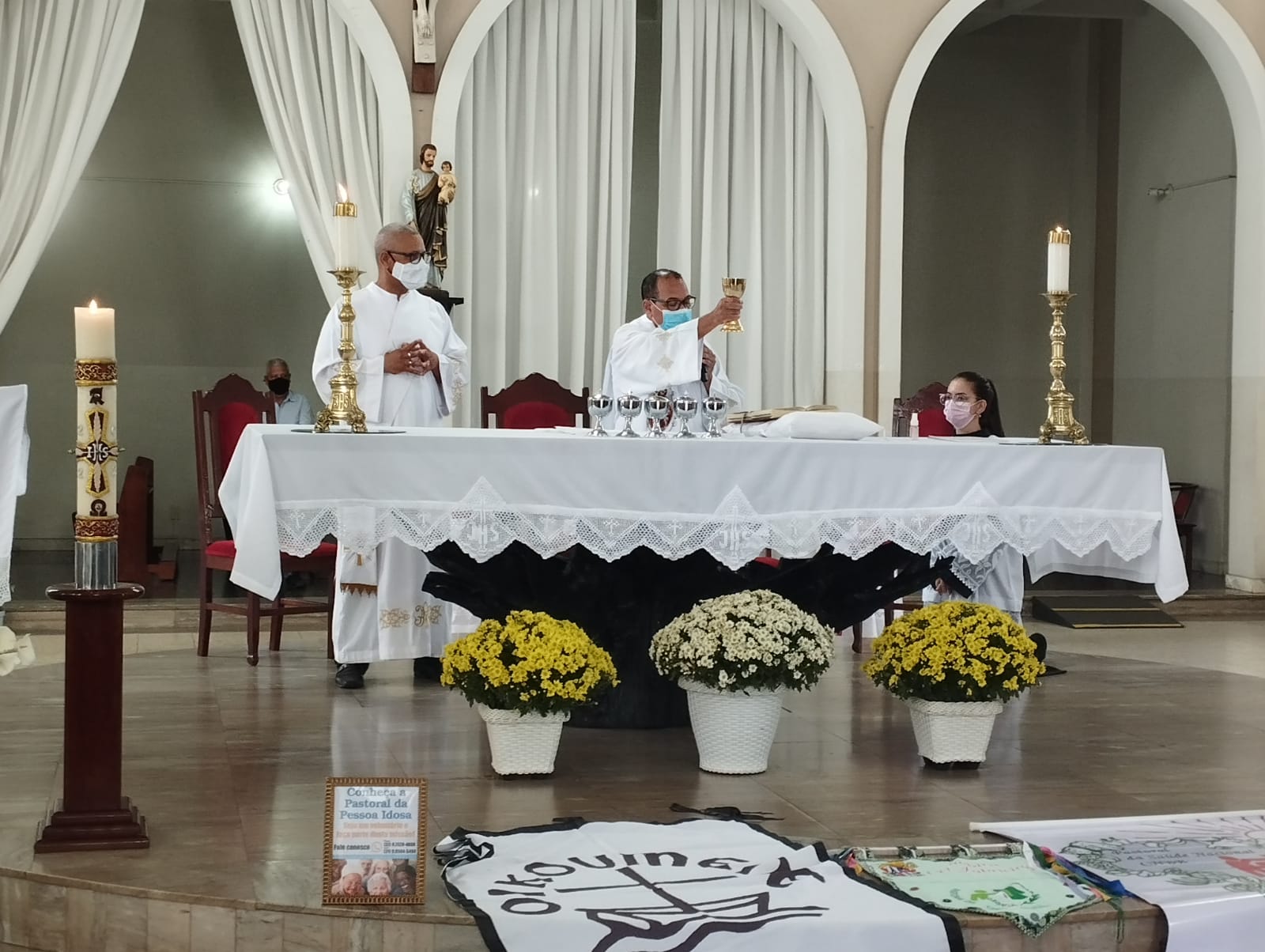 Presidida pelo Pe. Nailson e assistida pelo Diácono Marcelo, a celebração contou com a participação de representantes das Pastorais Sociais da Região Pastoral de nossa Diocese de Itabira – Coronel Fabriciano, que munidos de suas bandeiras, uniram-se em oração diante do altar de Deus e do querido padroeiro de todos os operários, o glorioso São José.
