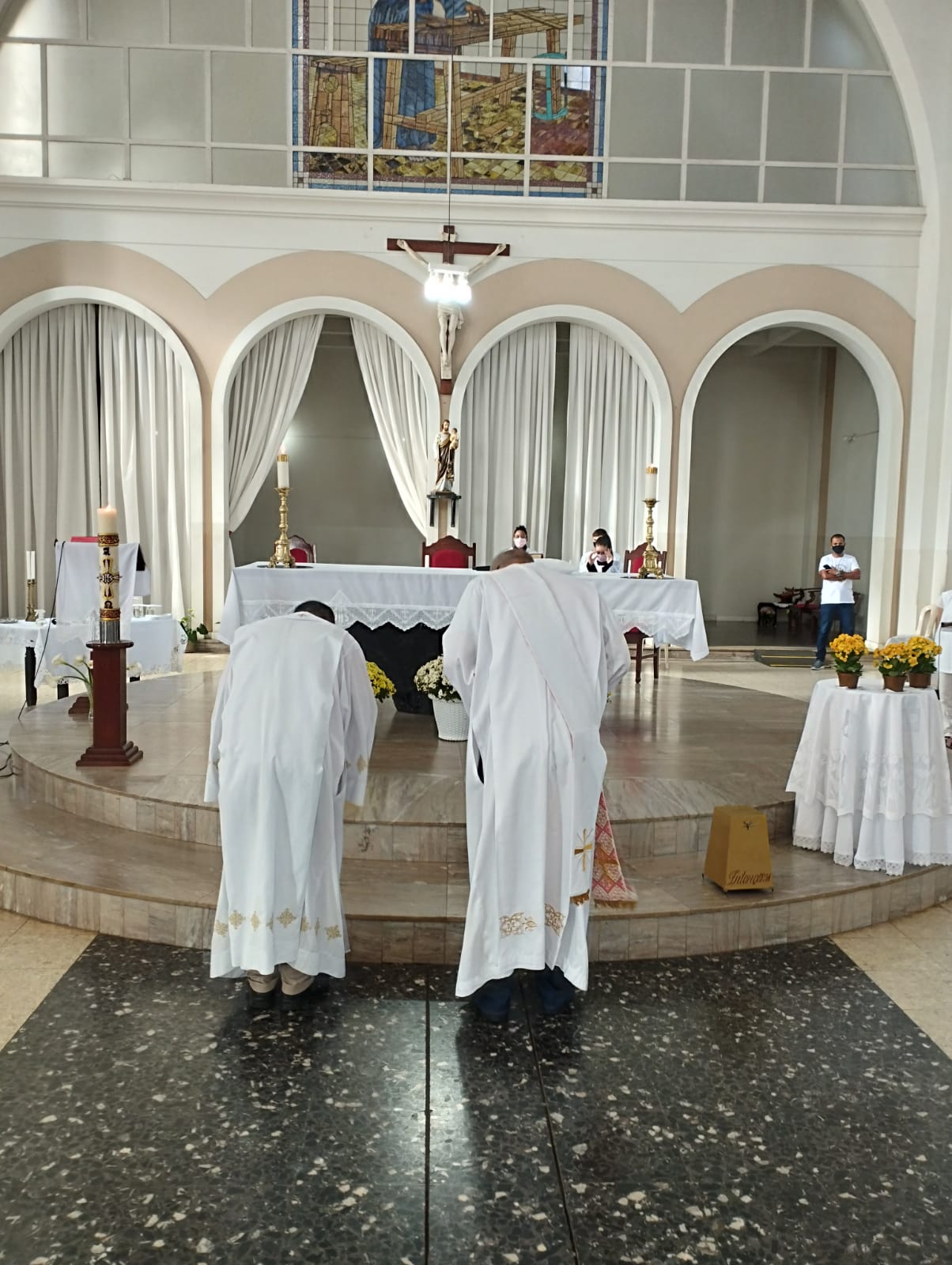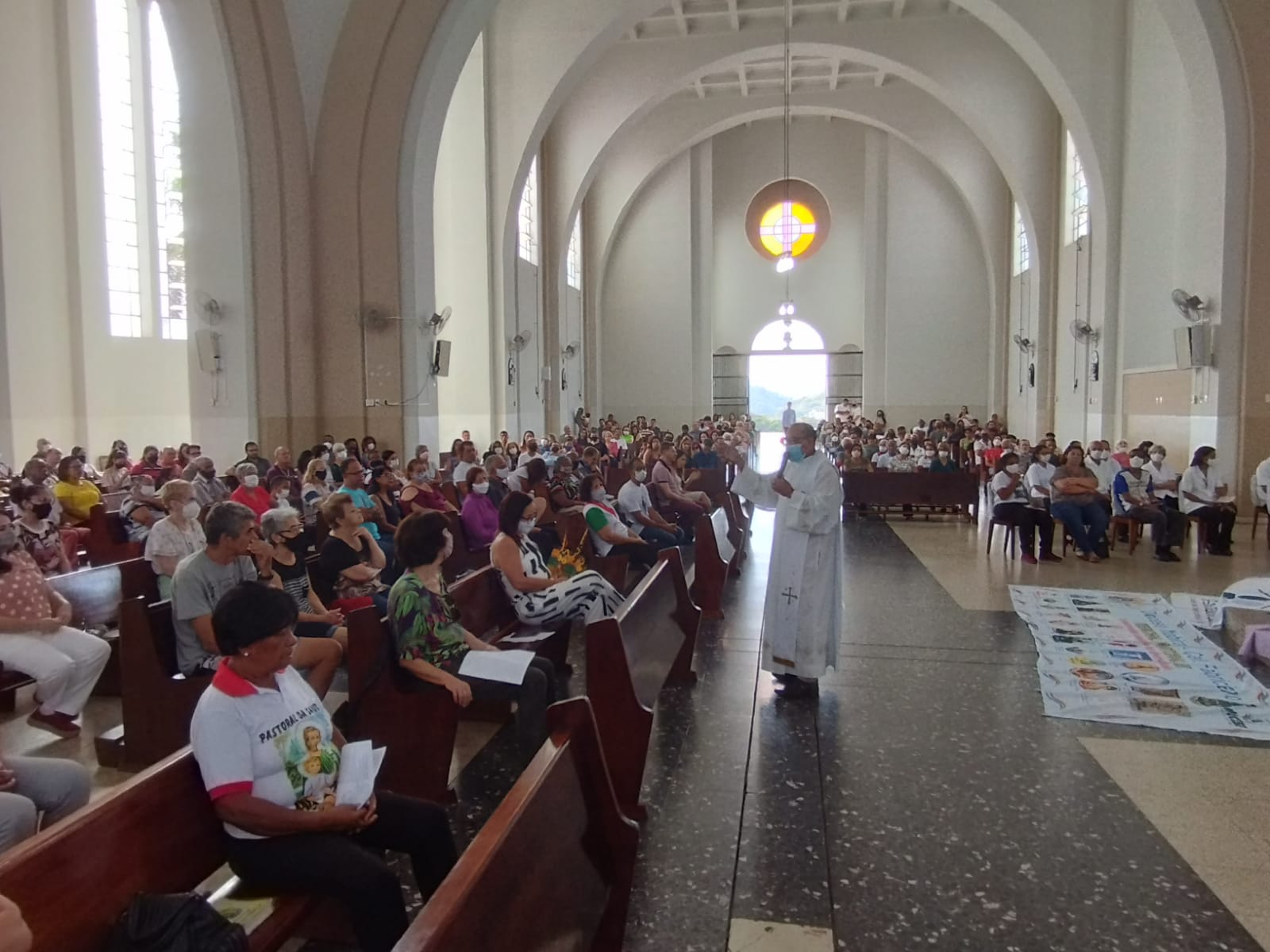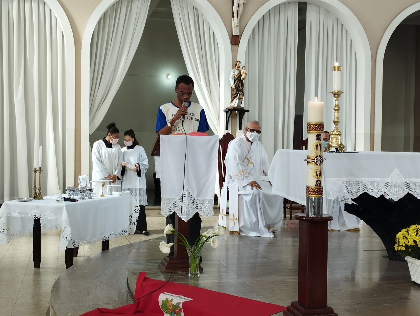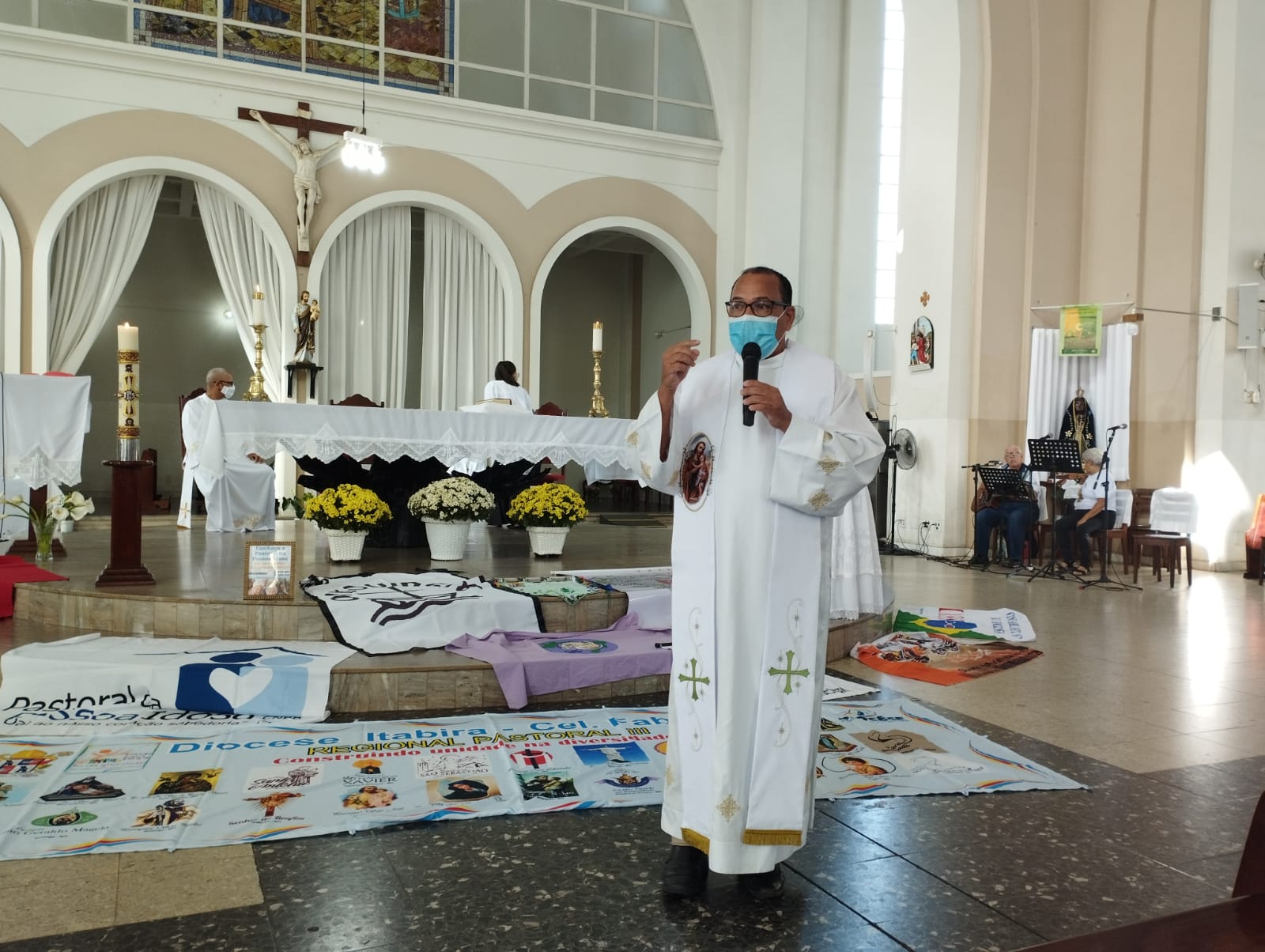 Presidida pelo Pe. Nailson e assistida pelo Diácono Marcelo, a celebração contou com a participação de representantes das Pastorais Sociais da Região Pastoral de nossa Diocese de Itabira – Coronel Fabriciano, que munidos de suas bandeiras, uniram-se em oração diante do altar de Deus e do querido padroeiro de todos os operários, o glorioso São José.