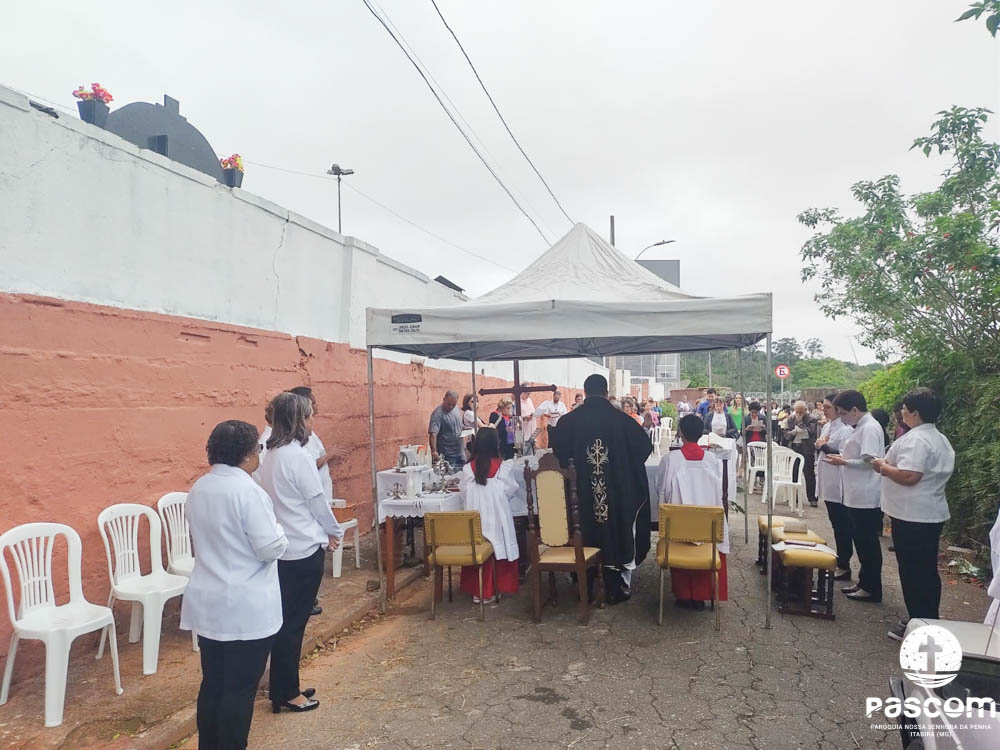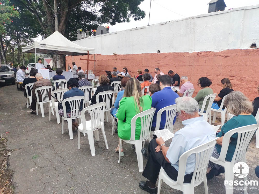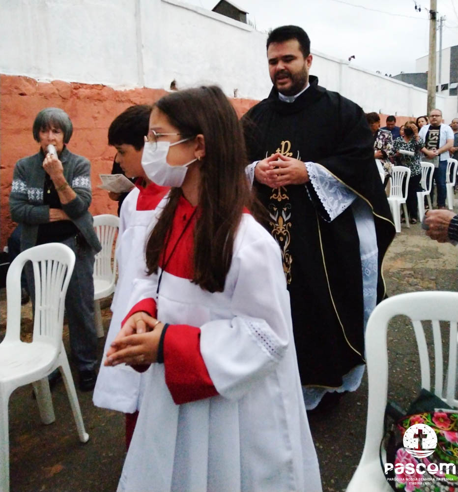 Neste dia também, às 09h30, o Pe. Paulo Marcony Duarte Simões presidiu, pároco da Paróquia Nossa Senhora da Saúde, presidiu a santa missa em sufrágio dos fieis defuntos no Cemitério do Cruzeiro.