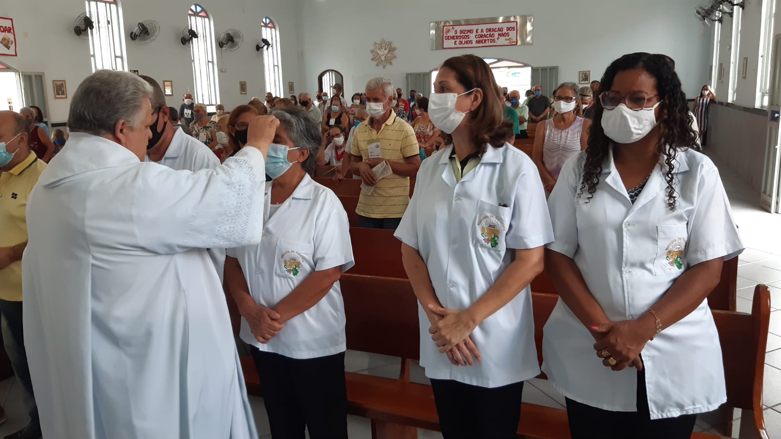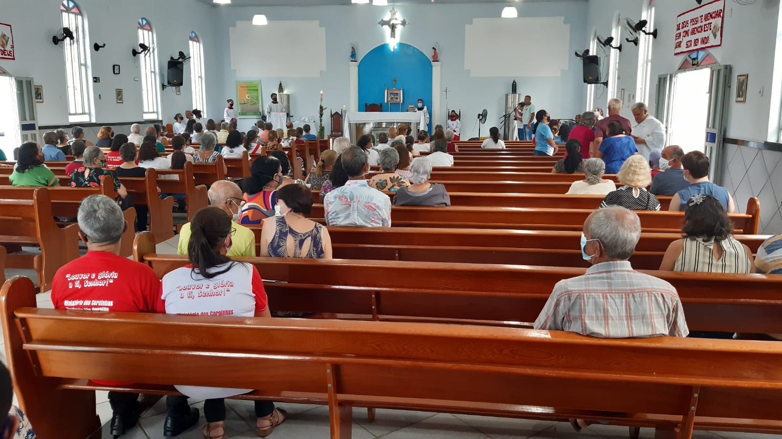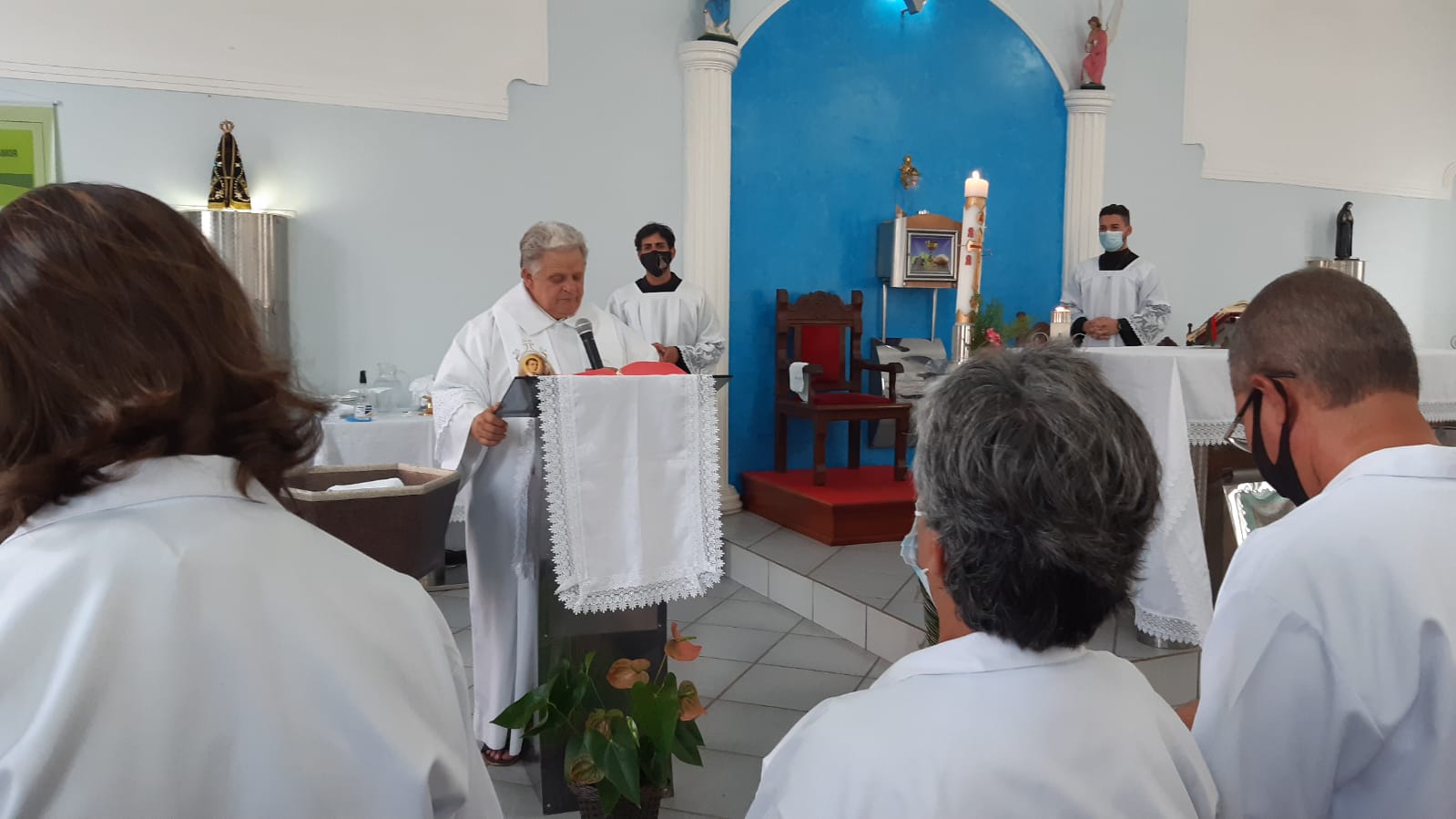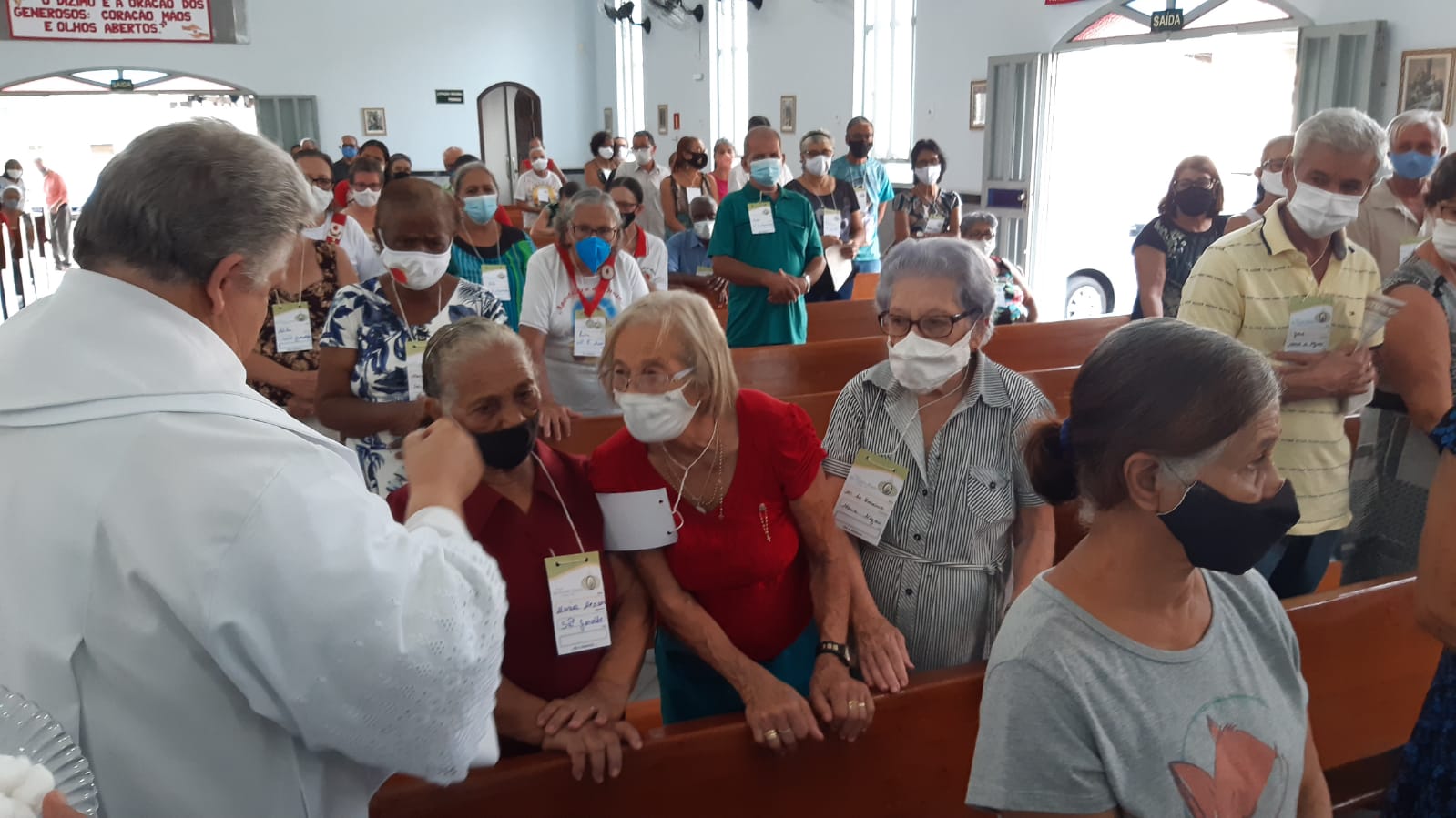 Por sua vez em sua homilia o Pe. Aloísio saldou os idosos que sempre frequentaram a igreja mas por conta da idade ou da saúde afastaram-se das celebrações das missas passando a acompanhá-las pela rádio ou pelas mídias sociais e canais de tv.