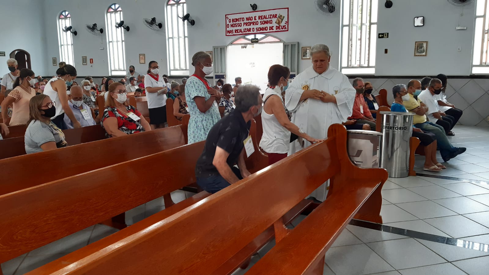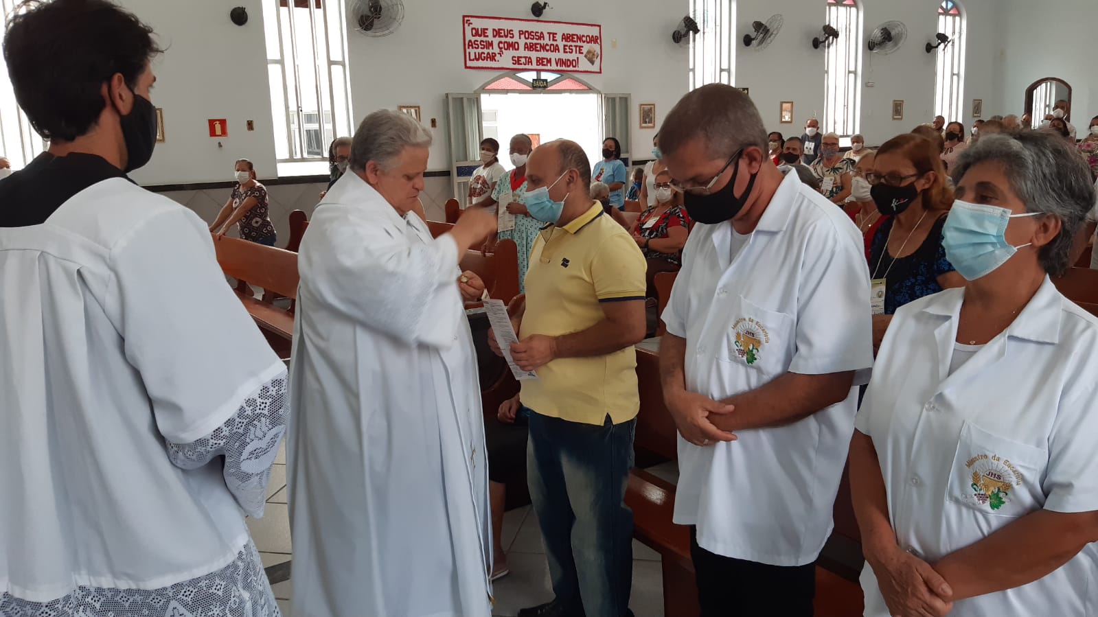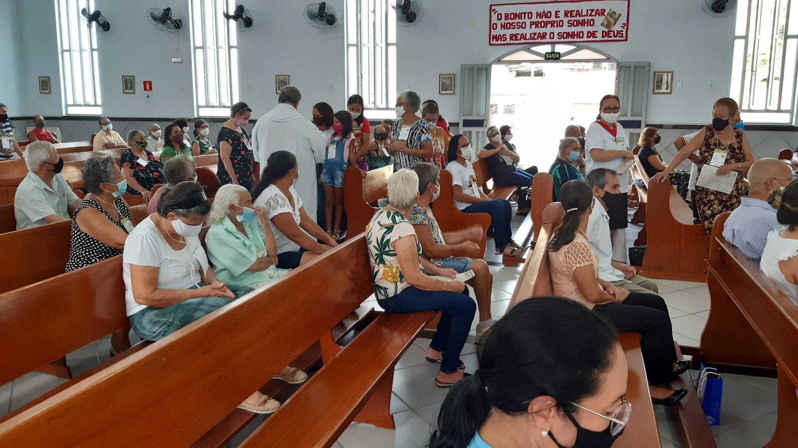 Por sua vez em sua homilia o Pe. Aloísio saldou os idosos que sempre frequentaram a igreja mas por conta da idade ou da saúde afastaram-se das celebrações das missas passando a acompanhá-las pela rádio ou pelas mídias sociais e canais de tv.