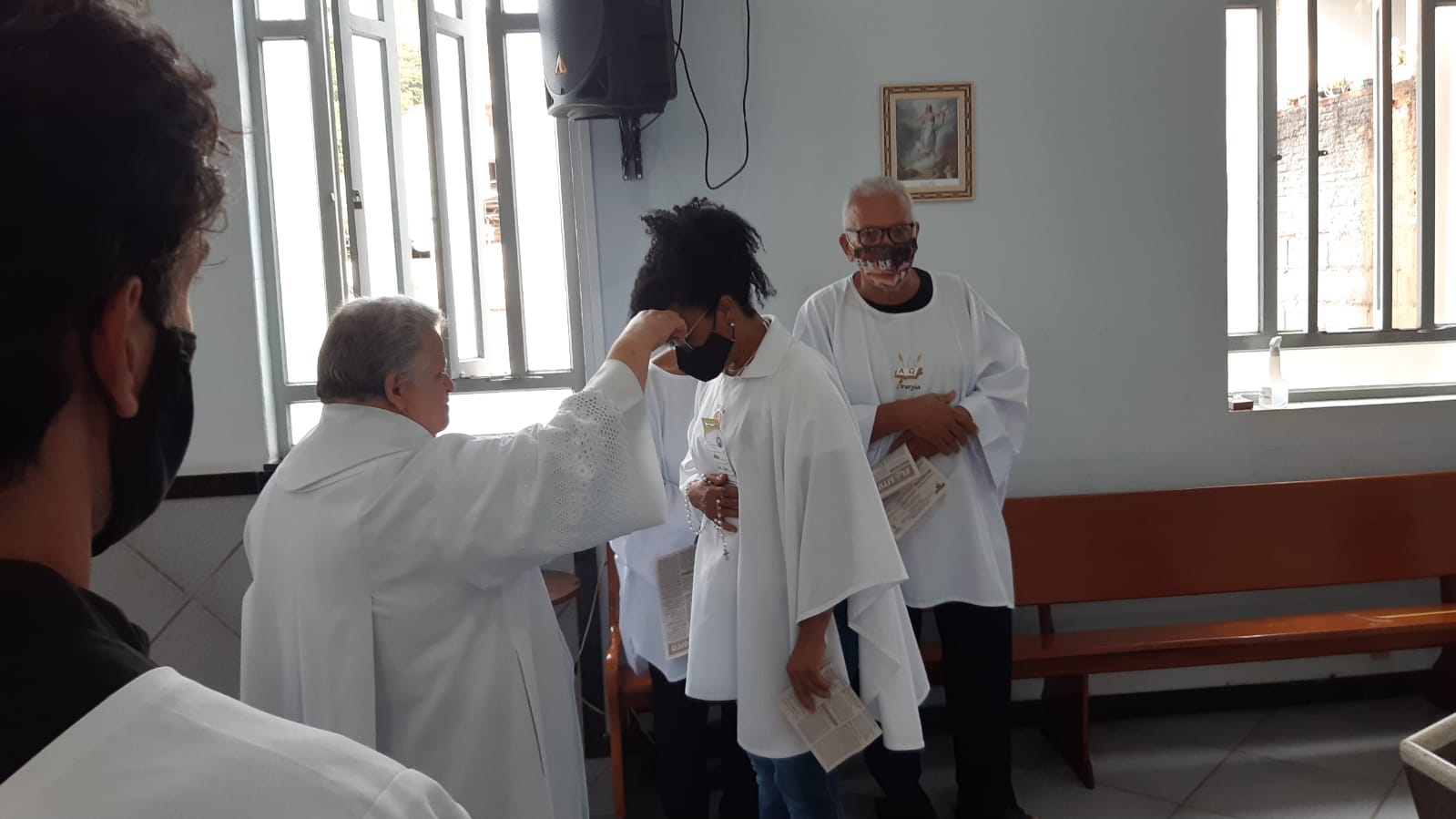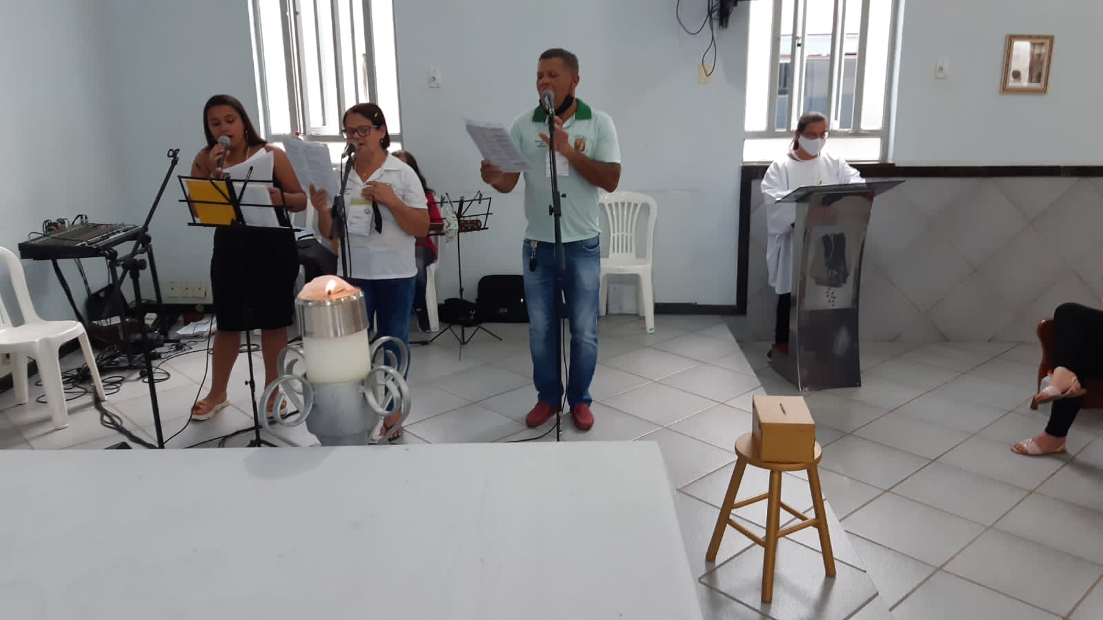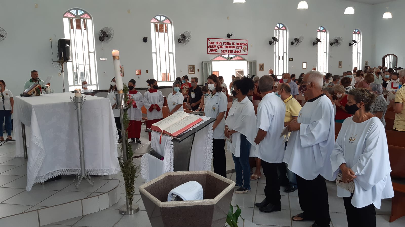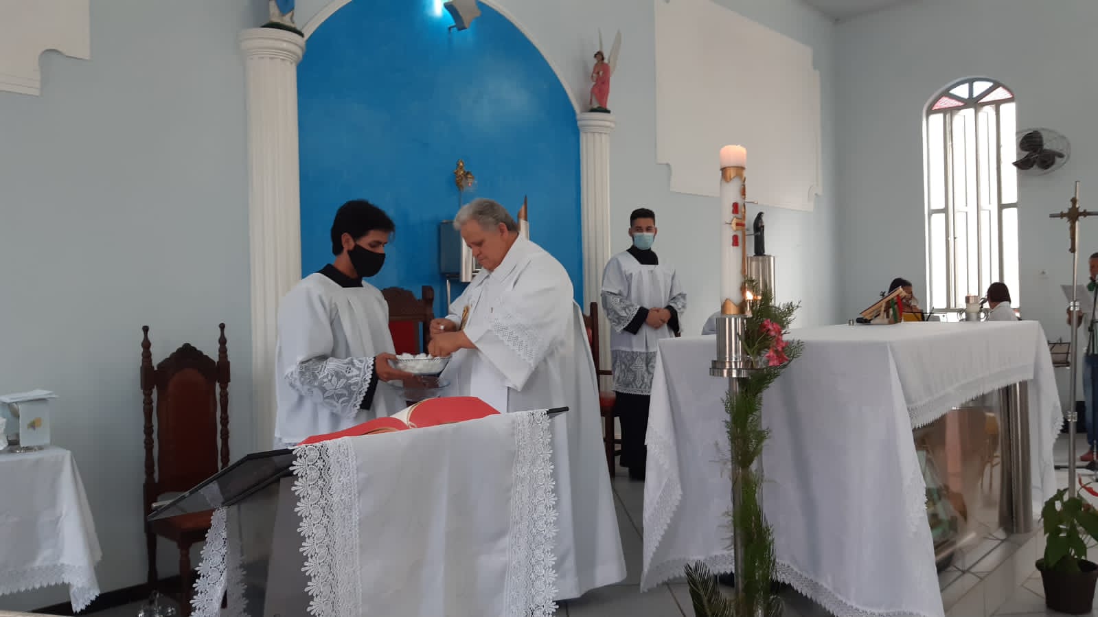 Por sua vez em sua homilia o Pe. Aloísio saldou os idosos que sempre frequentaram a igreja mas por conta da idade ou da saúde afastaram-se das celebrações das missas passando a acompanhá-las pela rádio ou pelas mídias sociais e canais de tv.
