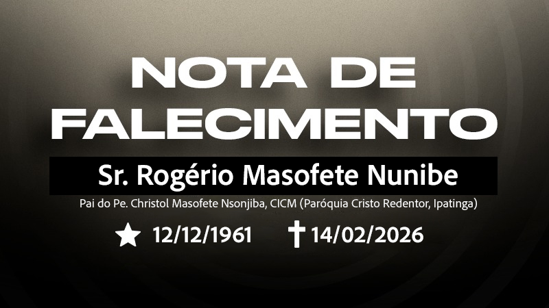 Com filial confiança no Pai das Misericórdias e Deus de toda consolação, a Diocese de Itabira-Coronel Fabriciano comunica o falecimento do Sr. Rogério Masofete Nunibe, pai do Pe. Christol Masofete Nsonjiba, CICM, ocorrido hoje, 14 de fevereiro de 2026, na República Democrática do Congo.