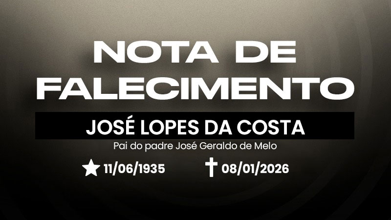 A Diocese de Itabira-Coronel Fabriciano comunica, com pesar, o falecimento do Sr. José Lopes da Costa, Pai do padre José Geraldo de Melo, ocorrido nesta quinta-feira, 08 de janeiro de 2026.
