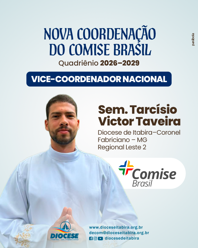 Este momento é, para toda a Igreja no Brasil, um convite renovado à oração. Que o Espírito Santo conduza este serviço com sabedoria, humildade e fidelidade evangélica. Que Santa Teresinha do Menino Jesus e São Francisco Xavier, padroeiros das missões, intercedam de modo especial pelos nossos seminaristas para que seu ministério de serviço no COMISE seja fecundo, luminoso e profundamente enraizado no amor a Cristo e à Igreja.