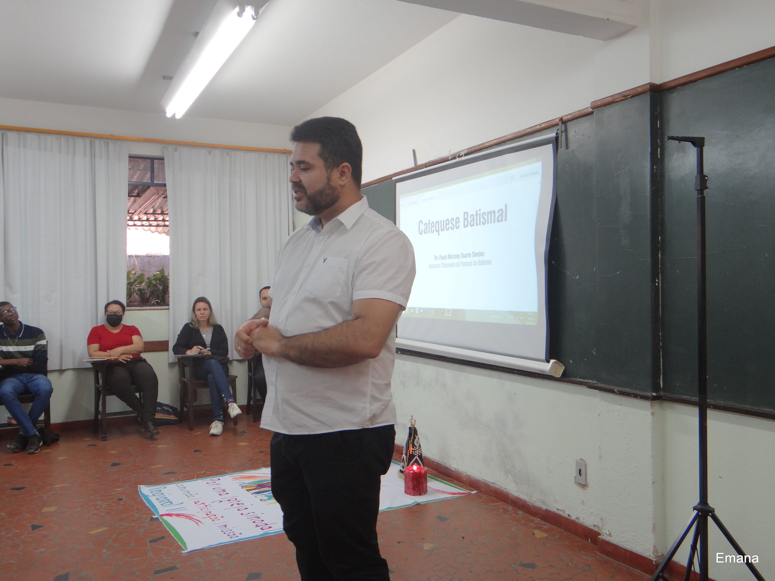 Assessorado pelo Pe. Paulo Marcone, Assessor Diocesano da Catequese Batismal, e pela Coordenadora Diocesana, Margareth, o encontro contou também com a presença do Pe. Marco José de Almeida, Coordenador de Pastoral deste regional, que manifestou aos participantes palavras de incentivo e perseverança.
