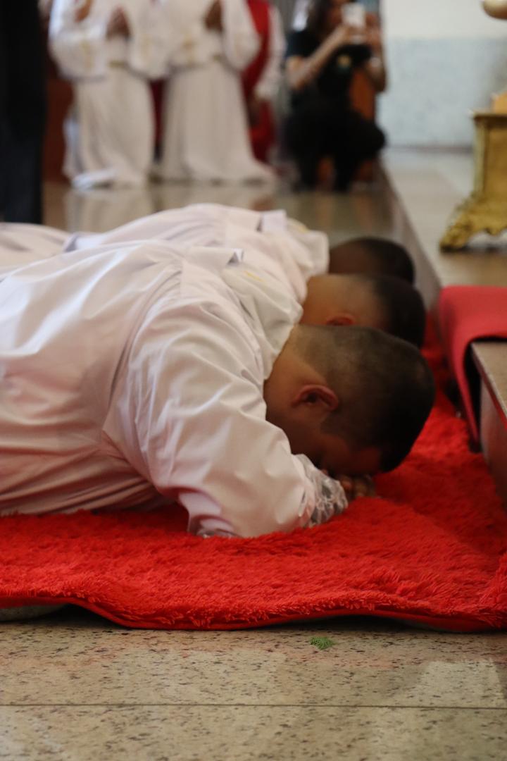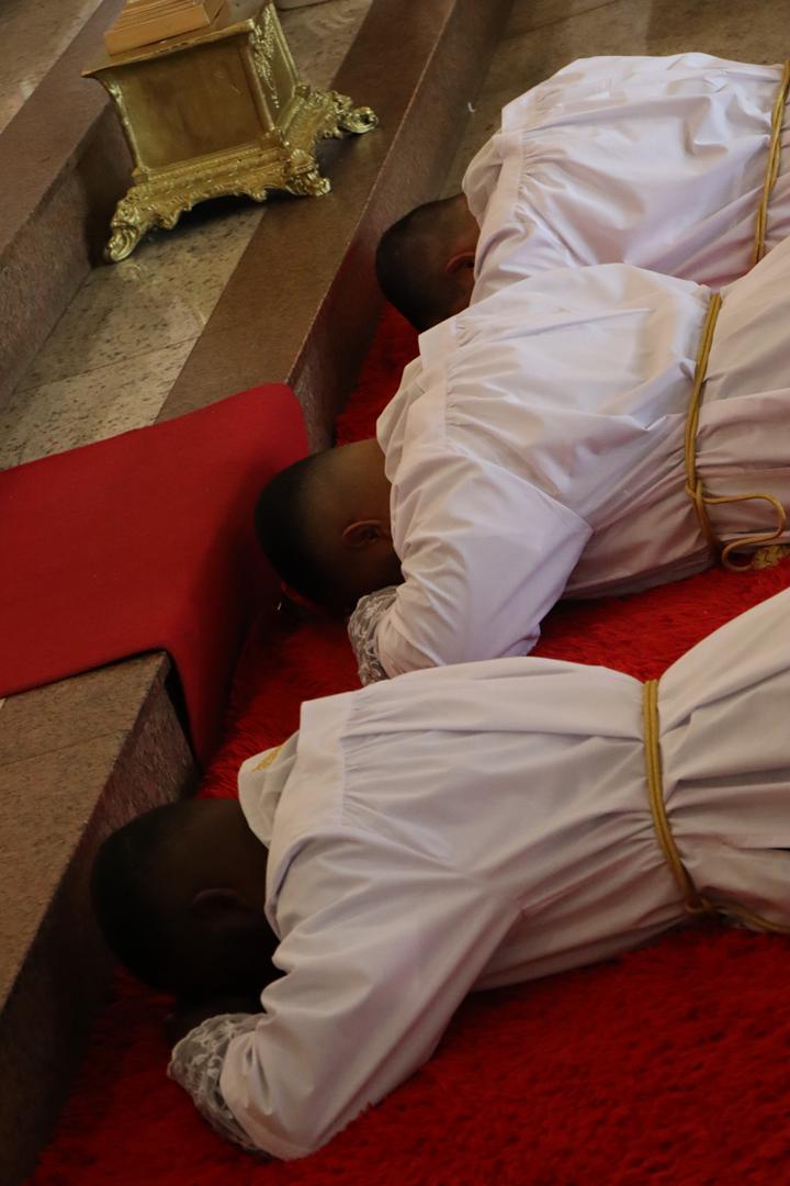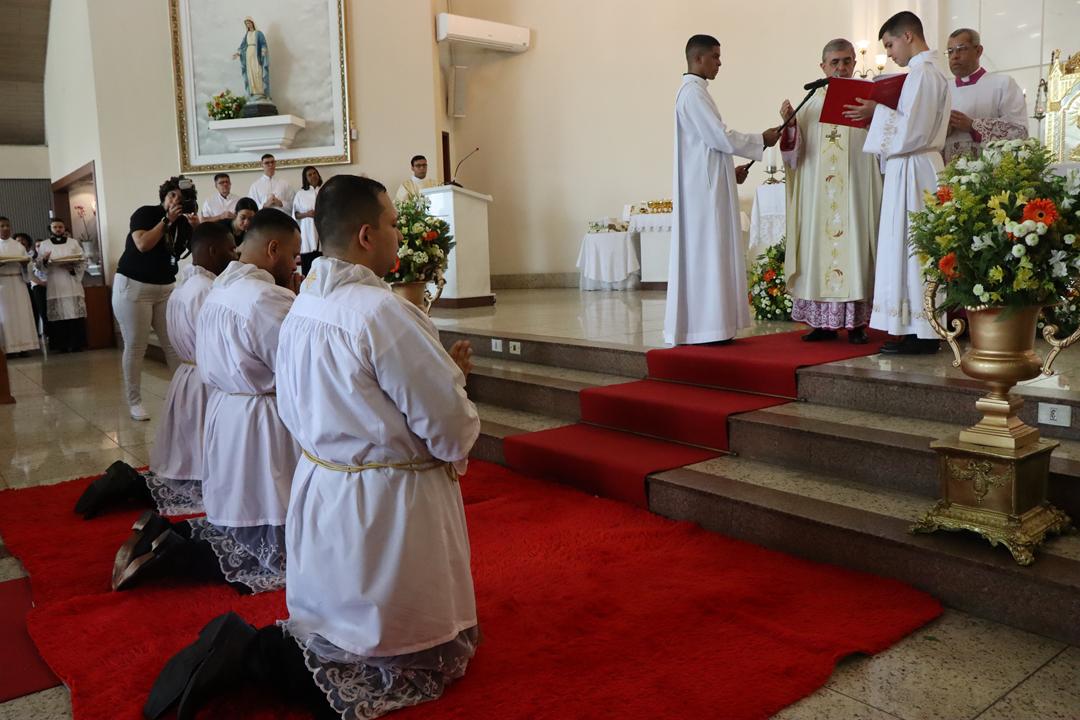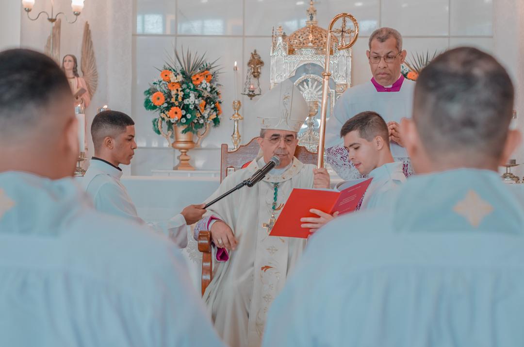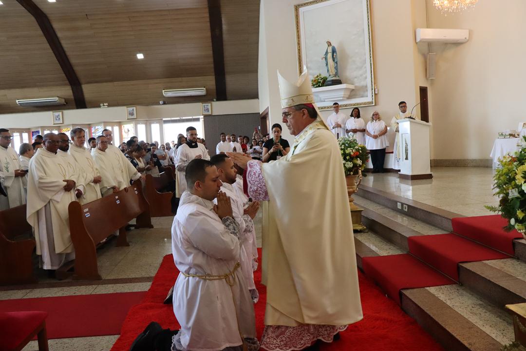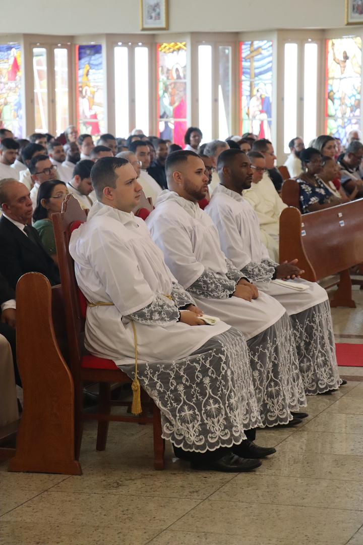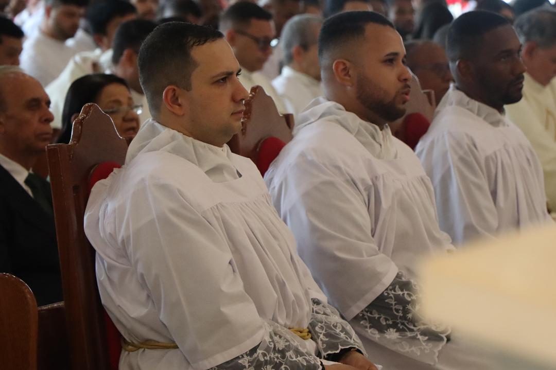 O diácono é chamado a ser servidor, especialmente dos mais pobres e sofredores, como nos recorda o livro dos Atos dos Apóstolos (At 6,1-7b). O ministério diaconal é graça, é dom de Deus, sustentado pela graça de Deus. Quem o recebe refaz a experiência do profeta Jeremias (Jr 1,4-9) que reconhece a sua pequenez diante da grandeza da missão profética que recebia. Mas assim como ocorreu com Jeremias tenham a certeza da presença de Deus sustentando aqueles que ele chama e envia: Não tenhas medo, eu estarei contigo. É a Palavra que o Senhor dirige hoje também aos novos diáconos: “Não tenhas medo, pois eu estou contigo”. Não tenham medo diante dos desafios pastorais e exigências do ministério.