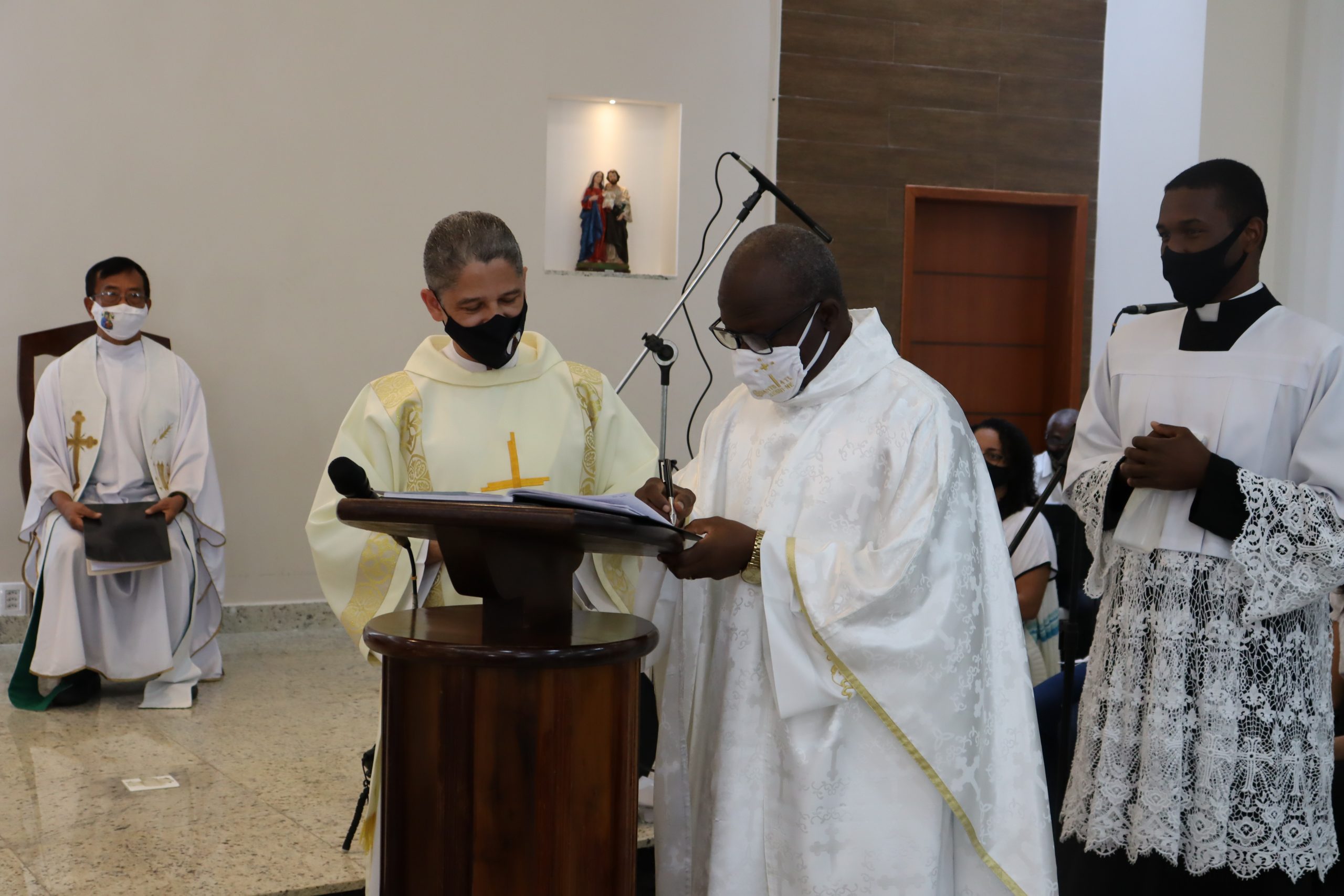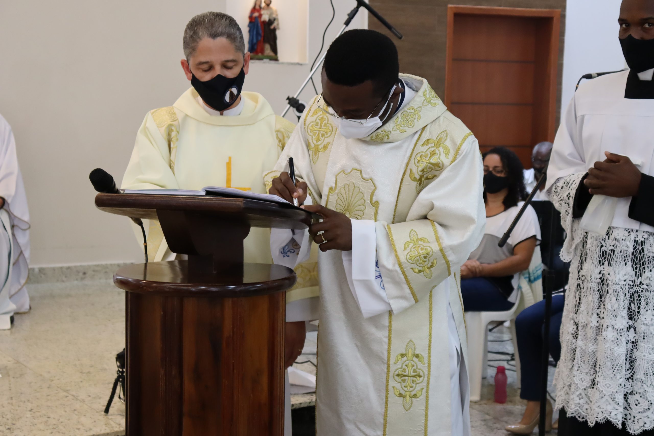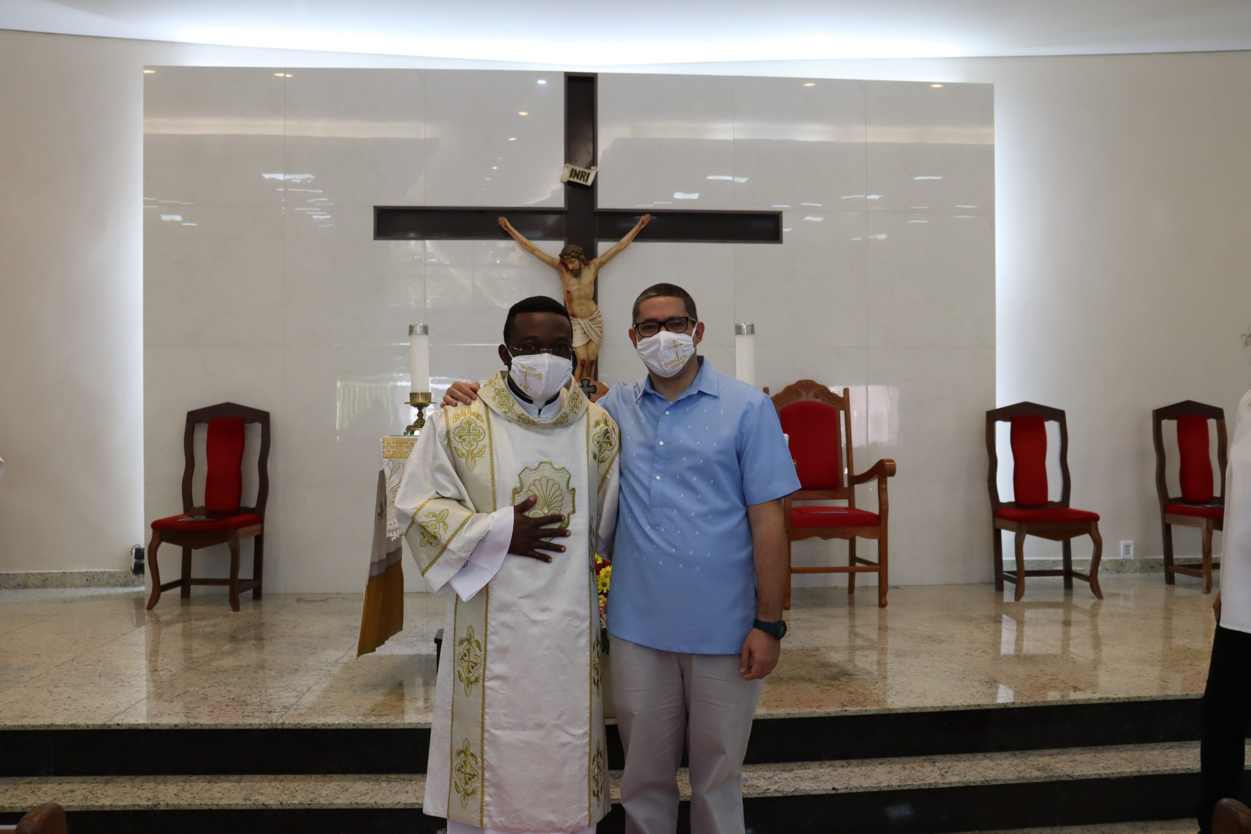 Em tempos normais estaríamos com uma Igreja completamente lotada, contudo, face aos desafios dos tempos atuais, com total respeito aos protocolos exigidos, poucos foram os convidados para este momento tão importante. A Pastoral da Comunicação realizou a transmissão ao vivo da cerimônia nas redes sociais da Paróquia, contando com muitas visualizações do exterior, em especial de Camarões, terra natal de nosso querido Firmin.