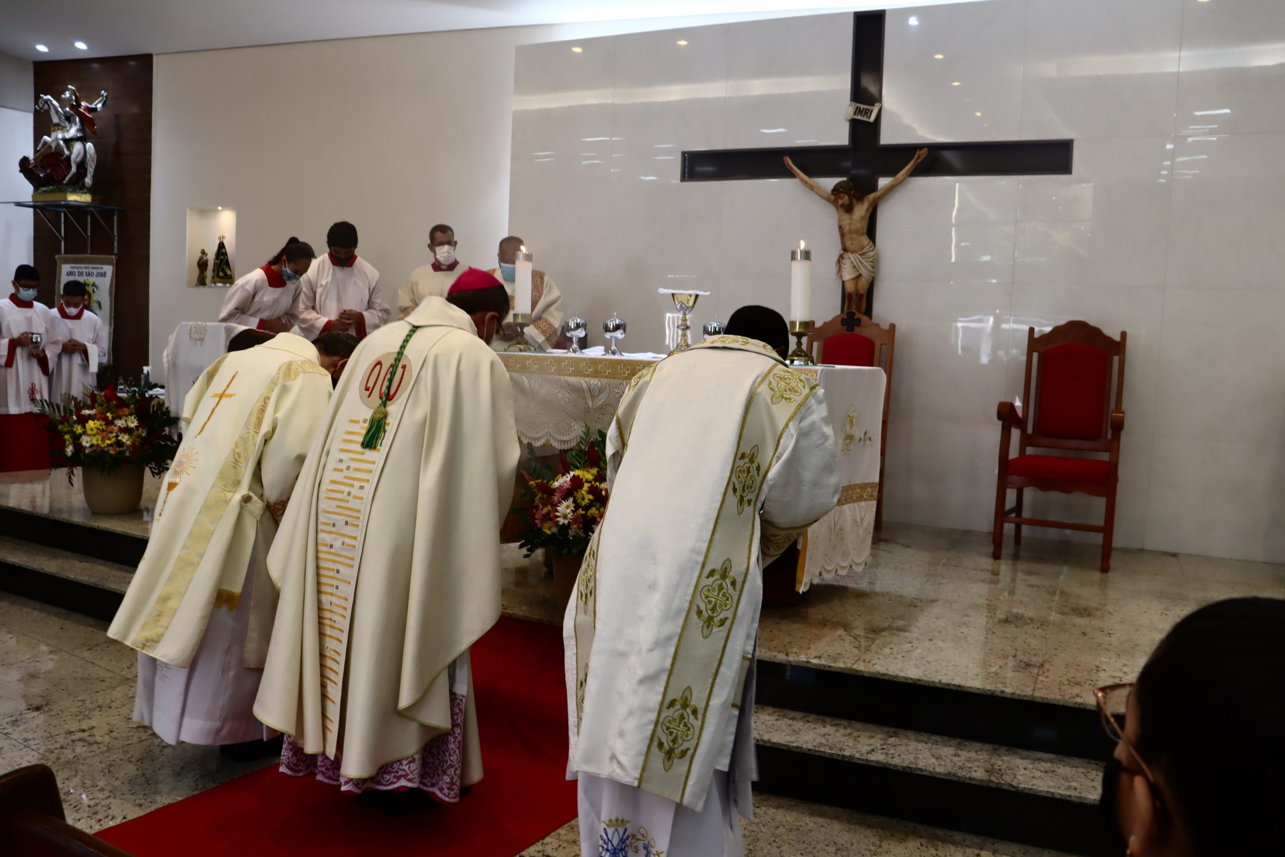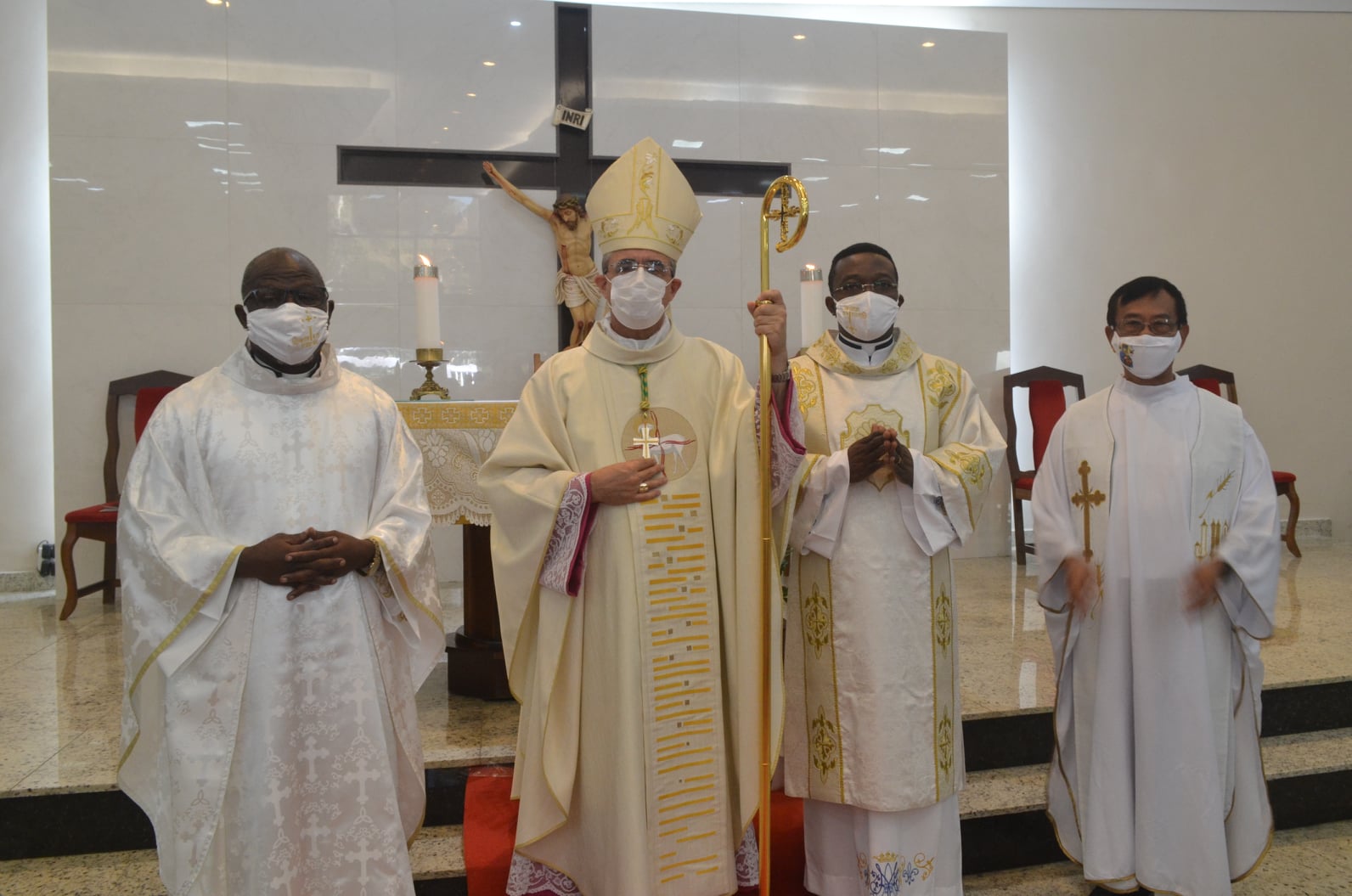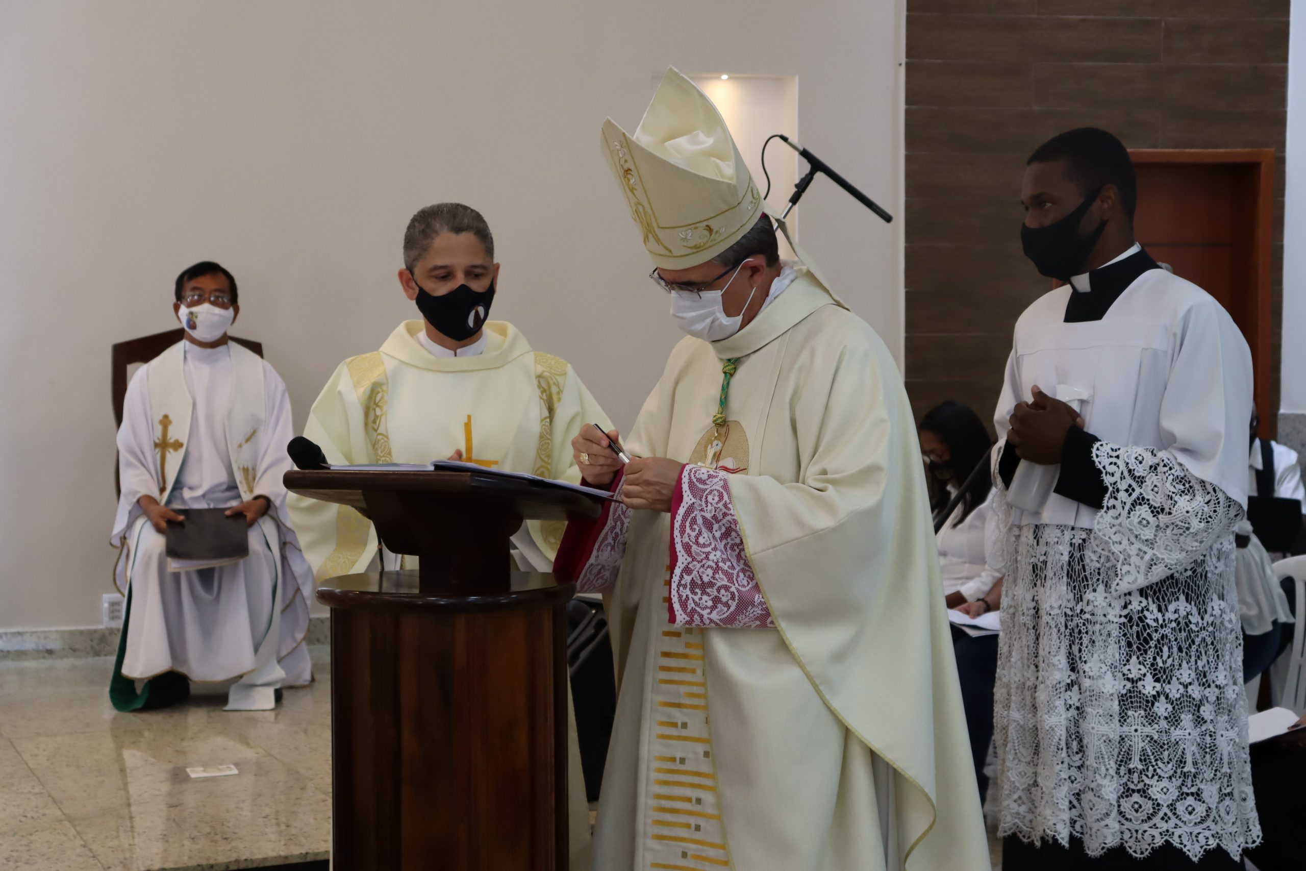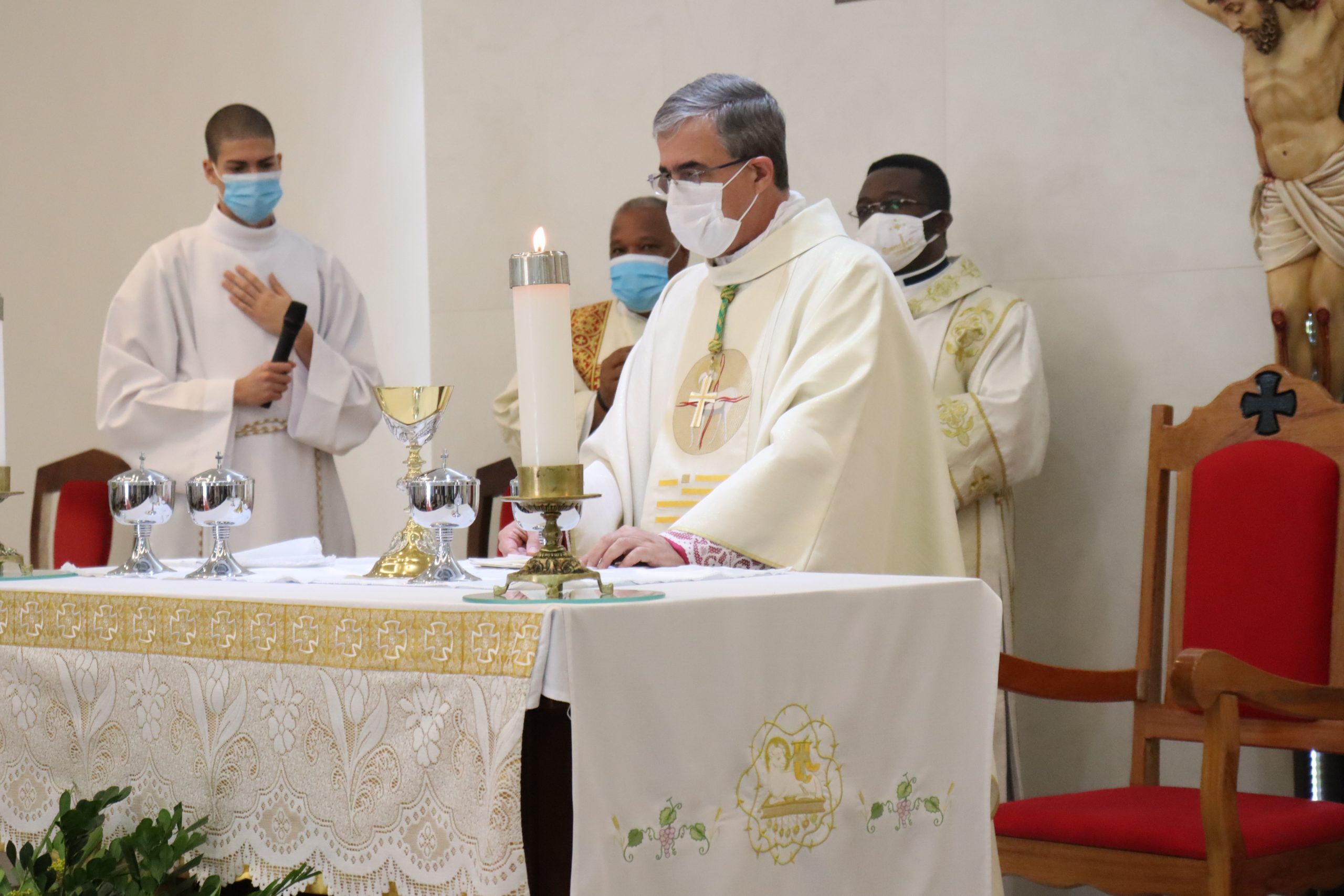 Em tempos normais estaríamos com uma Igreja completamente lotada, contudo, face aos desafios dos tempos atuais, com total respeito aos protocolos exigidos, poucos foram os convidados para este momento tão importante. A Pastoral da Comunicação realizou a transmissão ao vivo da cerimônia nas redes sociais da Paróquia, contando com muitas visualizações do exterior, em especial de Camarões, terra natal de nosso querido Firmin.
