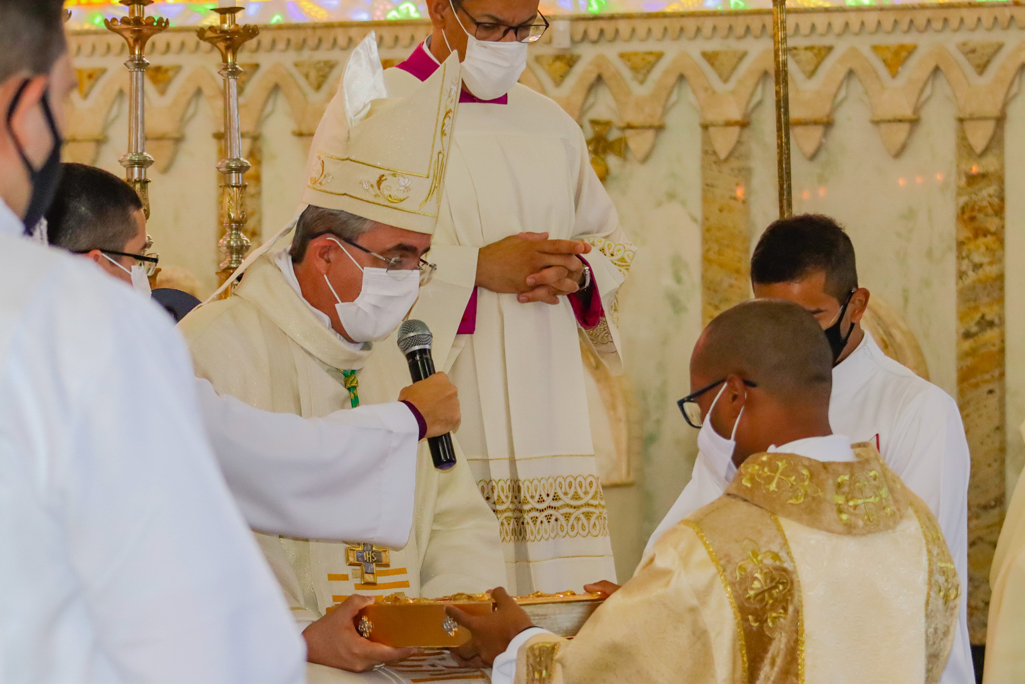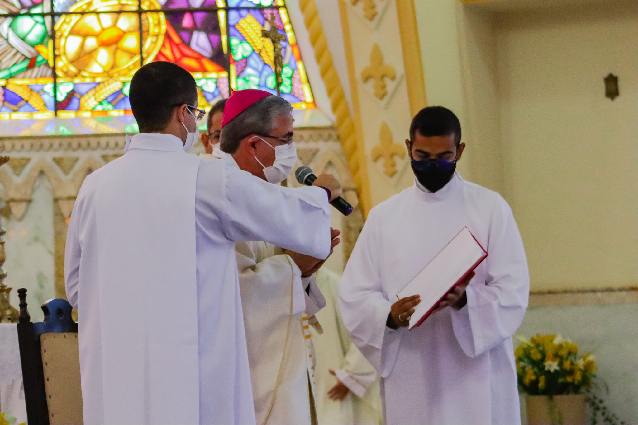 Durante a homilia, Dom Marco Aurélio falou sobre as leituras escolhidas pelo próprio seminarista e lida durante a Missa. Na primeira leitura, o bispo chamou a atenção sobre a importância da oração, da intimidade com Deus e da liturgia descritas no capítulo 6 do livro de Isaías. “O Senhor nos qualifica. Ele não só nos chama, Ele não só nos pede algo, mas Ele nos prepara para a missão” comentou. Ainda sobre a primeira leitura, Dom Marco Aurélio afirma que “o diácono é o homem da Palavra, é o homem da benção, é o homem da liturgia”.