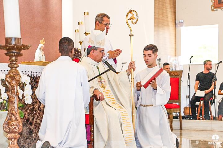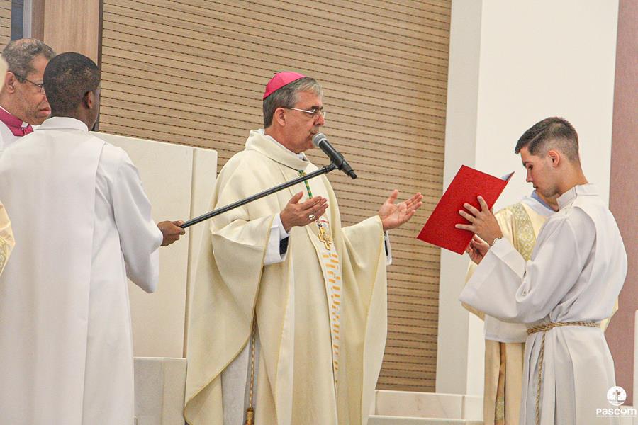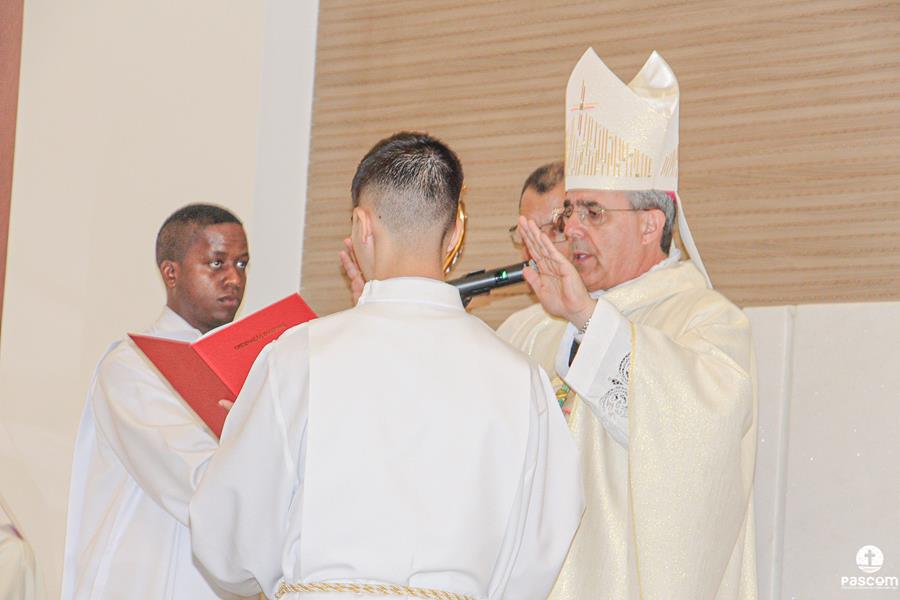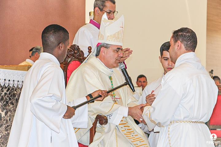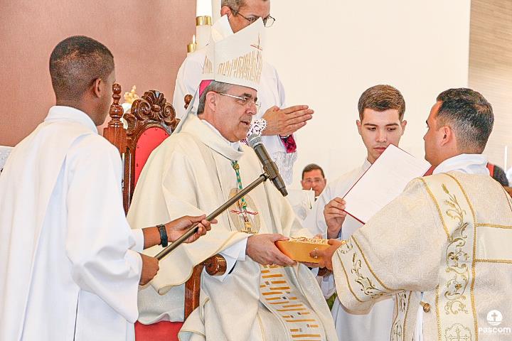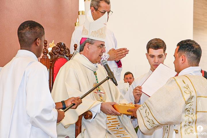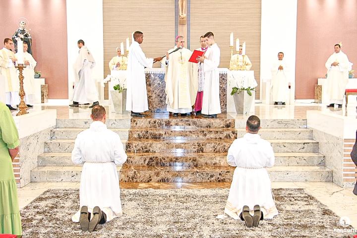 O rito de ordenação começou após a proclamação do Evangelho, com a apresentação dos candidatos ao diaconato. Padre Márcio Soares, Reitor do Seminário Diocesano, confirmou ao Bispo Diocesano que os candidatos são dignos para a Ordem do Diaconato, os mesmos confirmaram a opção de se colocarem a serviço do povo de Deus.