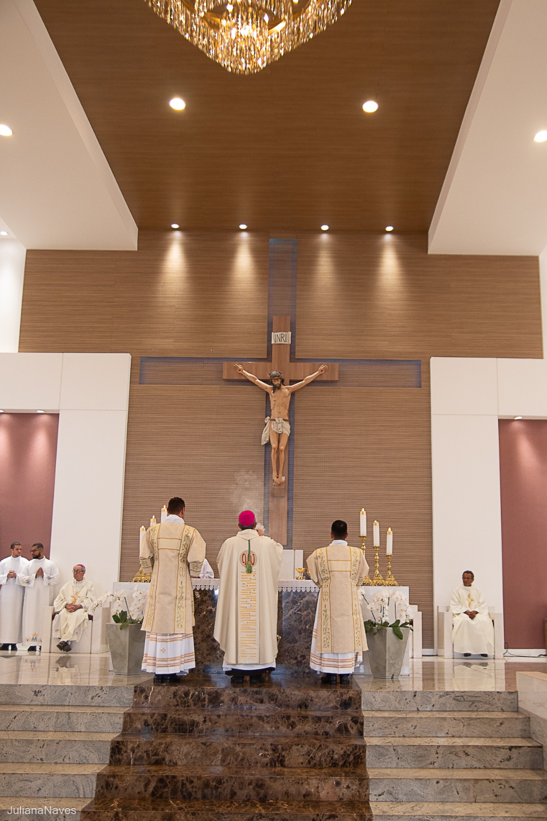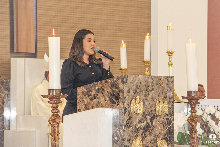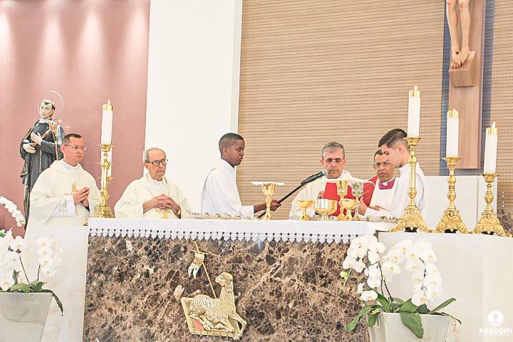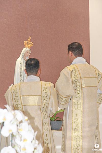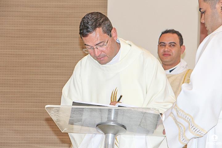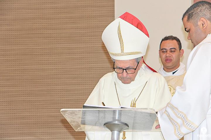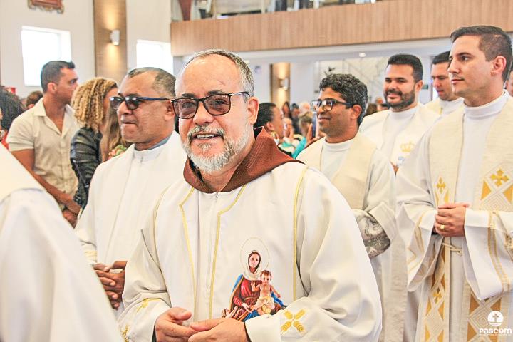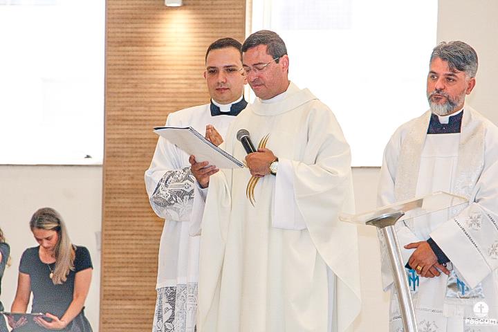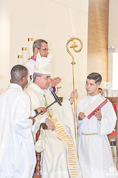 Diante do Santuário repleto de fiéis, o Dom Marco Aurélio afirmou, no começo da missa, ser esse um momento de grande alegria, fé e gratidão a Deus pelas vocações, mas, também, de oração para que sempre surjam novas e santas vocações aos ministérios ordenados.