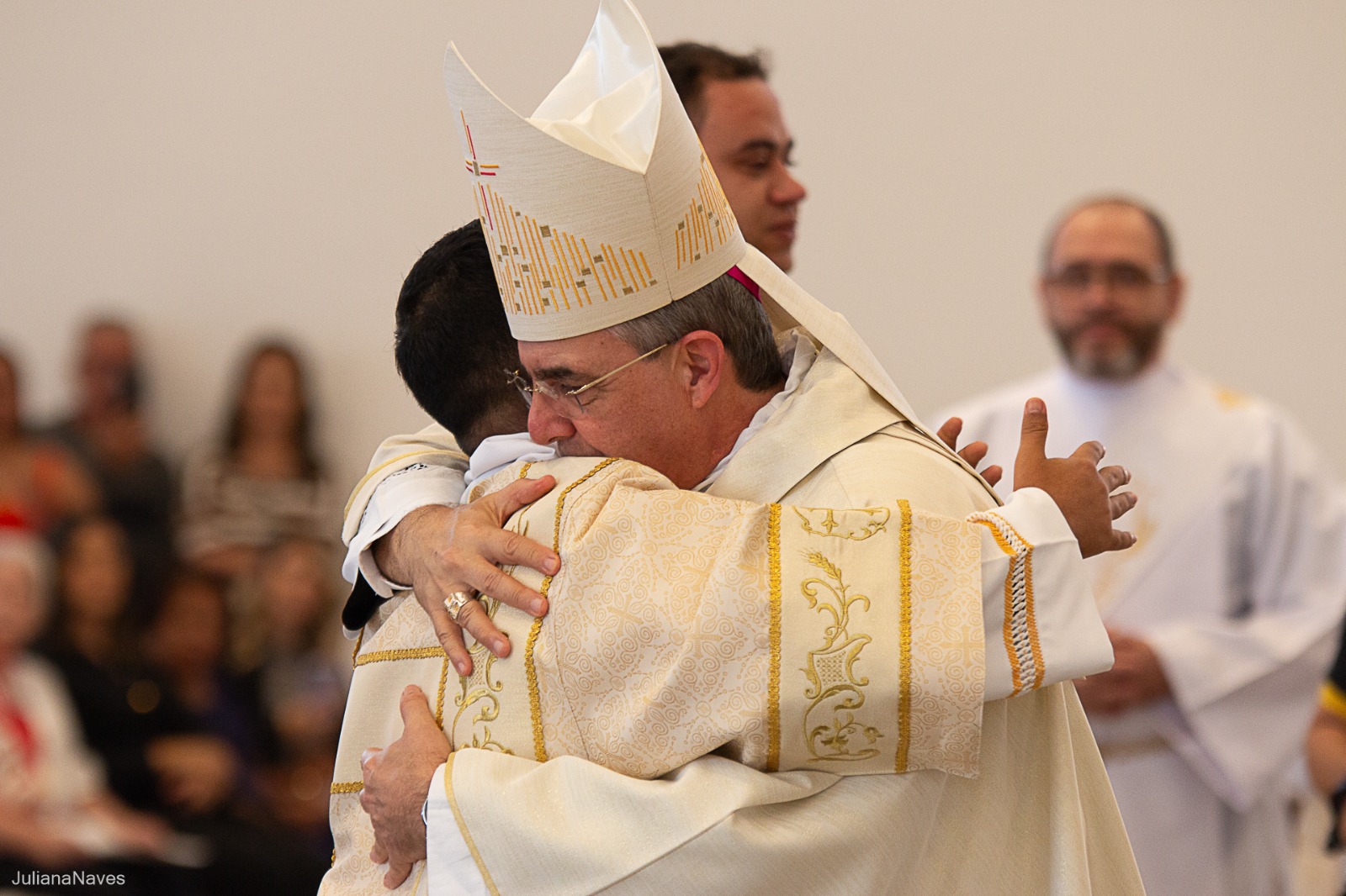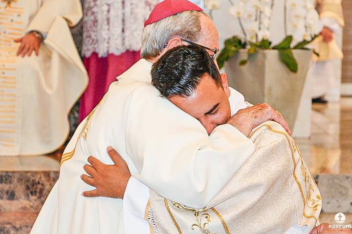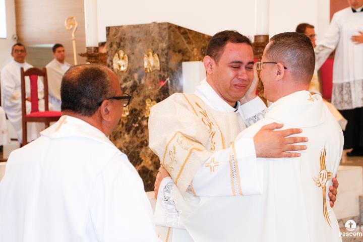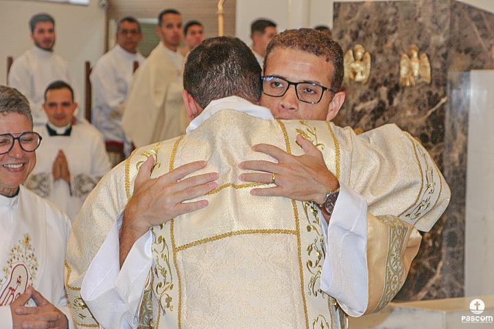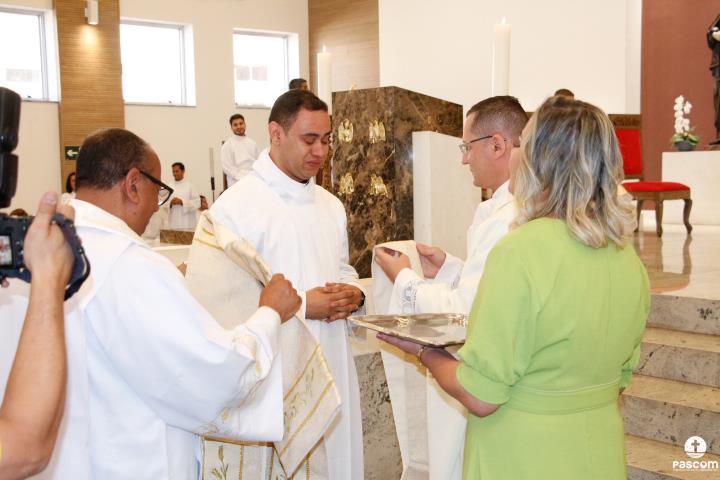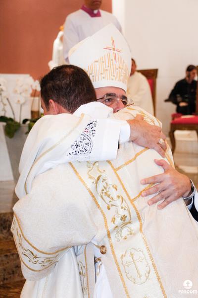 Após serem revestidos das vestes diaconais, os novos diáconos receberam do Bispo Diocesano o livro dos Evangelhos e, na sequência, o abraço da paz, primeiro de Dom Marco Aurélio e depois dos diáconos presentes. Ao final da cerimônia, os neo-diáconos ofertaram rosas a Nossa Senhora, consagrando o seu ministério e dirigiram palavras de gratidão pelas orações, presença e colaboração de todos para a realização da ordenação.