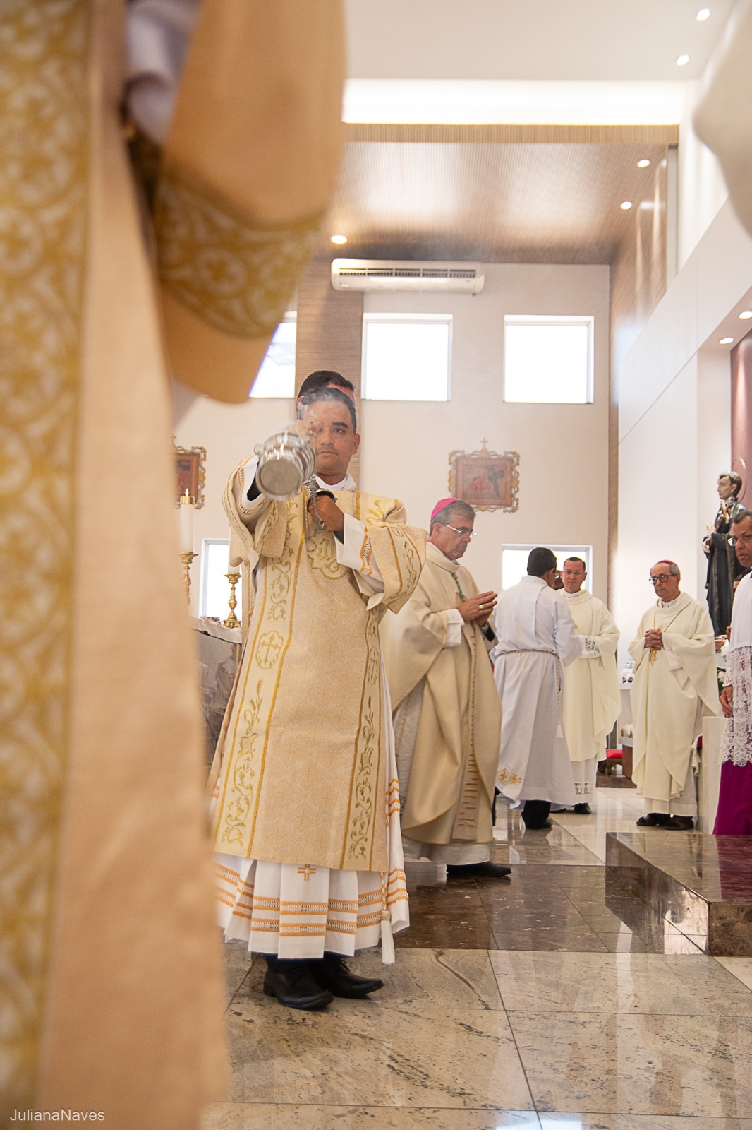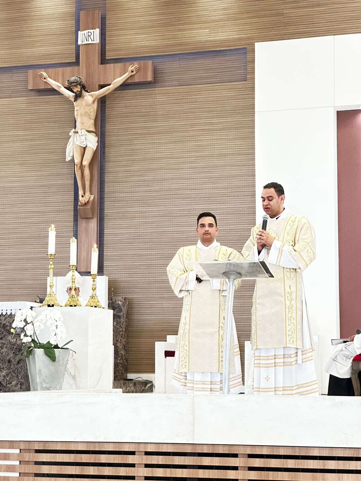Na manhã do último sábado, 09 de setembro, no Santuário São Geraldo Majela, comunidade eclesial da Paróquia Nossa Senhora da Penha, em Itabira, com a participação de Dom Odilon Guimarães Moreira, nosso bispo emérito, de muitos clérigos (diáconos e padres) de nossa e de outras dioceses, de religiosos(as), seminaristas, candidatos ao diaconato permanente e de uma grande porção do Povo de Deus, pela imposição das mãos do Bispo Diocesano Dom Marco Aurélio Gubiotti, foram ordenados diáconos transitórios os seminaristas Júlio Cesar Santos e Paulo Henrique de Souza Leal. A prece e a imposição das mãos pelo Bispo Diocesano constituíram a parte central do rito de ordenação.