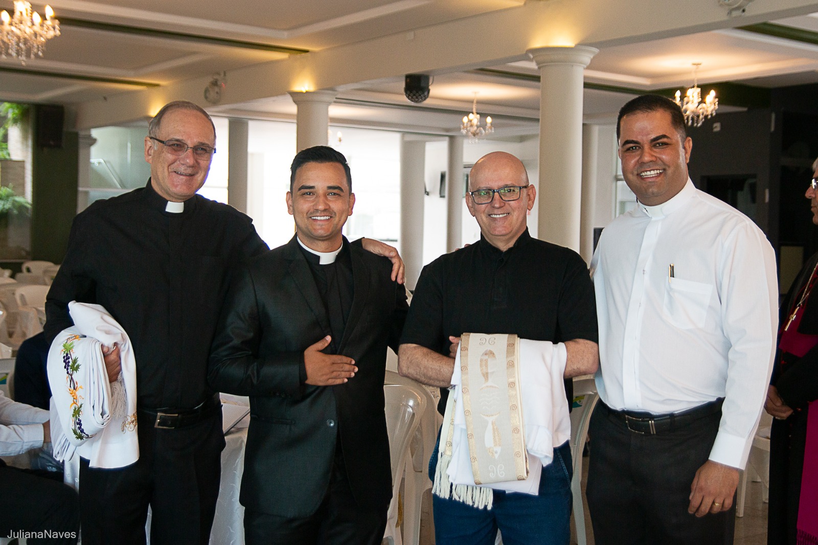 Gratidão a todas as equipes de trabalho das Paróquias Nossa Senhora da Penha e Nossa Senhora da Piedade que colaboraram para a realização da ordenação diaconal; ao Sr. Luiz Alberto Bettero do Valle, presidente da Associação Recreativa dos Ferroviários de Itabira (ARFITA), onde foi servido o almoço; ao Sr. Feliciano Adilson Domingues, Diretor Regional da Aposvale, onde foi servido o café para os clérigos; à Sra. Laudicéia da Conceição Pinto, Diretora da Escola Municipal Cornélio Penna, onde foi servido o café para todos os fiéis; ao Sr. Flávio Raimon da Silva, Superintendente de Trânsito de Itabira (Transita); ao Sr. Tenente Coronel Barcelos, Comandante do 26º Batalhão da Polícia Militar de Minas Gerais (PMMG), em Itabira; ao Sr. Pedro Fortunato dos Santos, do Restaurante Varanda, que com muita generosidade nos serviu todo o almoço; enfim, gratidão a todos os que fizeram suas doações para o café e outras doações. Deus abençoe a todos.