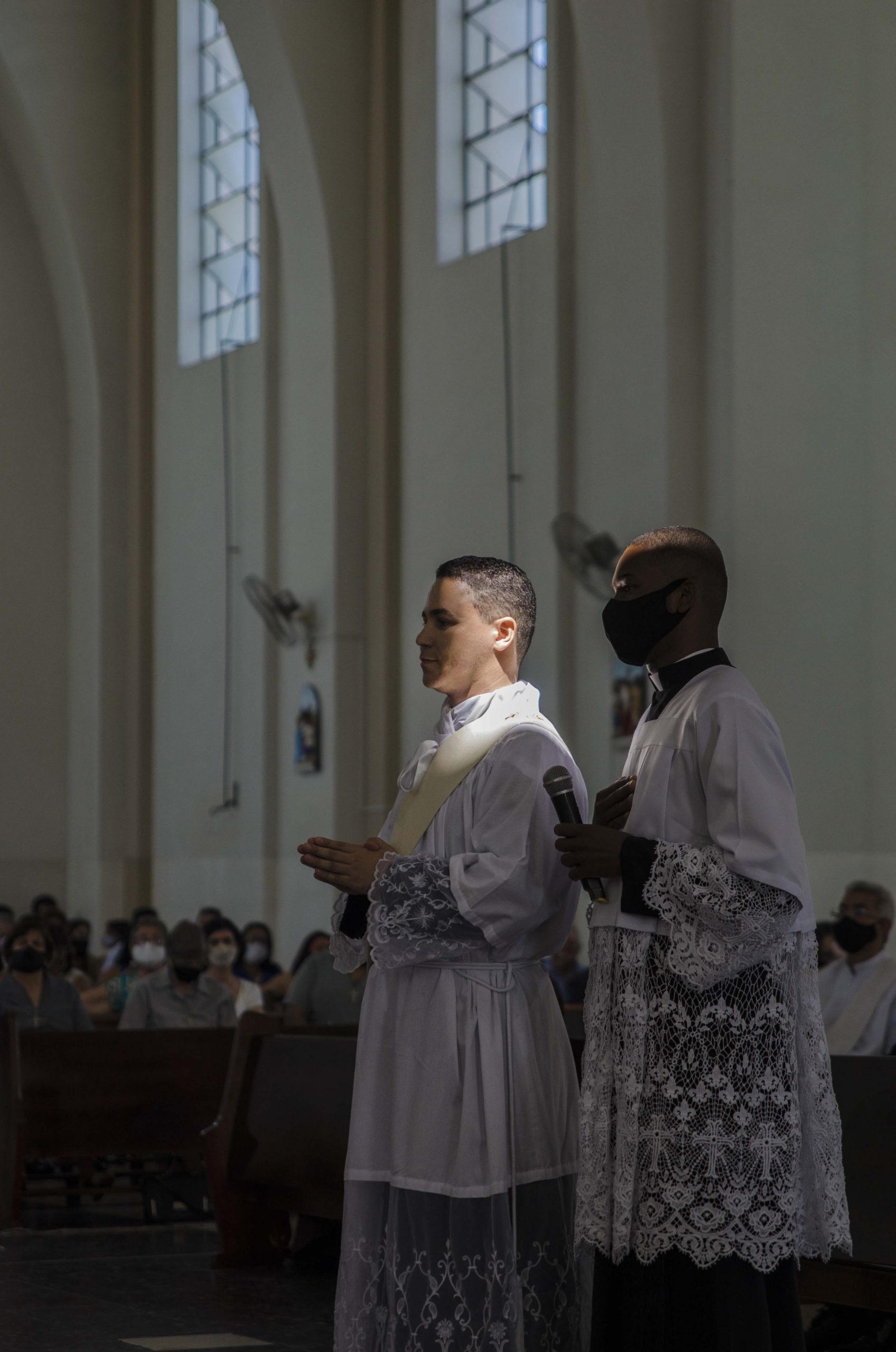 Não sei se mais alguém percebeu, mas havia uma luz, possivelmente de uma daquelas janelas lá do alto, que incidia exatamente sobre parte da face e do peito do Diácono Márcio. Como a luz é capaz de prender nosso olhar! E nos voltar, naturalmente, para a beleza, o significado e a simbologia das “coisas do alto”. Foi o próprio Deus que dividiu o “tempo” em noite e dia. Para que houvesse luz e pudéssemos “ver” além da escuridão.