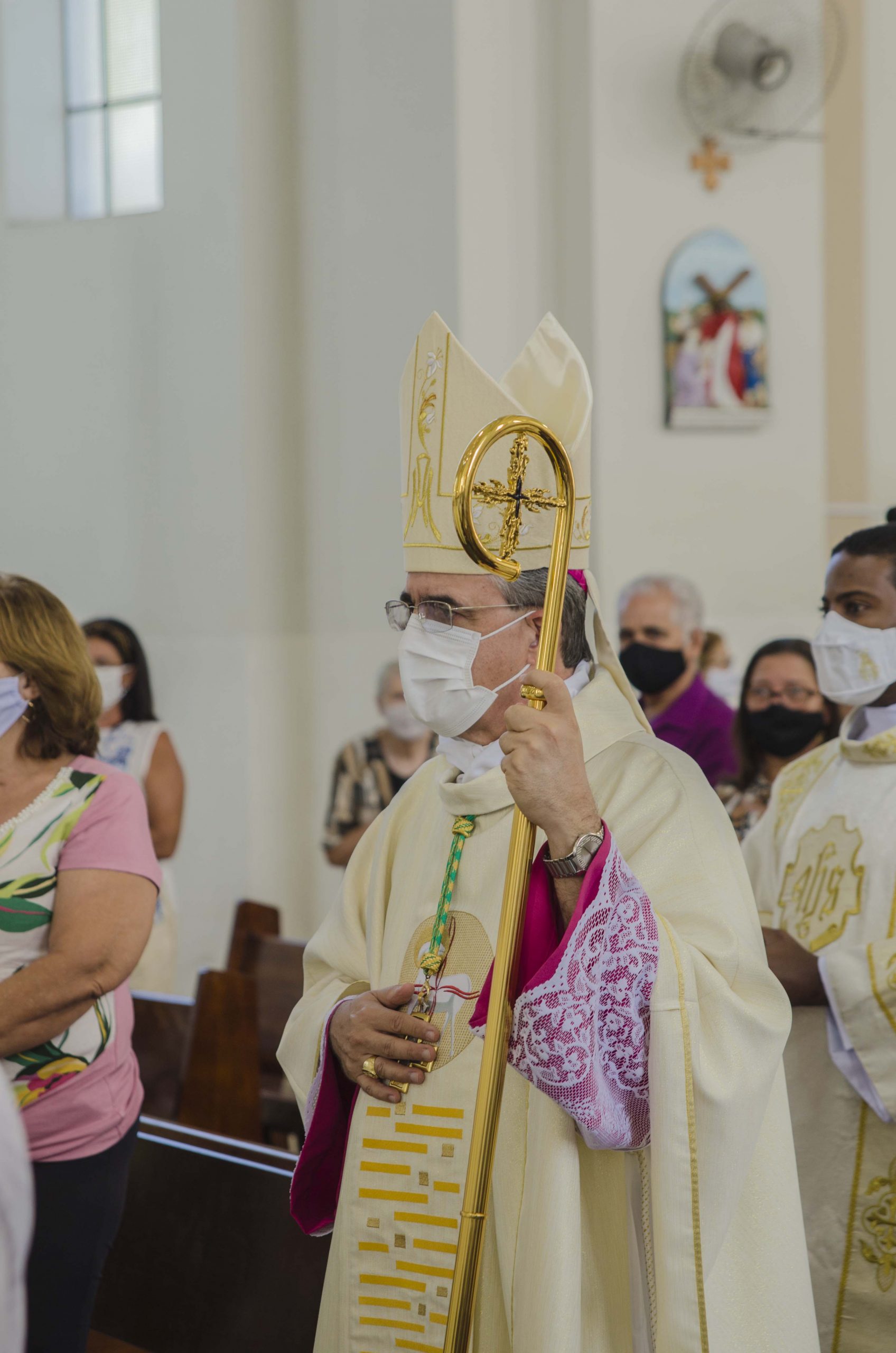 Dom Marco Aurélio Gubiotti cumprimentando os fiéis durante a procissão de entrada