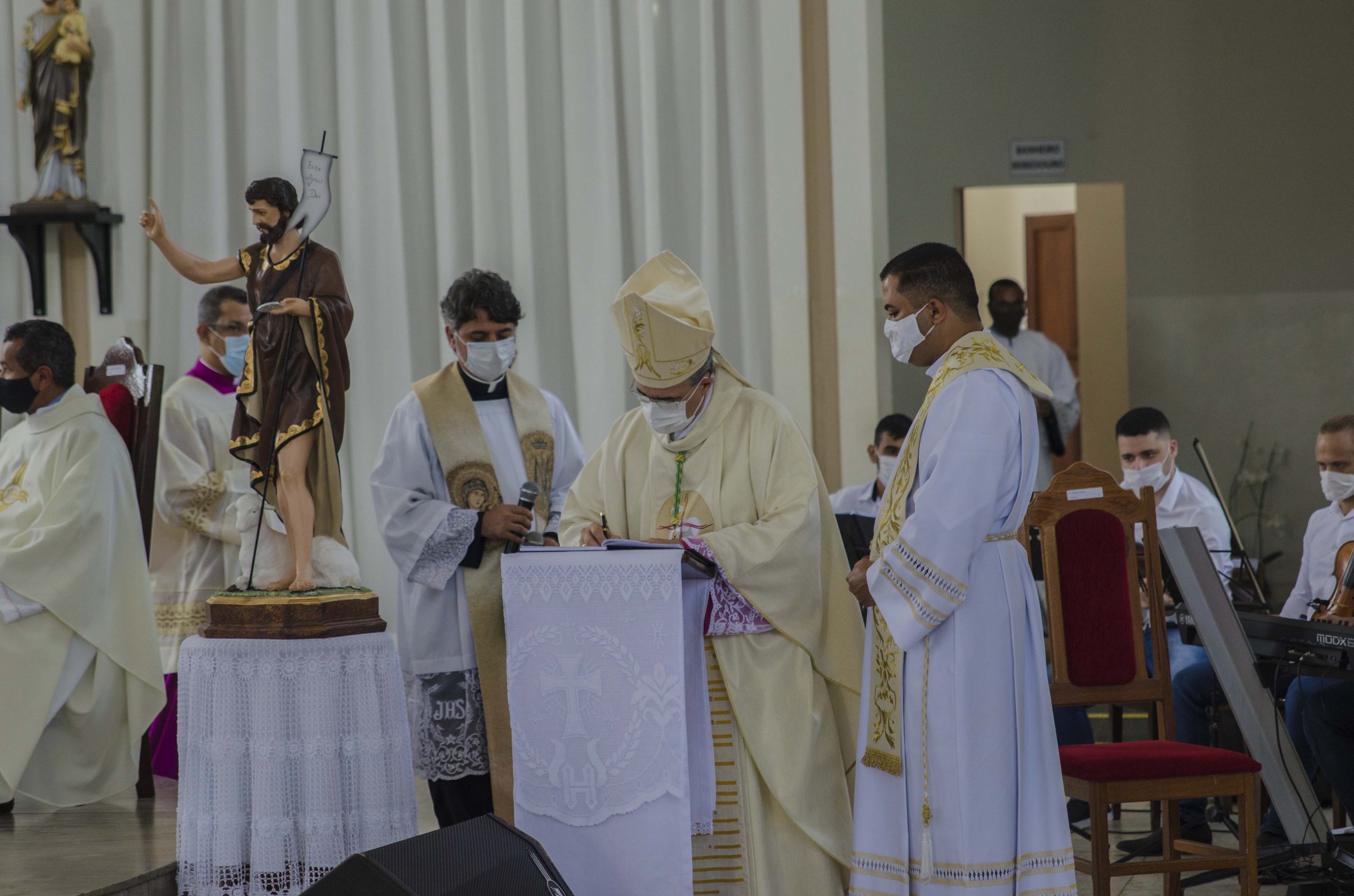 Ali, ele ainda era diácono e me lembrei do seu lema diaconal: “Nosso dom a serviço” (1Pd 4,10). Do lado esquerdo do presbitério estava uma imagem de São João Batista (curiosamente o santo com o qual tenho afinidade – sou uma católica sem devoções a santos, mas amo João Batista. Estranho isso, né?). E não bastando esse cenário, uma frase dita por Dom Marco Aurélio Gubiotti descortinou a minha mente: “seu destino é desaparecer” (em referência ao papel de João Batista diante do protagonismo destinado a Nosso Senhor Jesus Cristo).