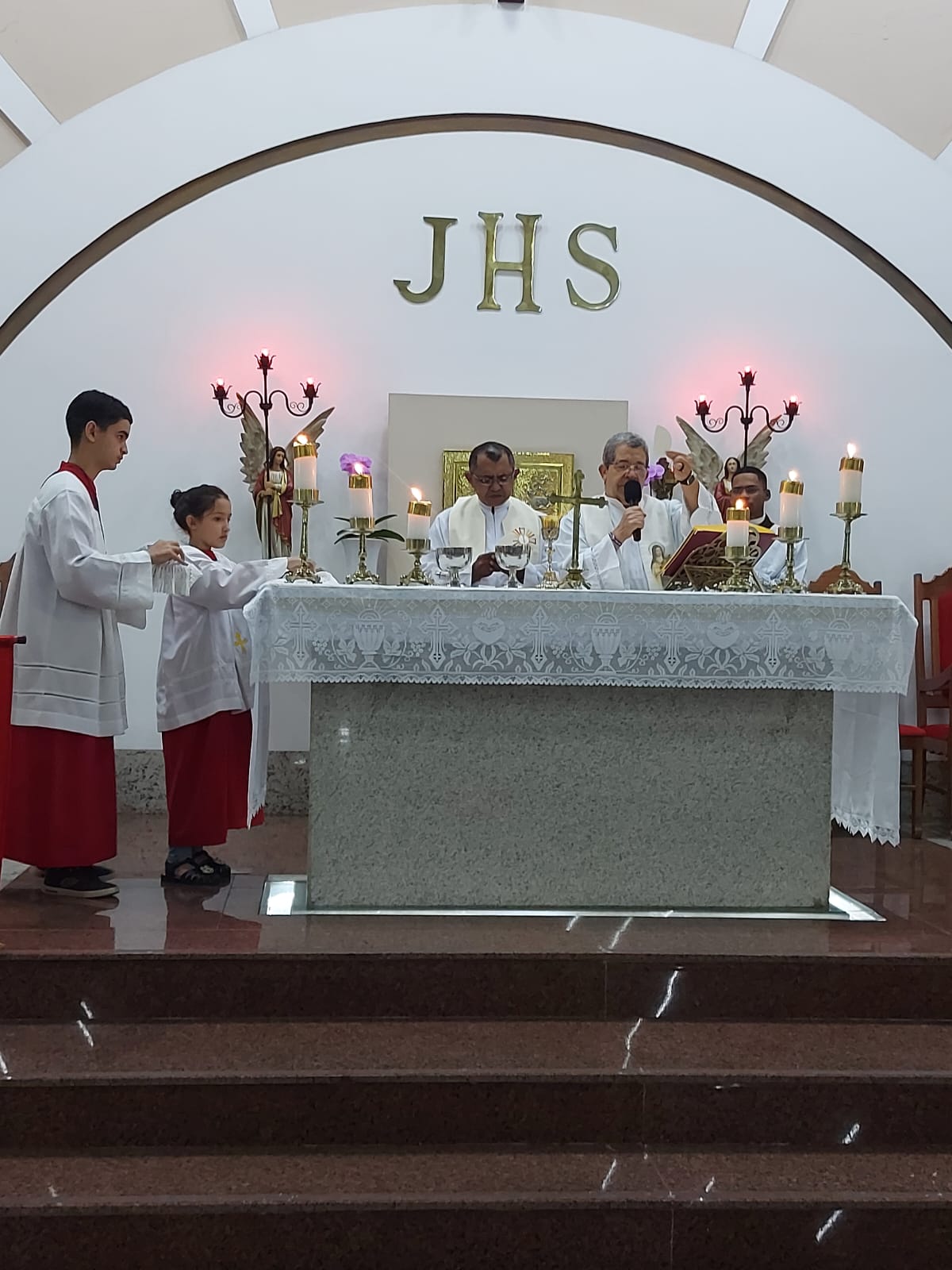 As missas foram presididas pelo Pároco Pe. Marco José Almeida e concelebradas pelo Vigário Paroquial Pe. Raimundo Vieira da Rocha. Cada um dos 7 dons do Espírito Santo (a sabedoria, o entendimento, o conselho, a fortaleza, a ciência, a piedade e o temor de Deus) foram refletidos durante os sete dias em que aconteceram as missas nas comunidades, sendo cada dom em uma comunidade diferente.