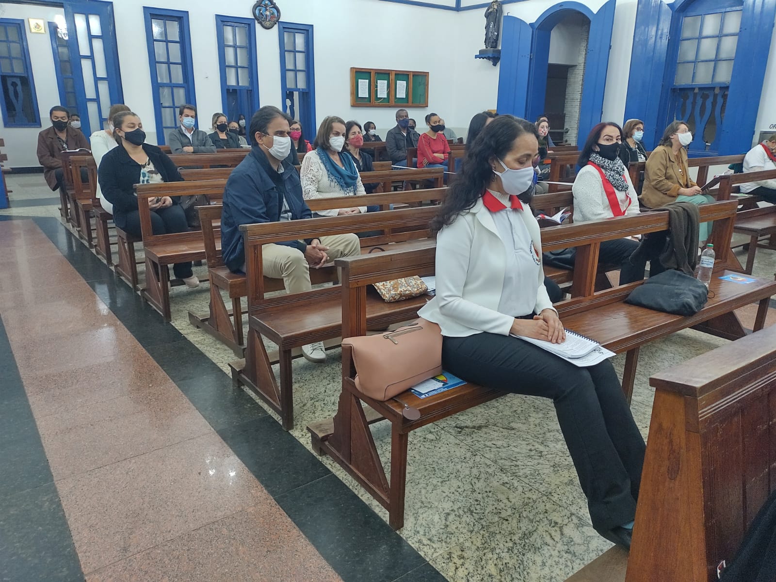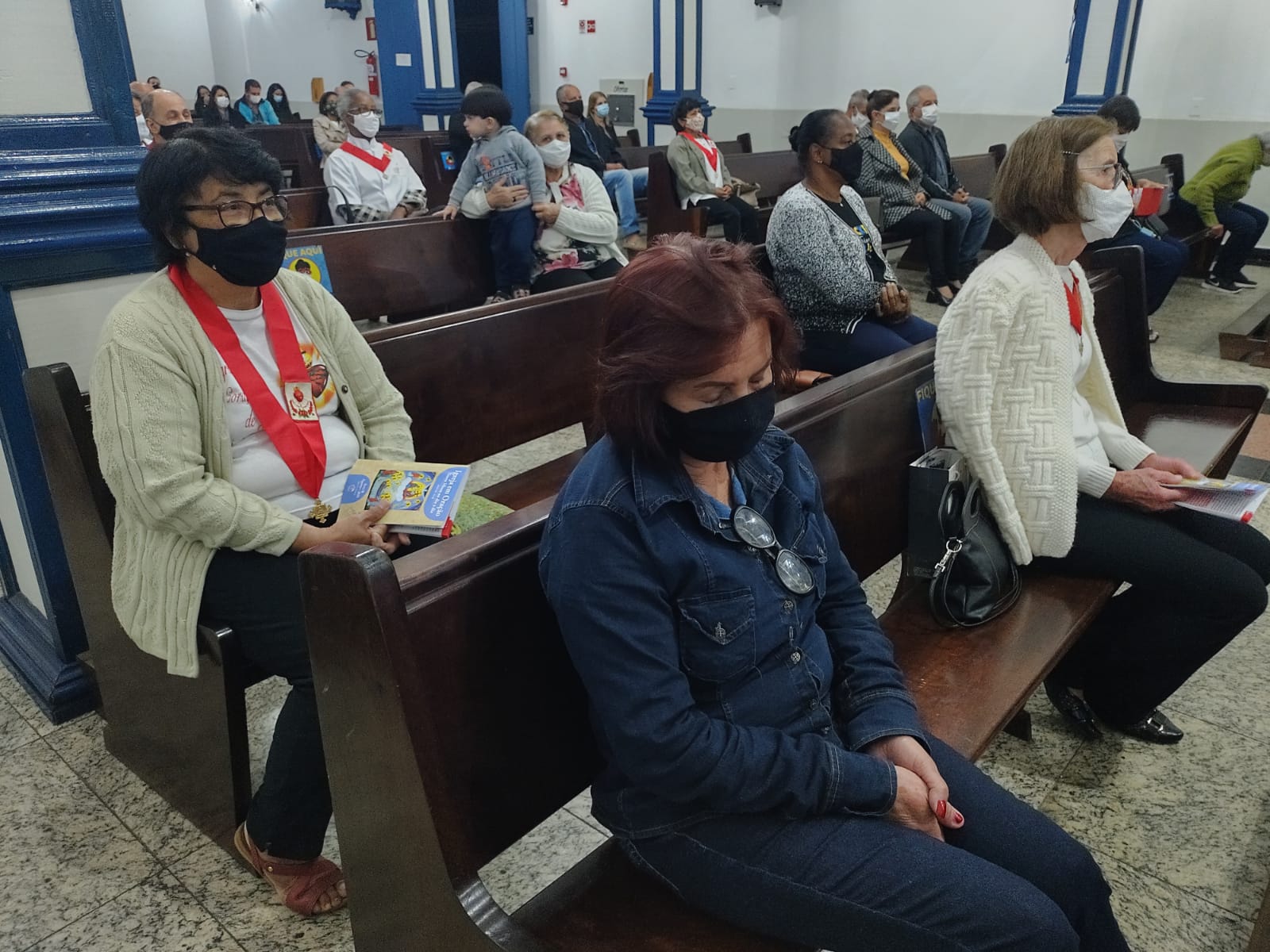 Logo após, a procissão de entrada sinalizou em nossos corações que, sim, começava ali a nossa caminhada de subir o monte junto com Maria, para vivenciar um momento de intimidade com seu Filho Jesus Cristo.