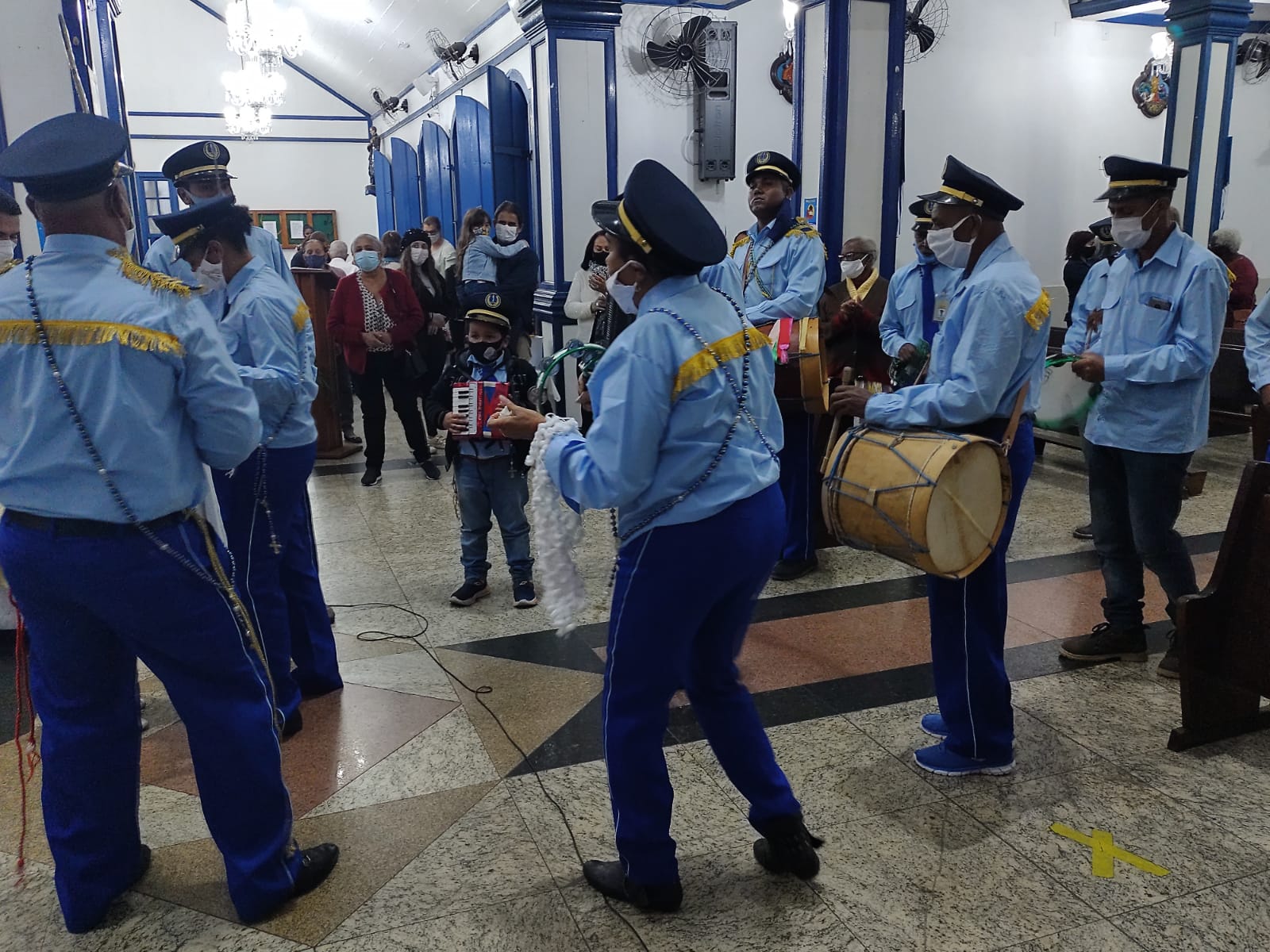 A entrada da imagem de Nossa Senhora da Saúde foi outro momento marcante. À frente, a linda Bia, vestida de anjo, com passinhos de bailarina abriu caminho para a Mãe da Saúde – também aguardada pelos marujeiros em frente ao presbitério.
