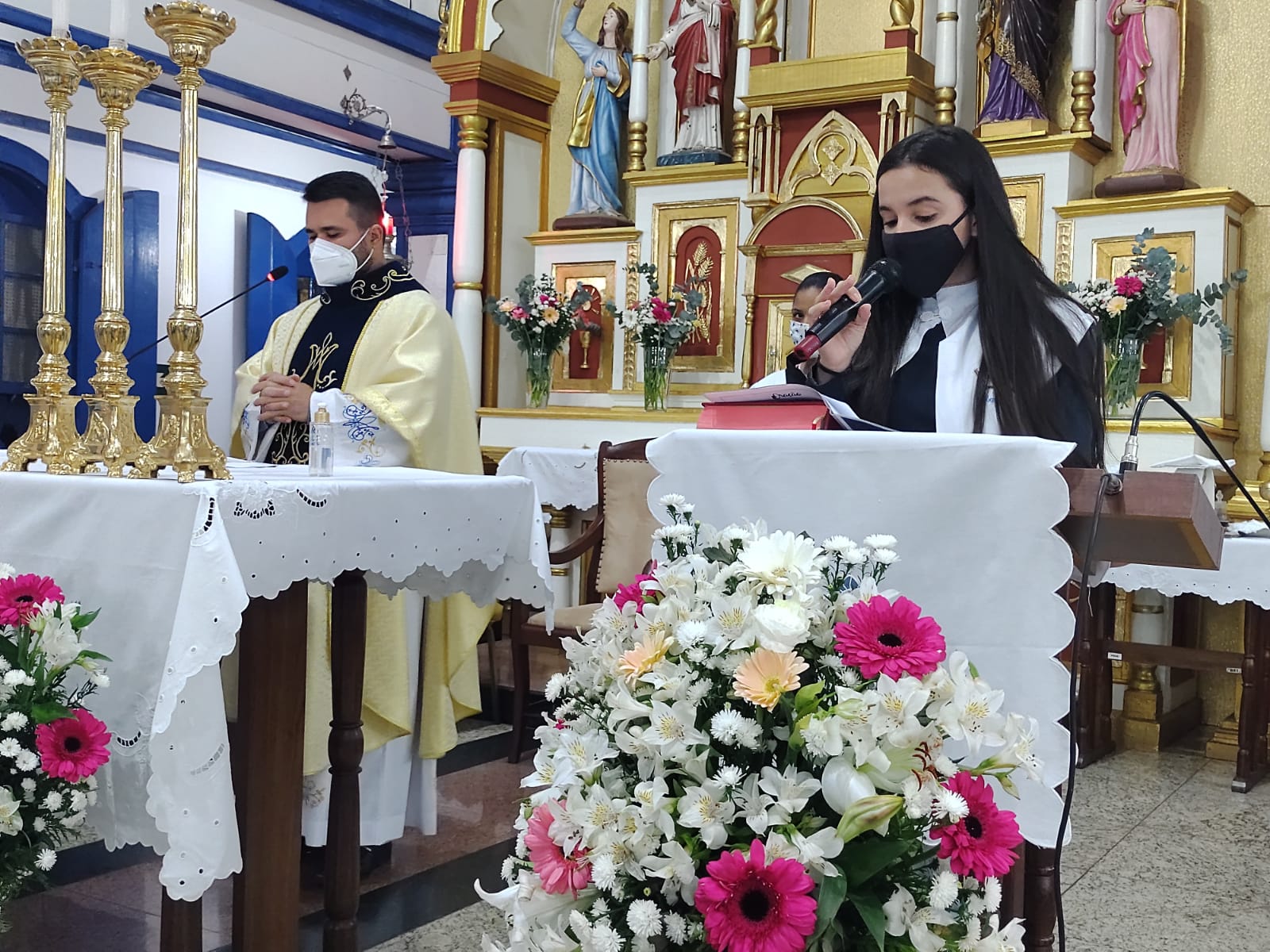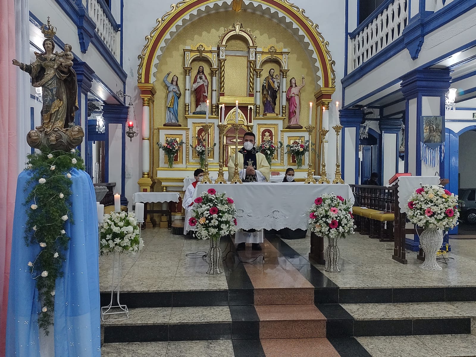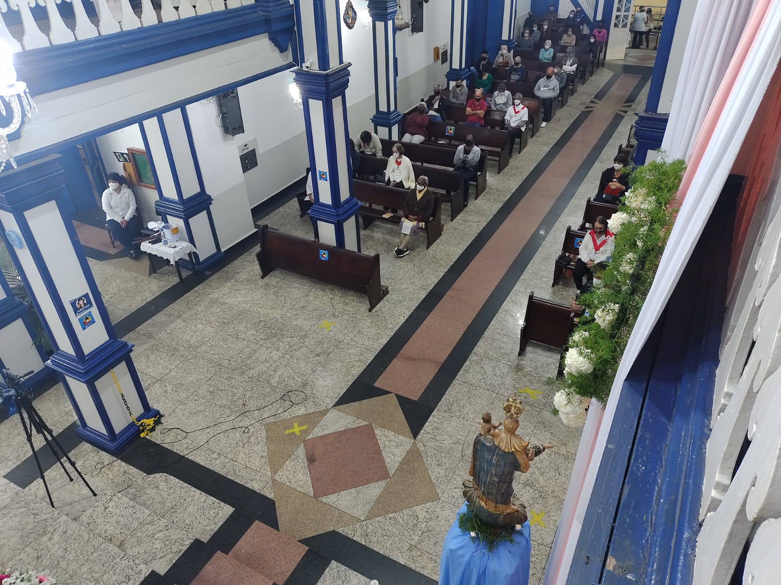 Este ano, a imagem que fica no ponto central do altar-mor da Igreja Matriz foi “quem” recepcionou e acolheu os fiéis. É até estranho ver aquele “vazio” no altar, mas é de alegria maior vê-la logo à entrada da porta principal. Até porque, sabemos, Maria é proximidade, é colo, carinho, proteção.