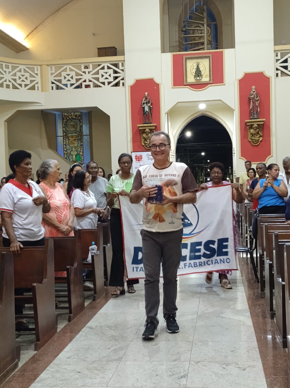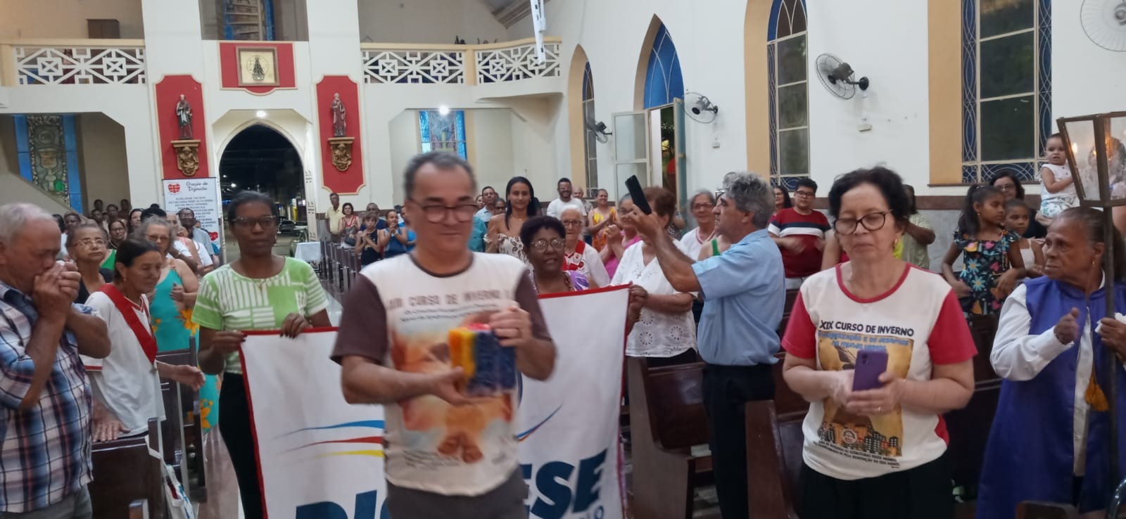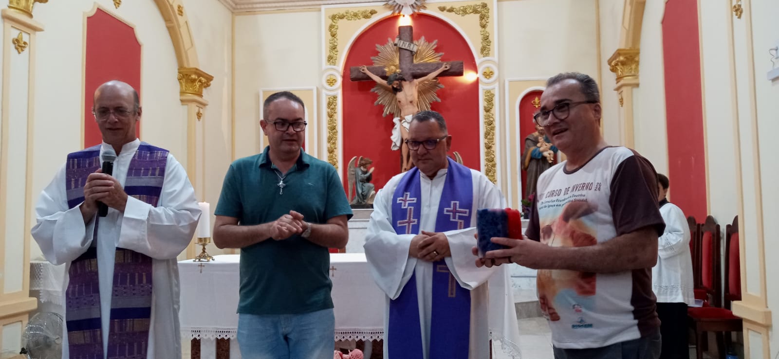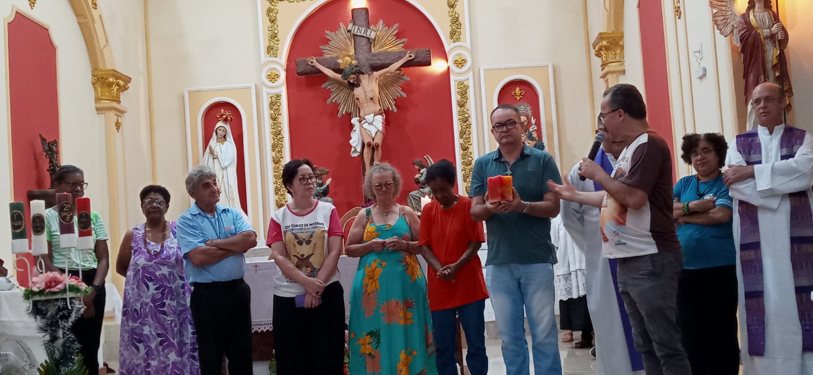 Com a participação de representantes dos três regionais que compõem a coordenação diocesana do curso, a Santa Missa foi presidida pelo padre Hideraldo, Assessor da Equipe de elaboração do Material da Reflexão, dos Grupos de Reflexão e das CEBs, e concelebrada pelo pároco local, padre Arlindo. Após a celebração, foi entregue aos representantes da paróquia uma vela — símbolo do Curso de Inverno — e realizada uma motivação inicial para a comunidade.